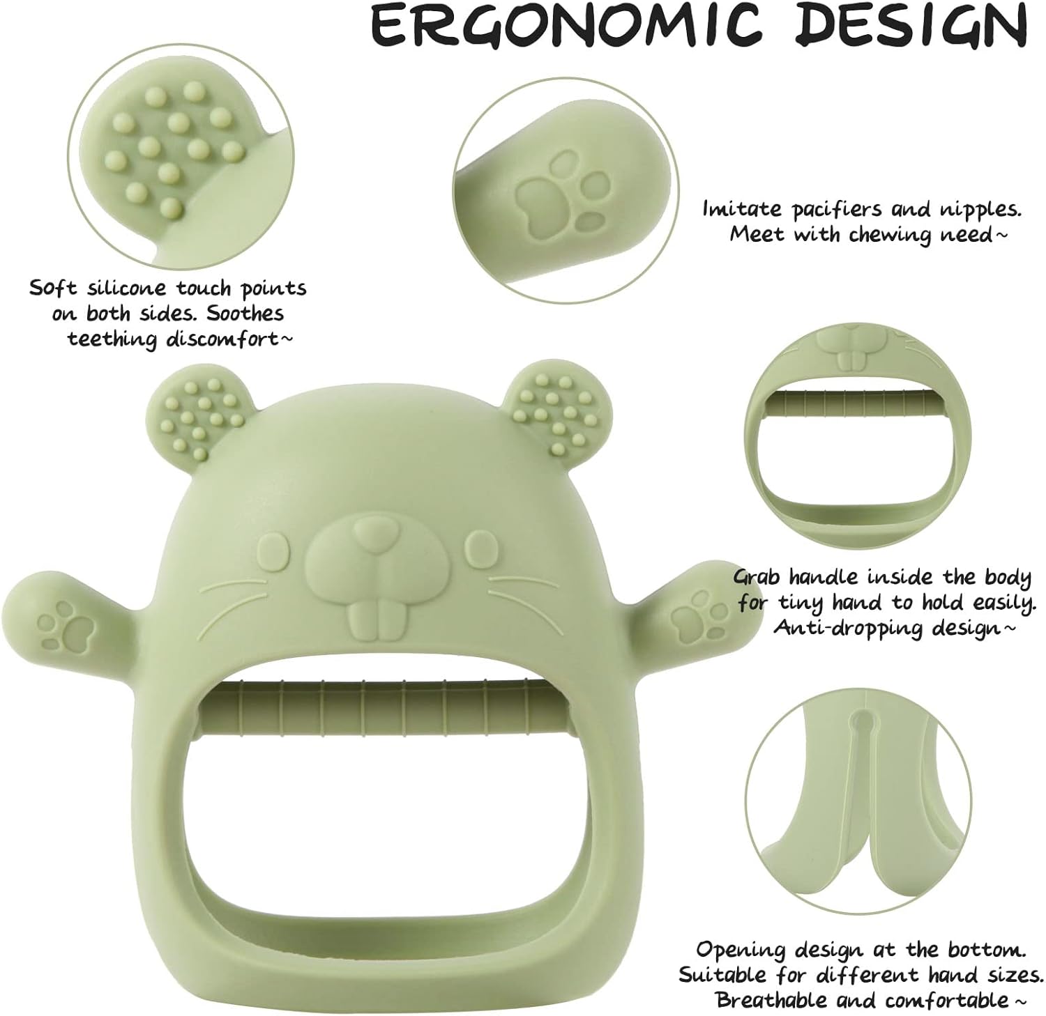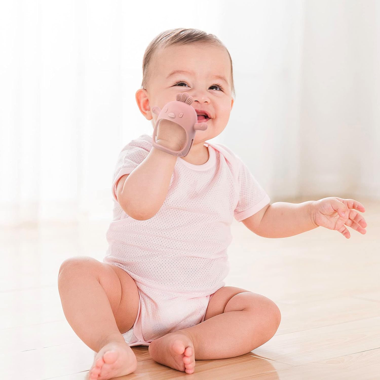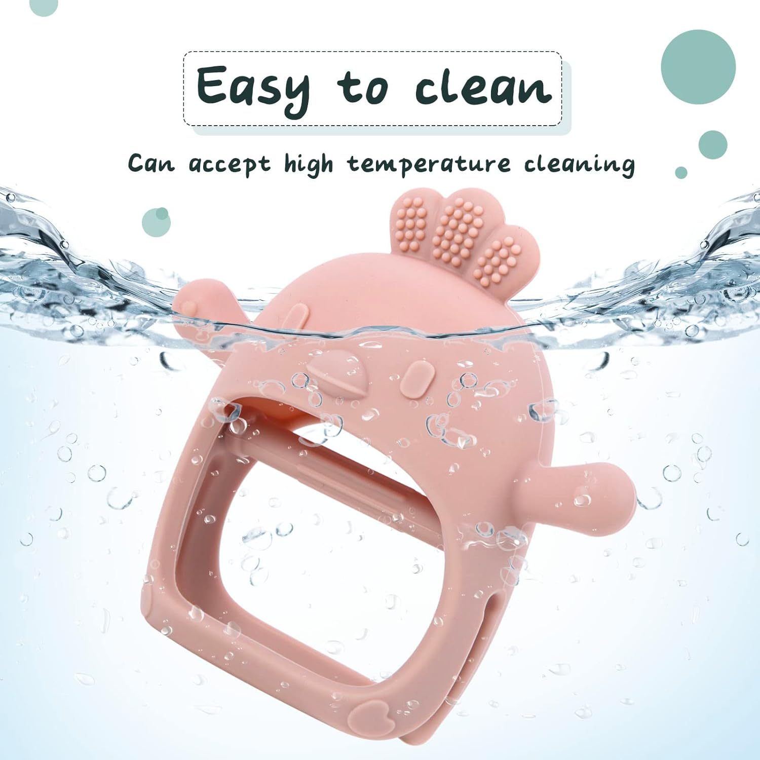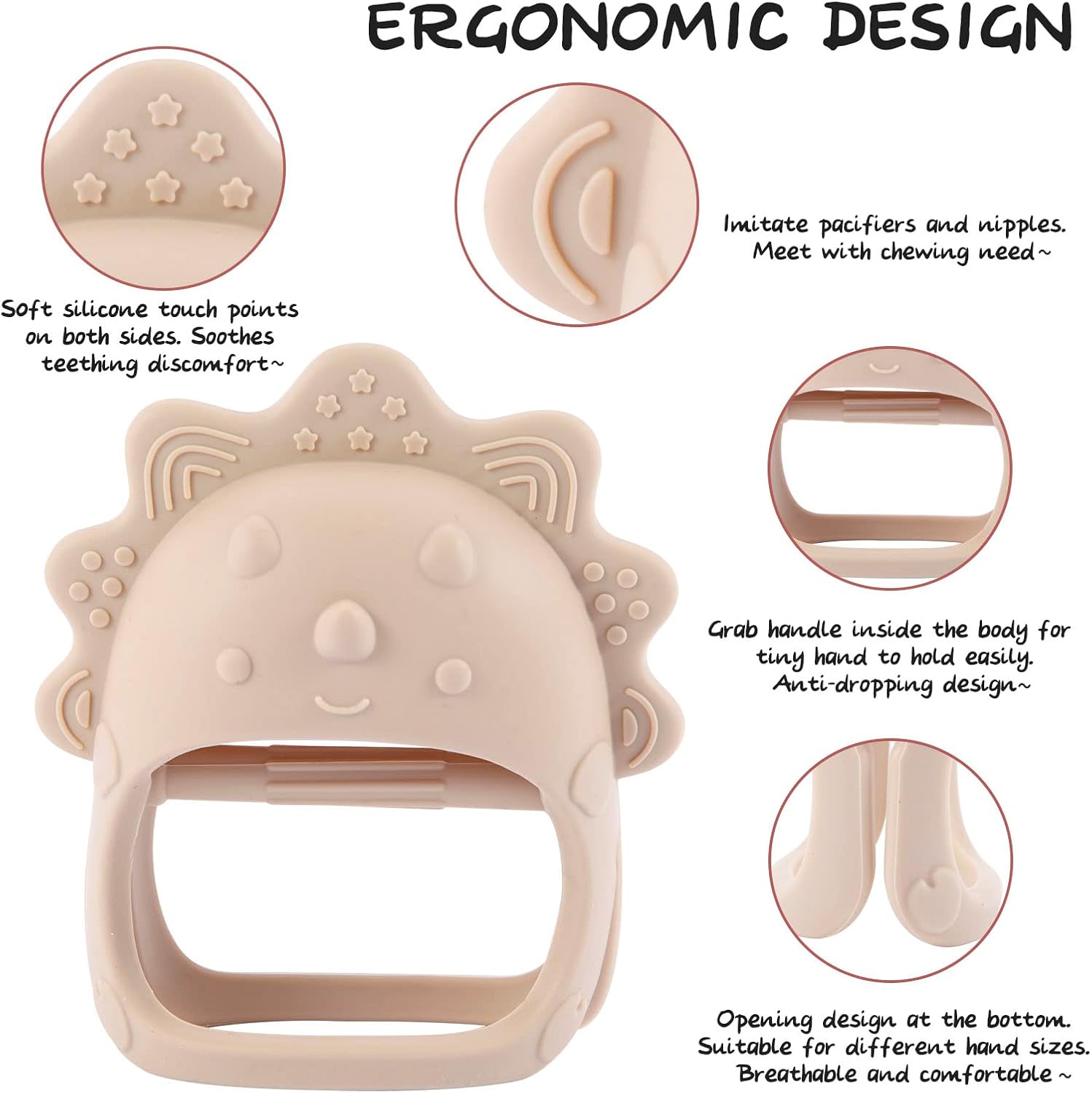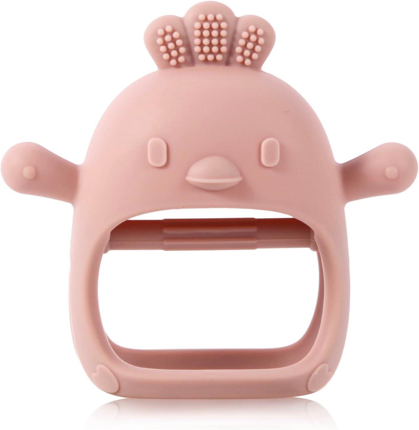 AoiSouk Baby Teether, Silicone Teething Toys for Babies 0-6 Months, Baby Chew Toys for Sucking Needs, Teething Pacifier, BPA Free Anti-Drop Silicone(Dark Pink&Rose Pink&Beige)