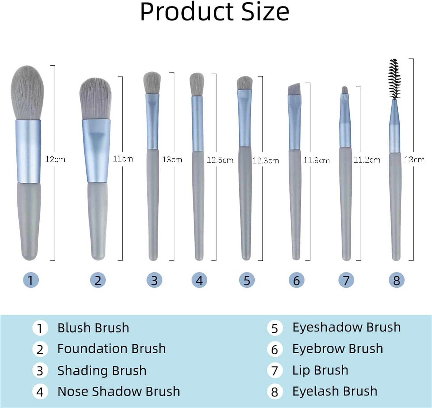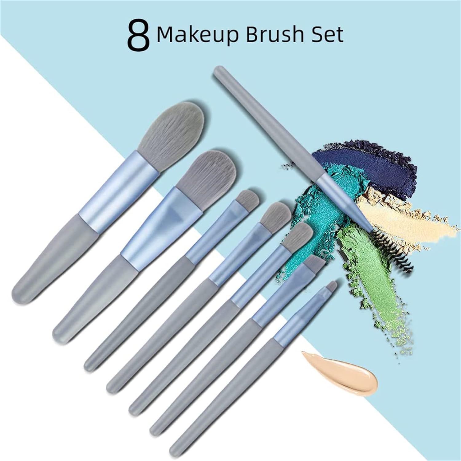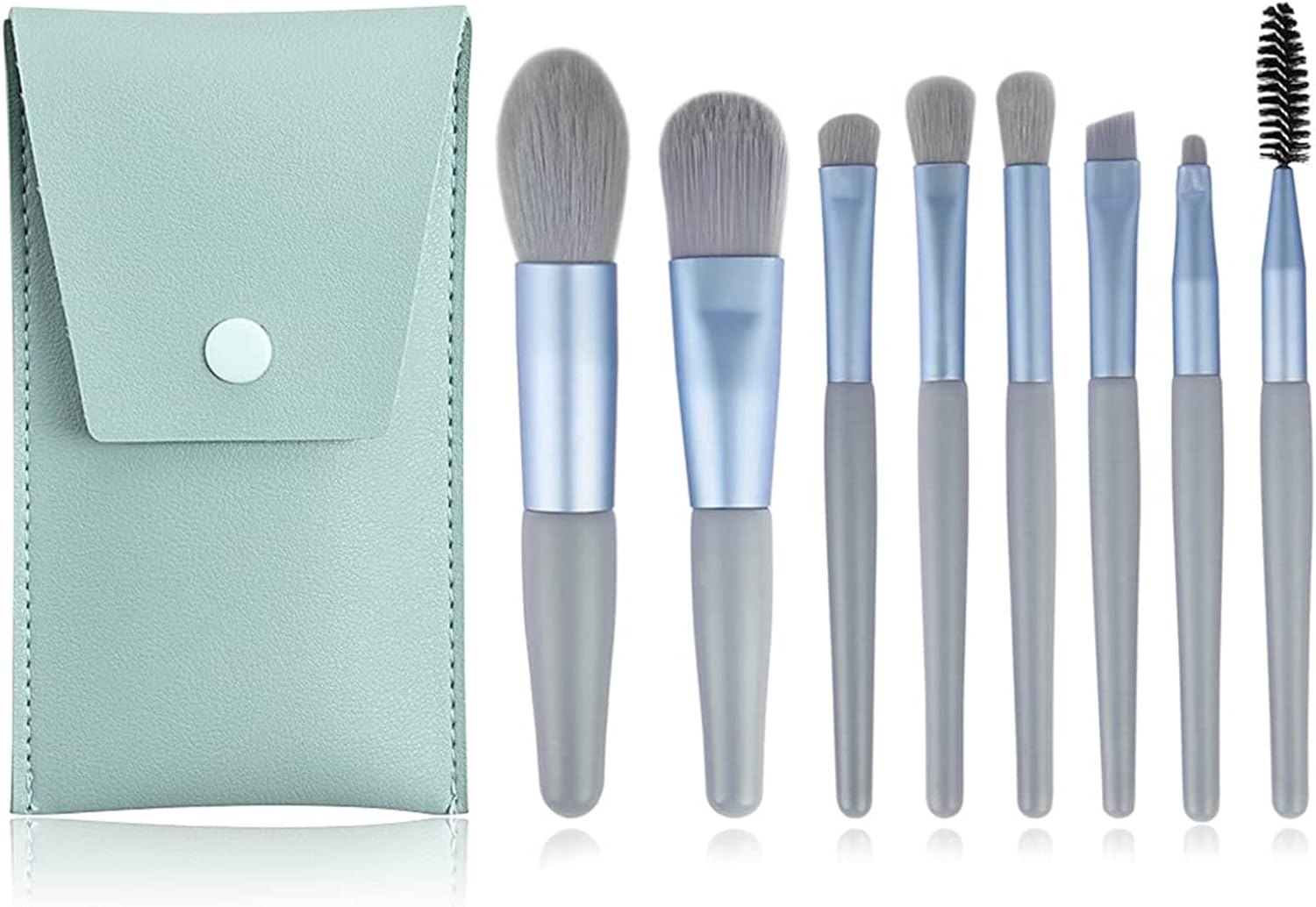Arabest Makeup Brush Set, 8 PCS Travel Cosmetic Brushes Kit with PU Bag, Mini Size Portable Soft Make Up Foundation Eye Shadow Face Eyes Lips Cosmetics Tools for Girls and Women (Haze Blue)