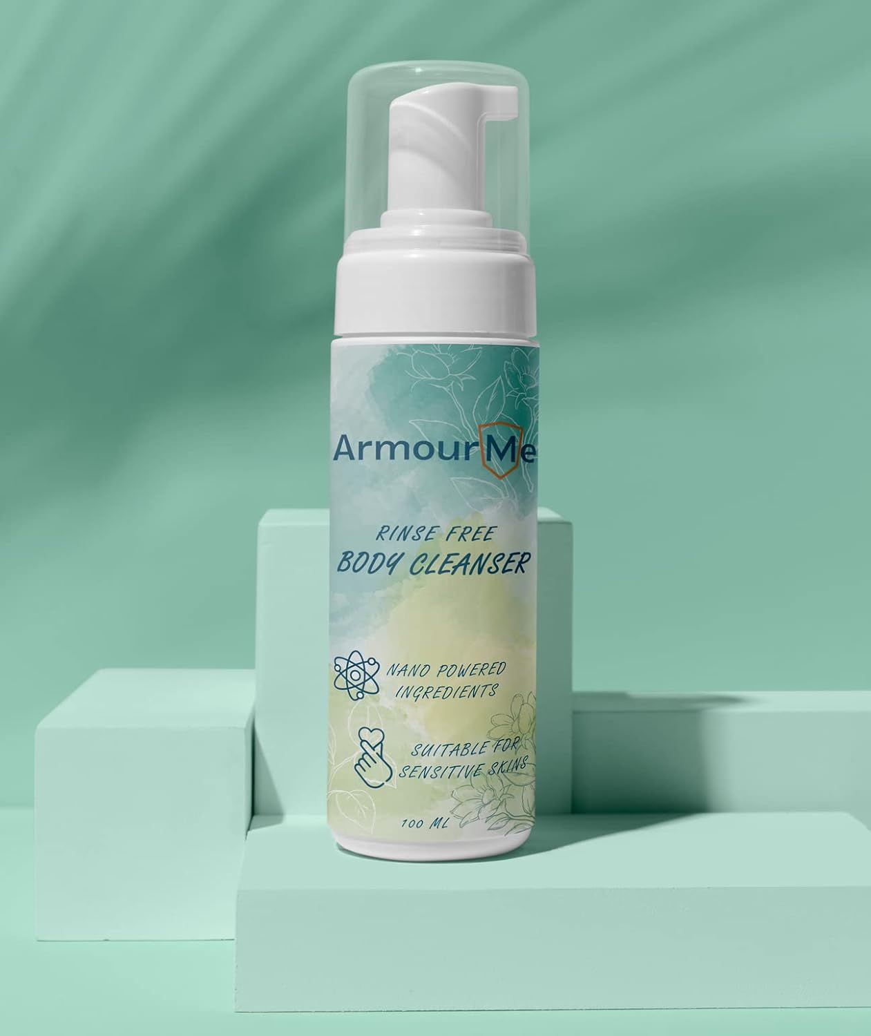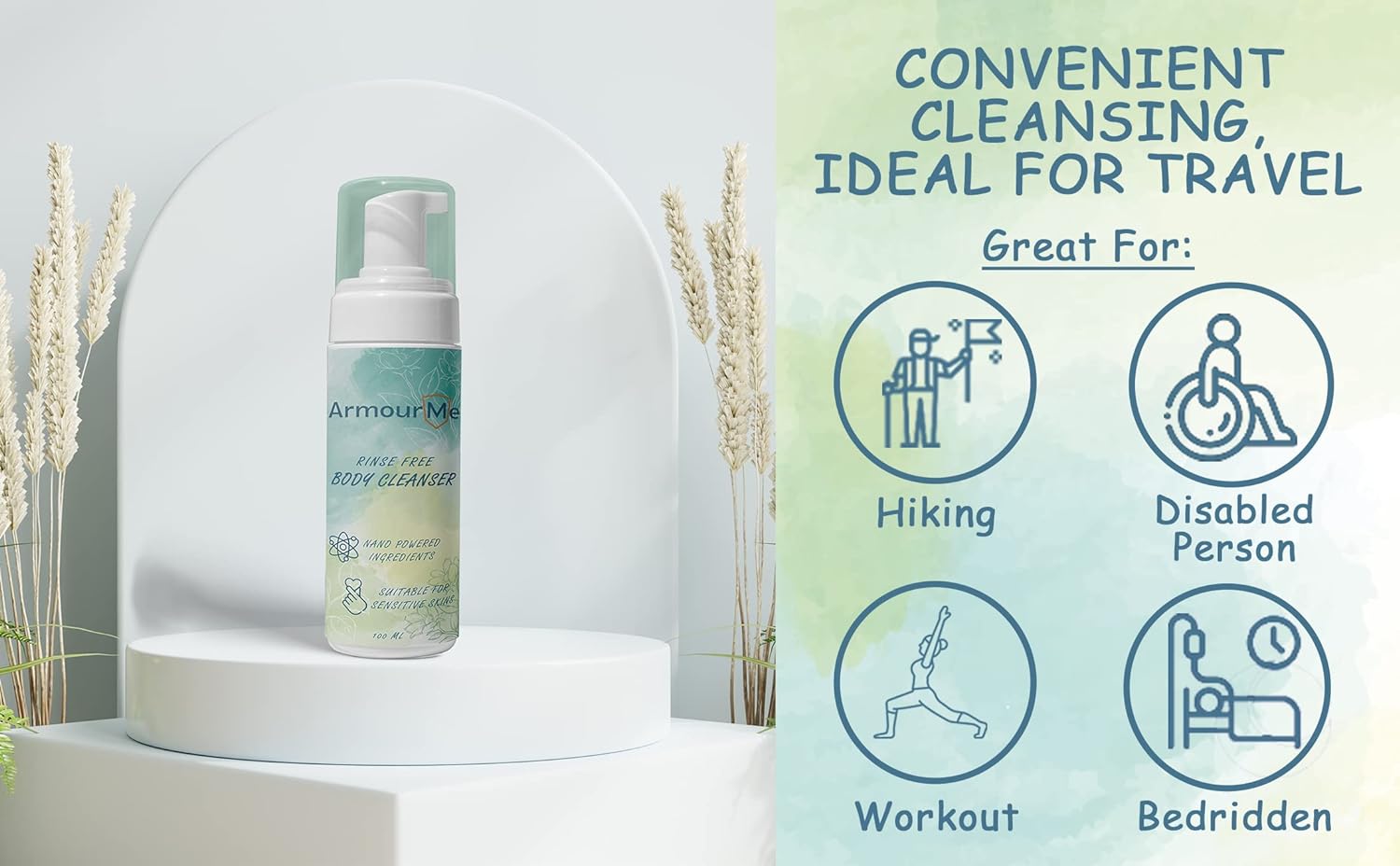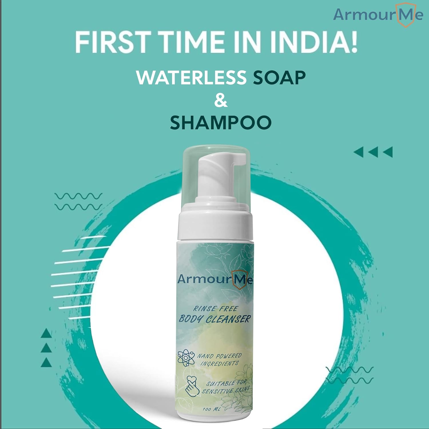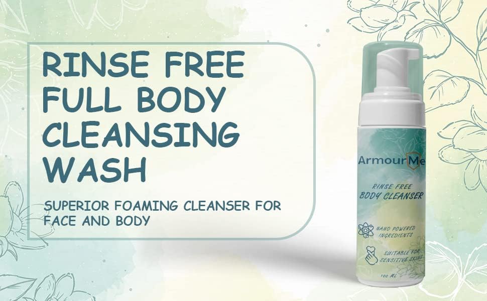 ArmourMe Waterless Body Wash | Body Cleanser | Full Body Waterless Cleansing Foam That Also Moisturizes and Protects Skin | With Vitamin E and Aloe Vera Extract | Wipe Away Cleanser (100 ML)