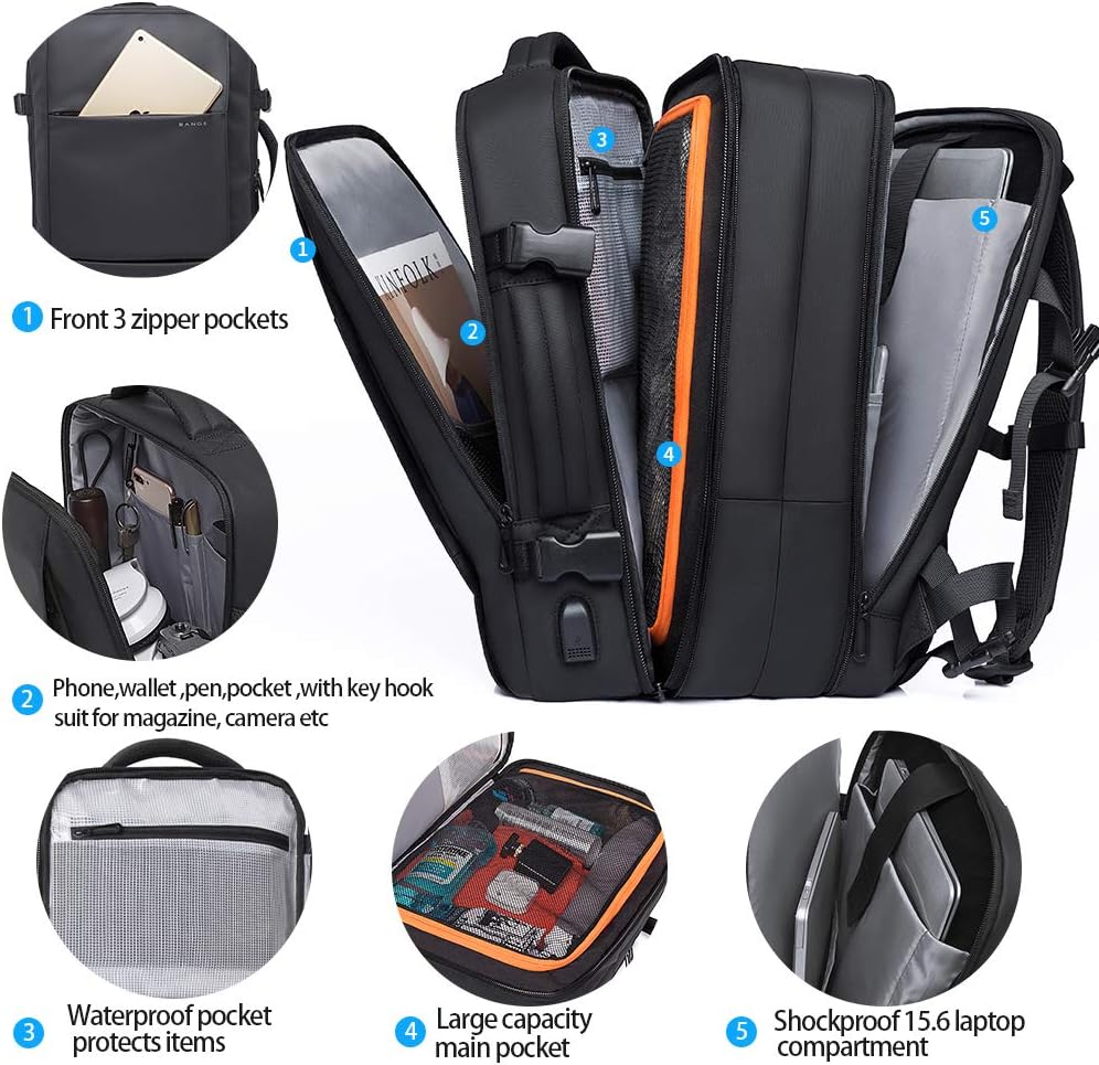 BANGE Travel Backpack,Flight Approved Carry On Backpack for International Travel Bag, Water Resistant Durable 17-inch Laptop Backpacks,Large Daypack Business Weekender Luggage Backpack for Men Women…