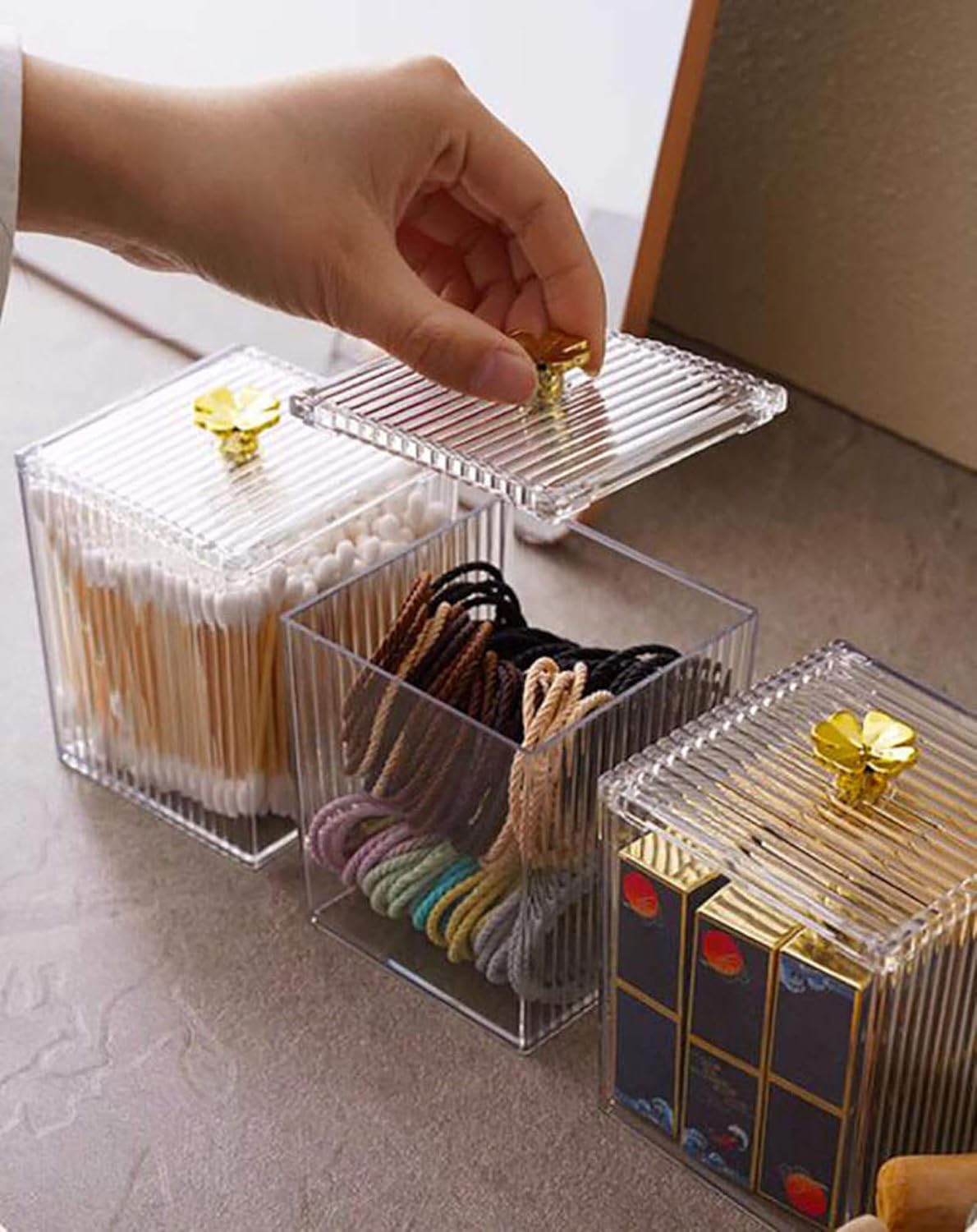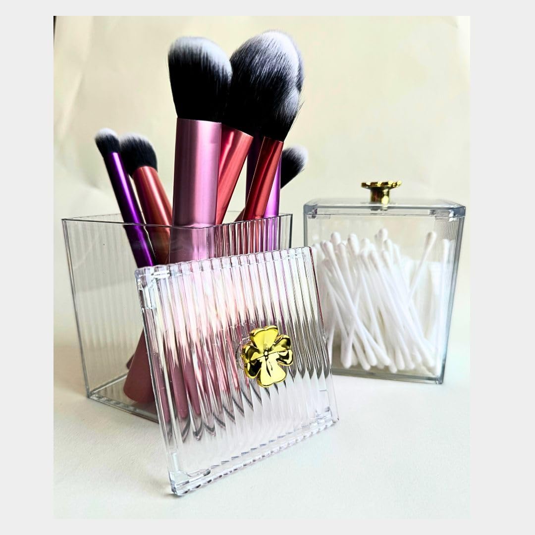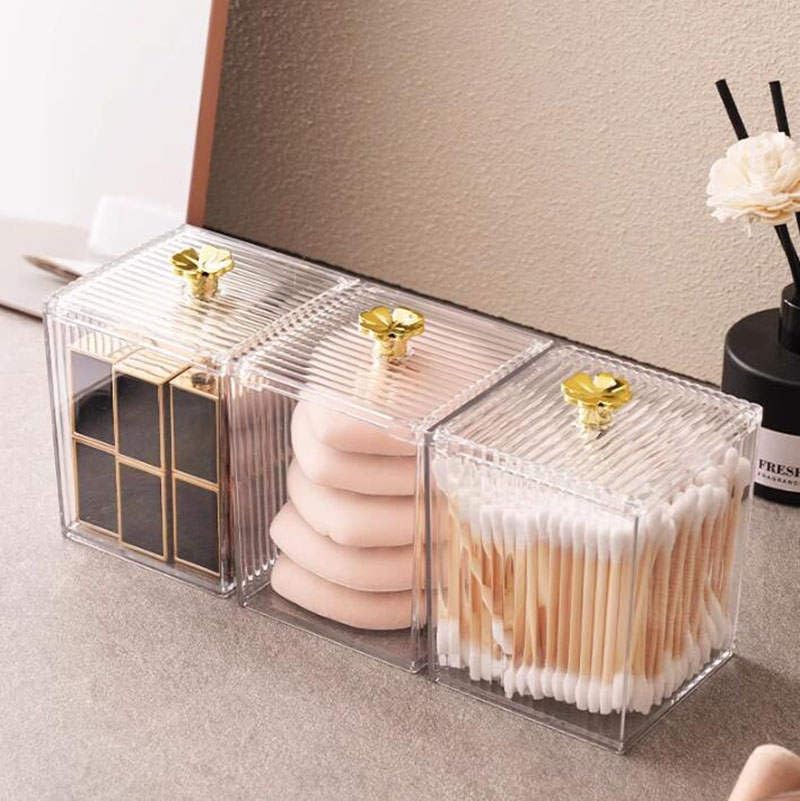 Multiple Uses: While they are perfect for holding cotton balls, swabs, or makeup brushes in the bathroom, these canisters are also versatile enough for use in your kitchen, office, or craft room. Store snacks, office supplies, or small crafting materials effortlessly.