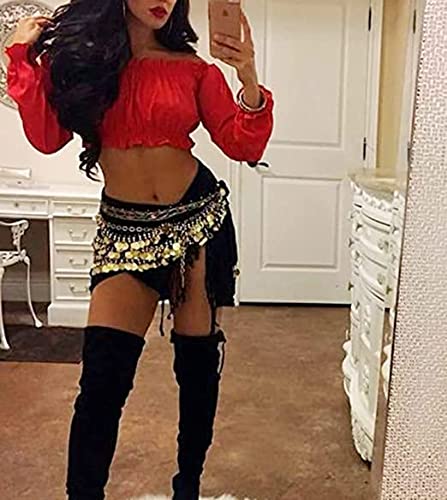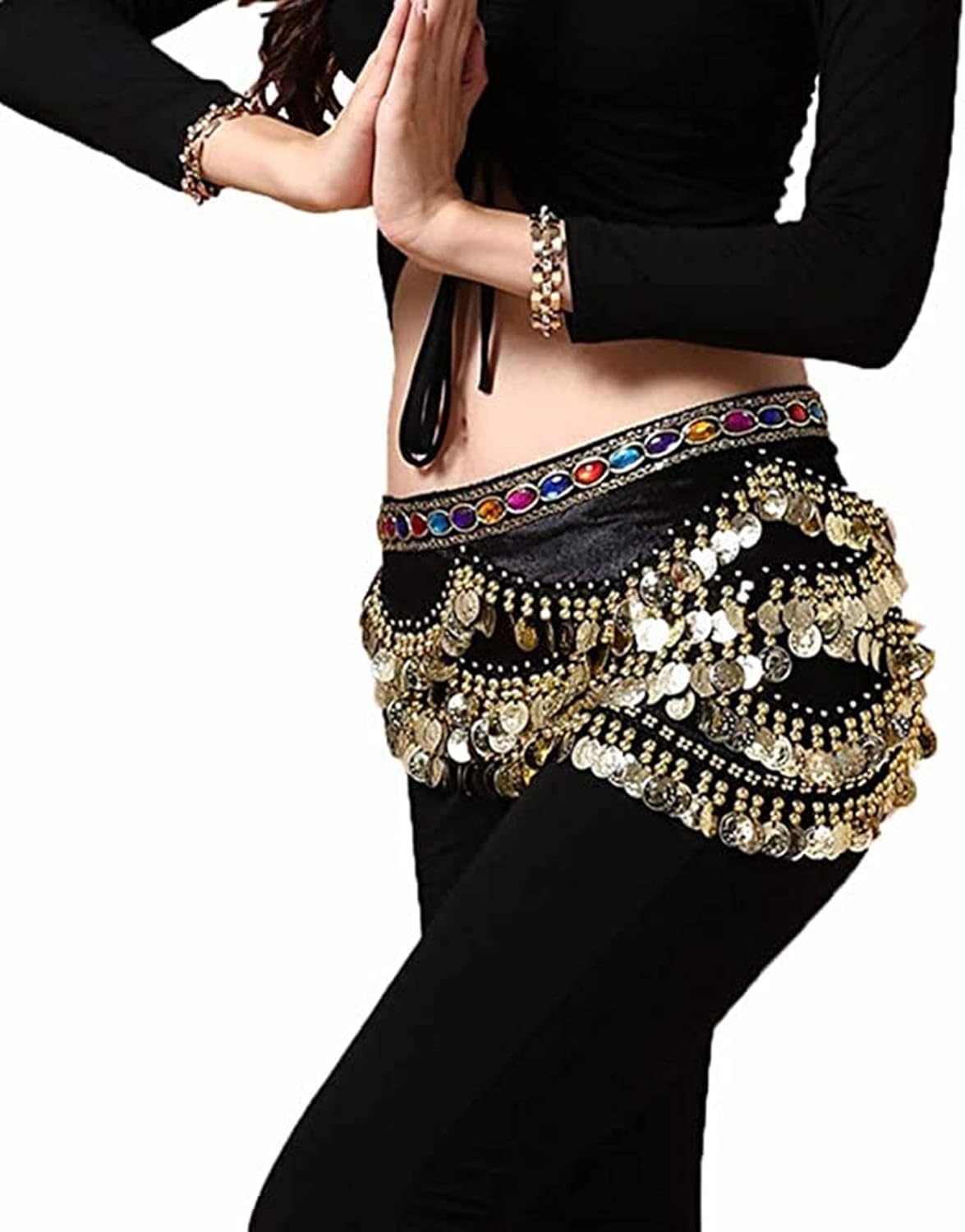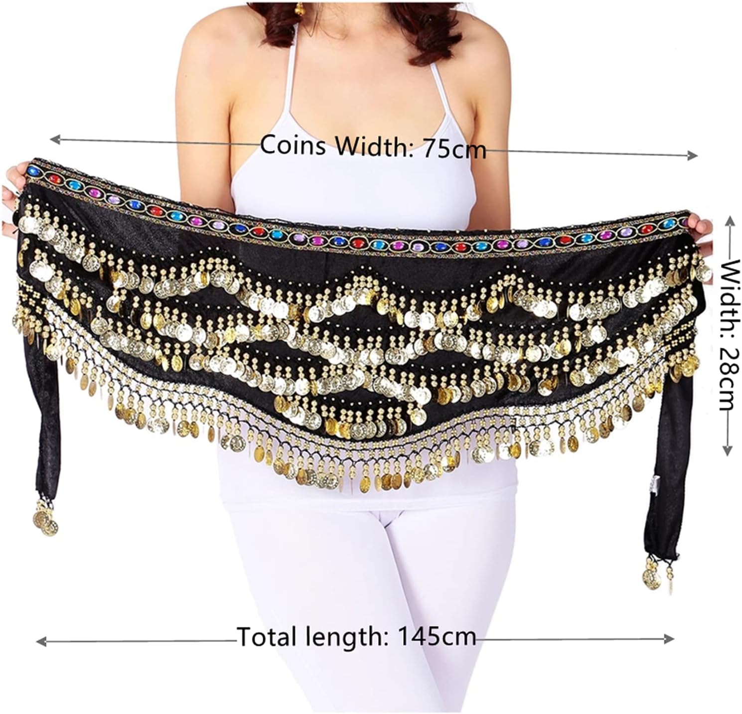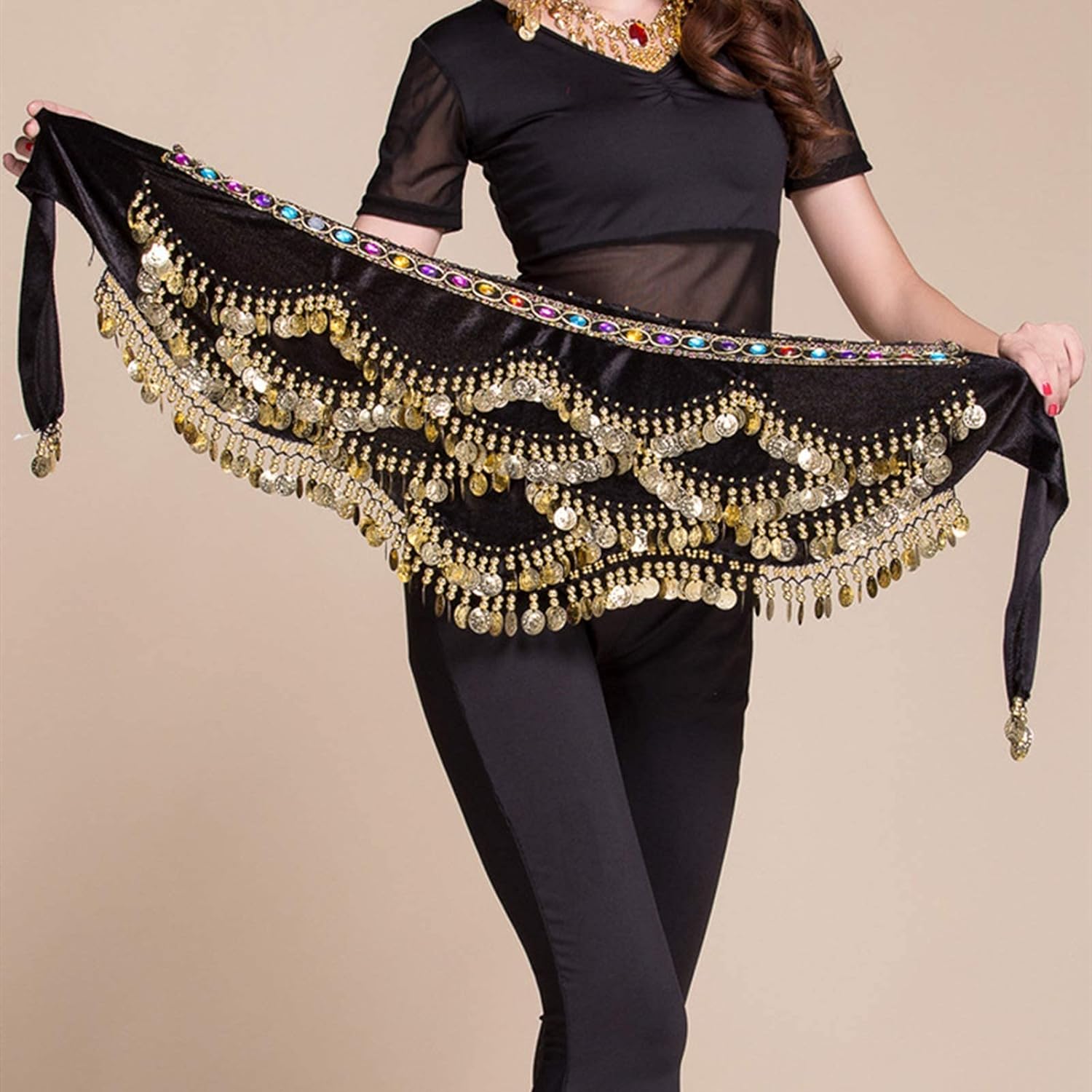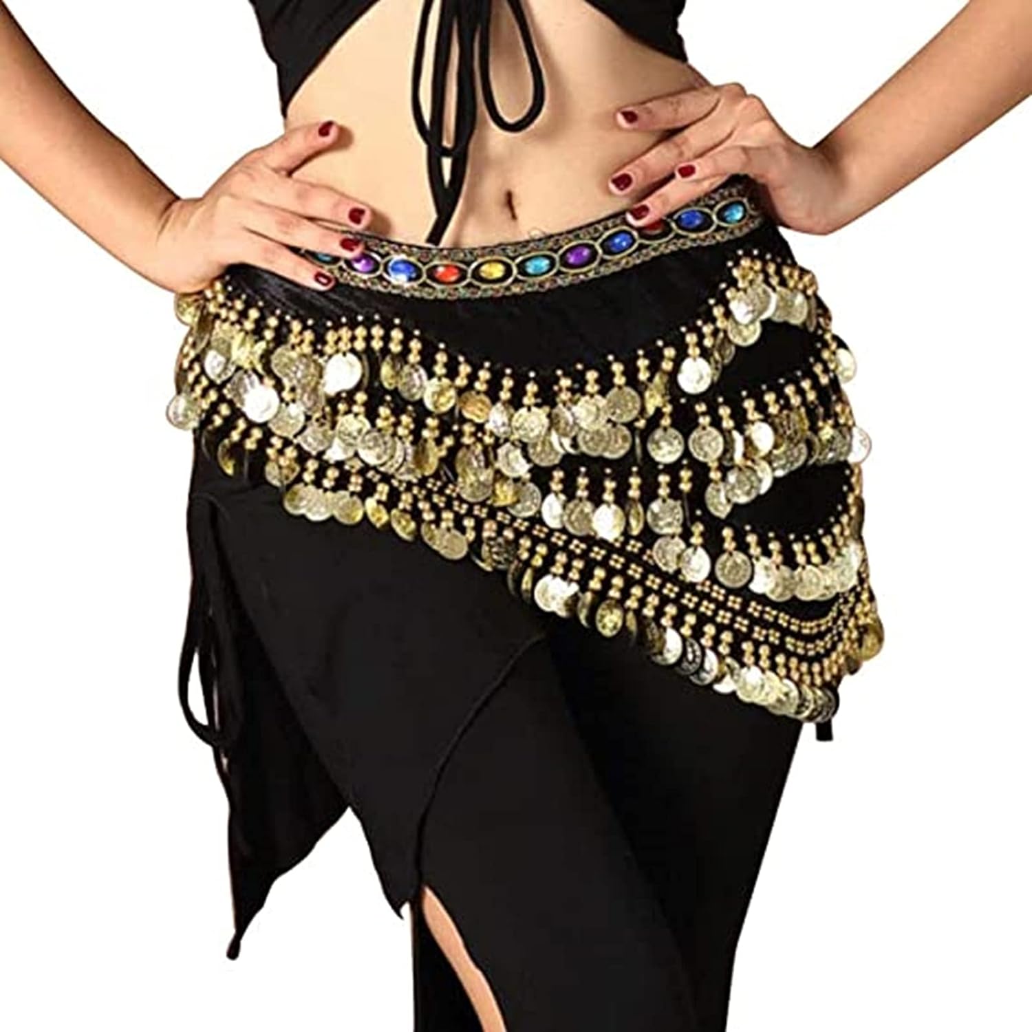 conobo Women's Triangular Belly Dance Hip Scarf Wrap Belt Skirt with Gold Coins
