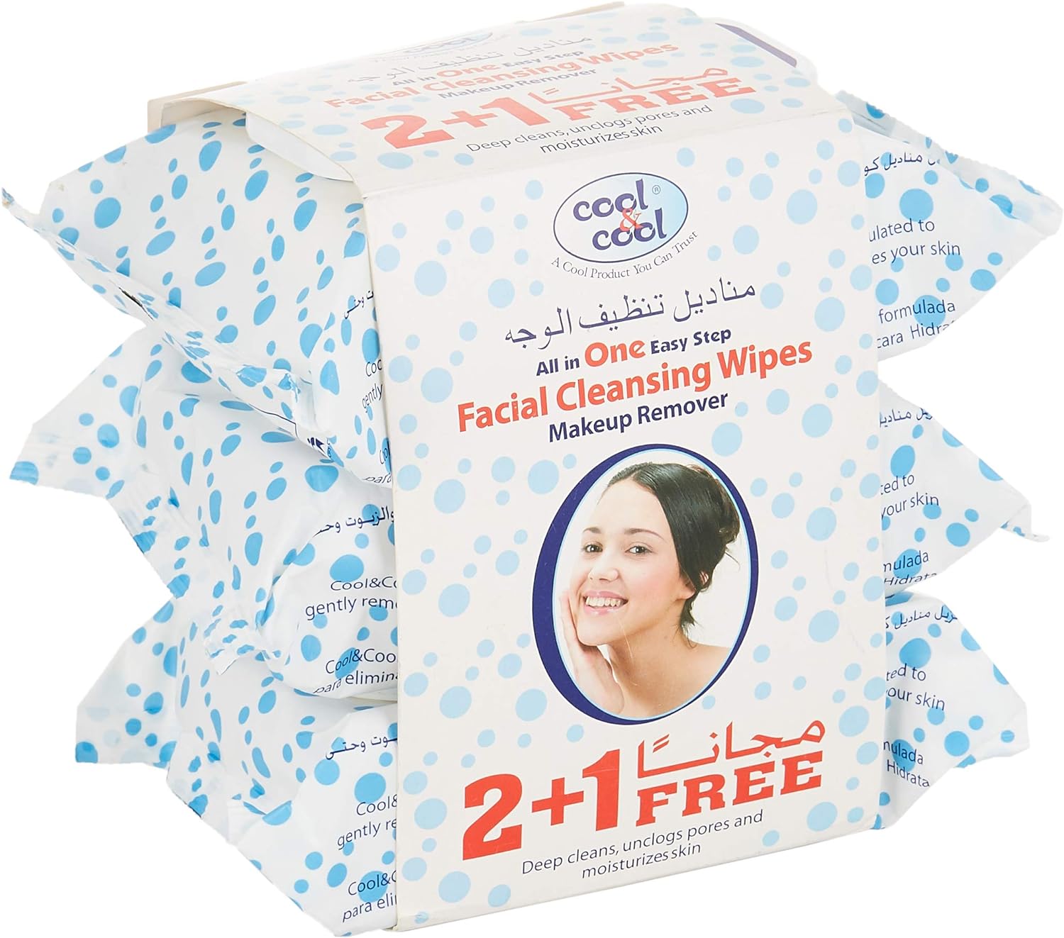 Cool & Cool Makeup Remover Facial Cleansing Wipes for All Skin Types | Effectively removes make-up, 3 x 33's