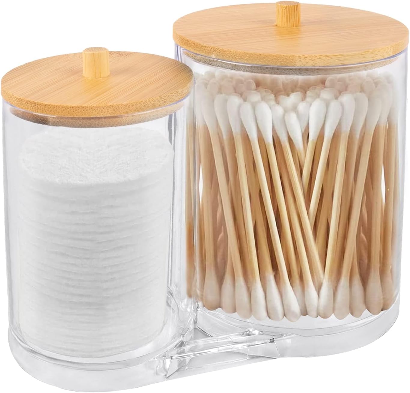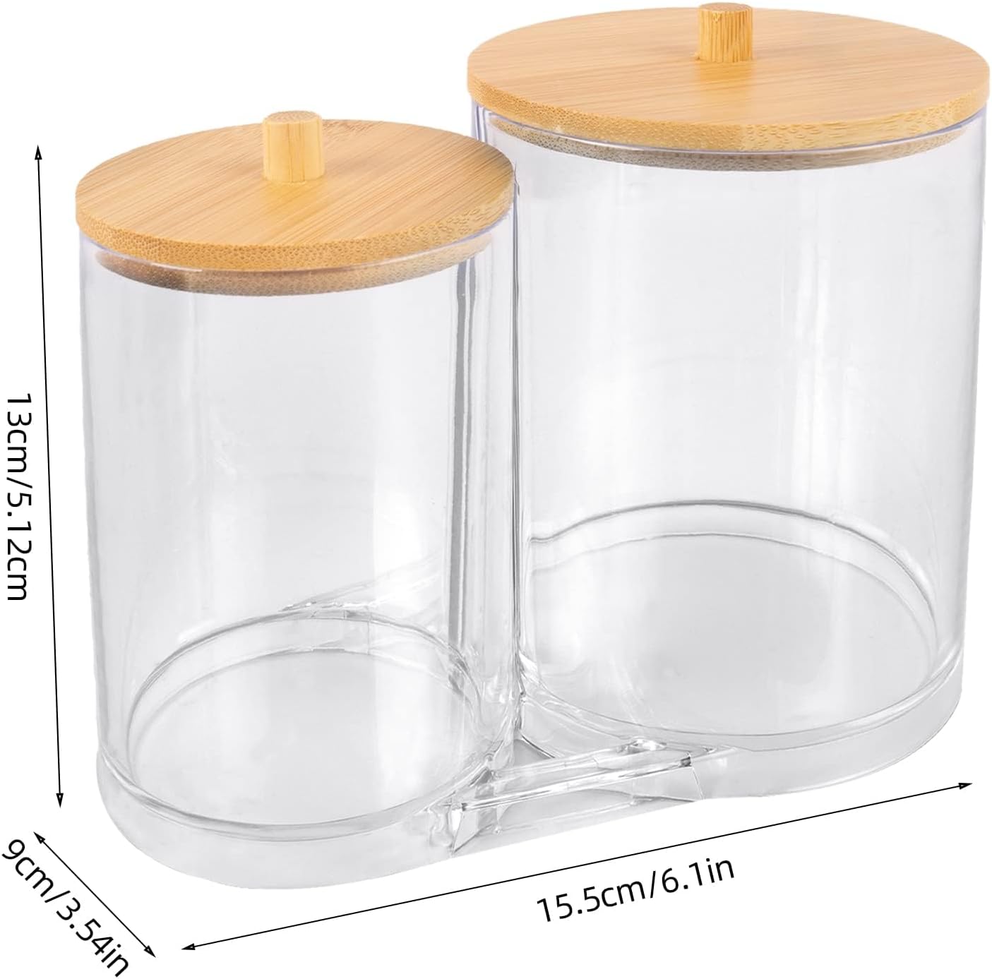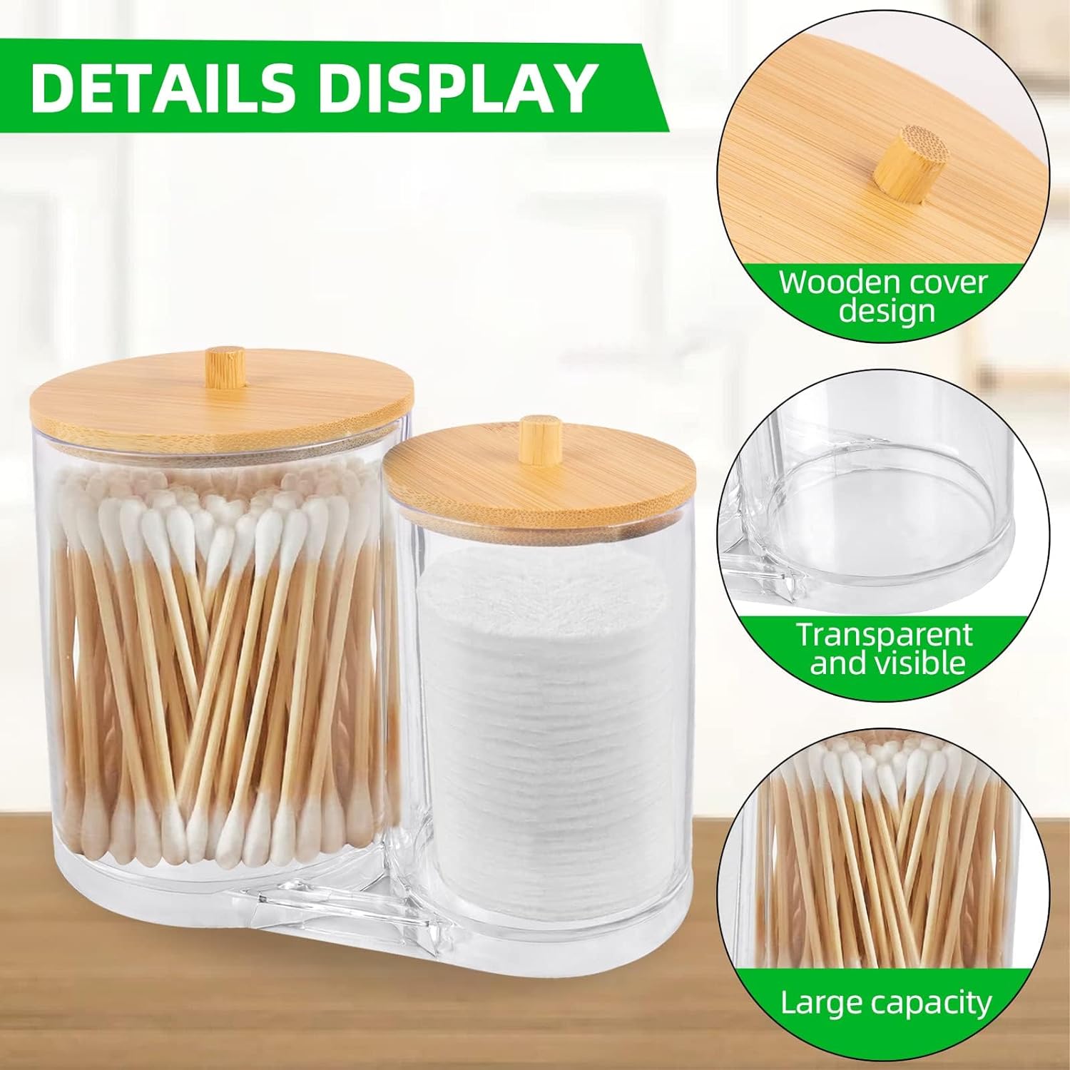 【High-Quality Materials】TheCotton Swabs Storage Dispenser is made of transparent acrylic material. The lids are made of high-quality wood, with a smooth edge, safe and hard, will not be broken. Reusable.