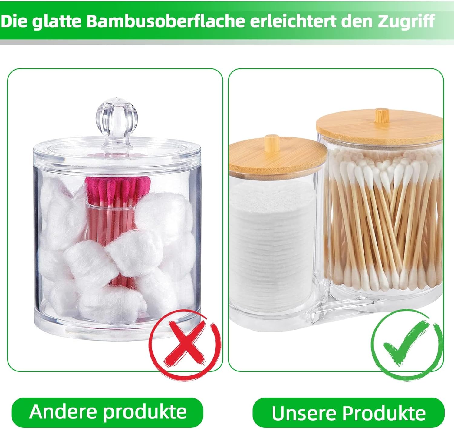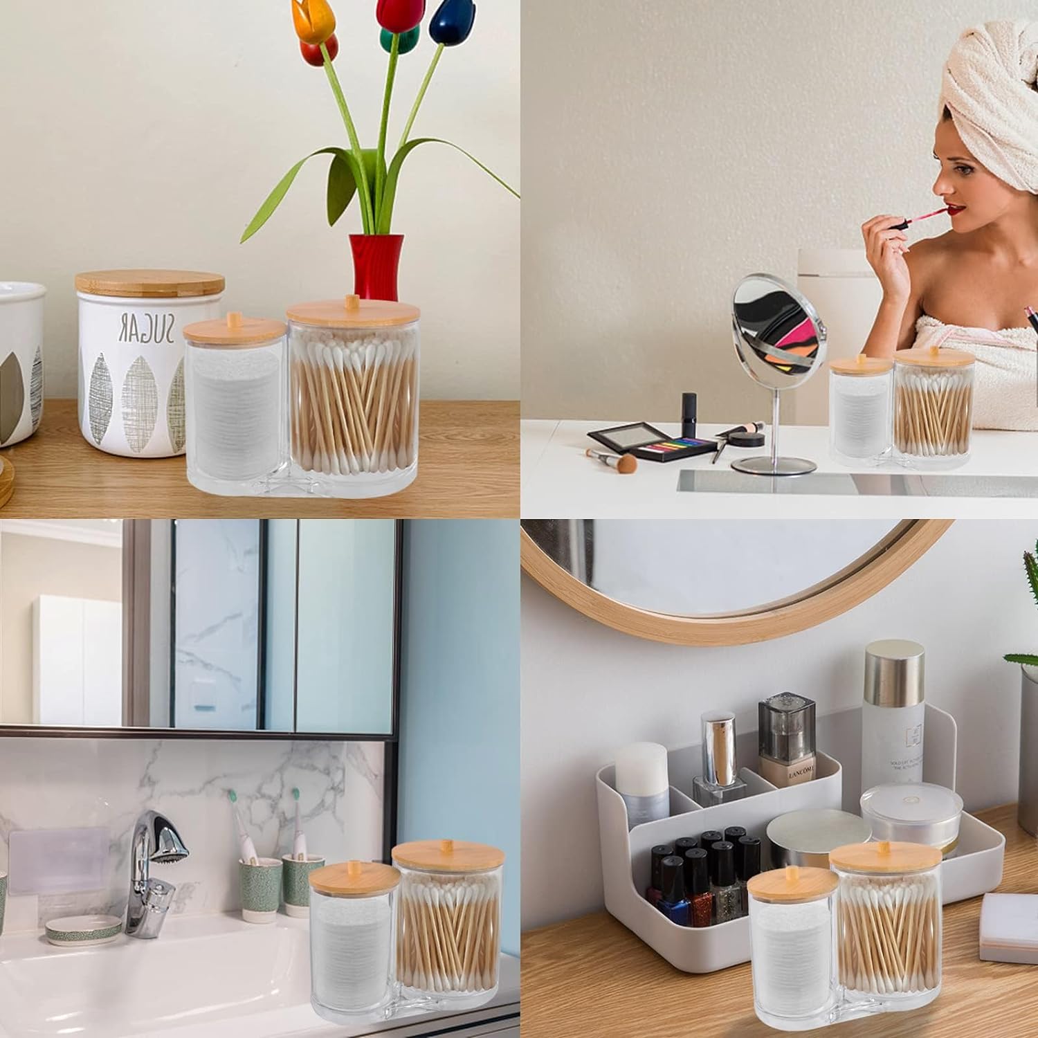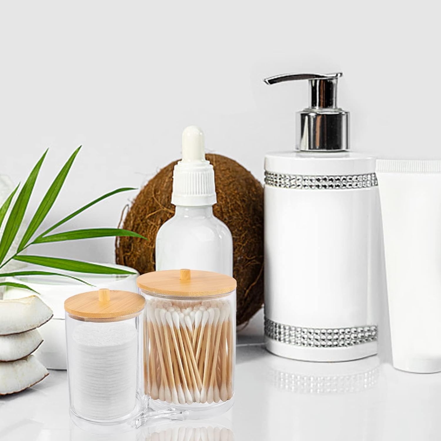 【High-Quality Materials】TheCotton Swabs Storage Dispenser is made of transparent acrylic material. The lids are made of high-quality wood, with a smooth edge, safe and hard, will not be broken. Reusable.