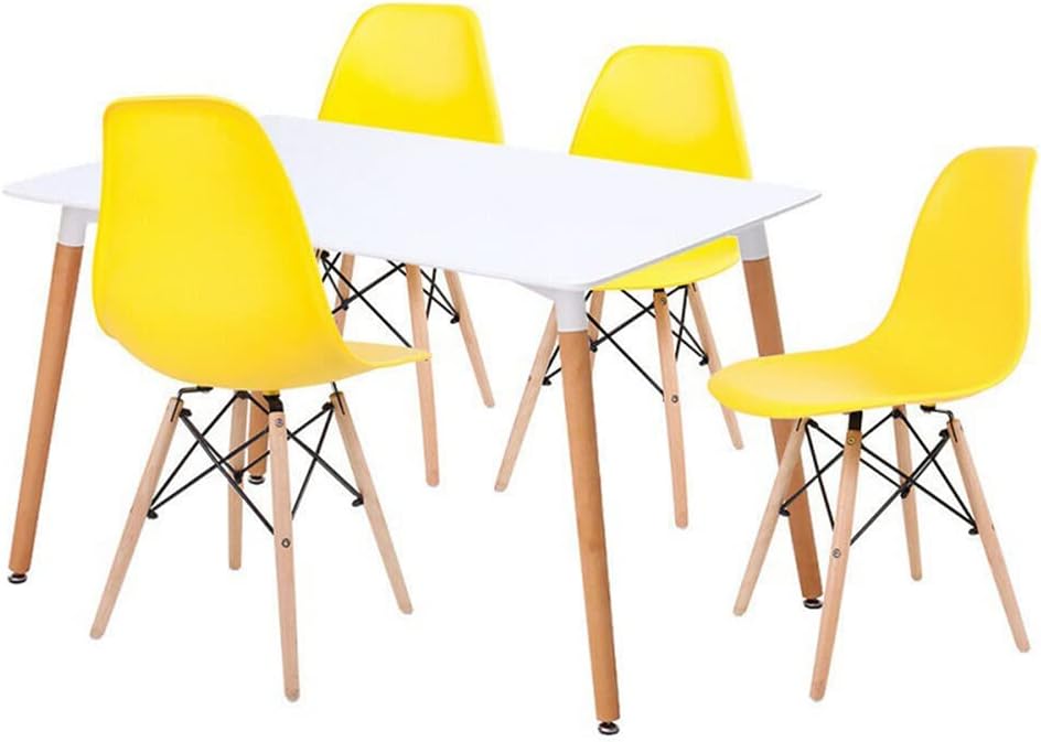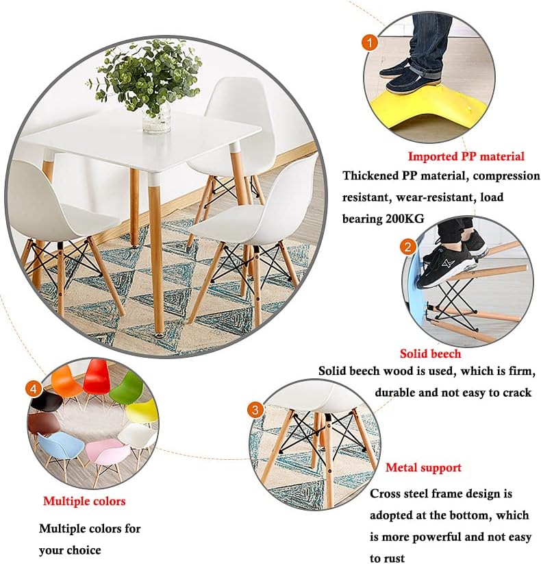 Lightweight &Durable Frame: Our dining set is made of high-quality plastic and solid wood legs which offering durability and sturdiness. The steel frame of legs adopts cross fixation, the structure is strong and durable.