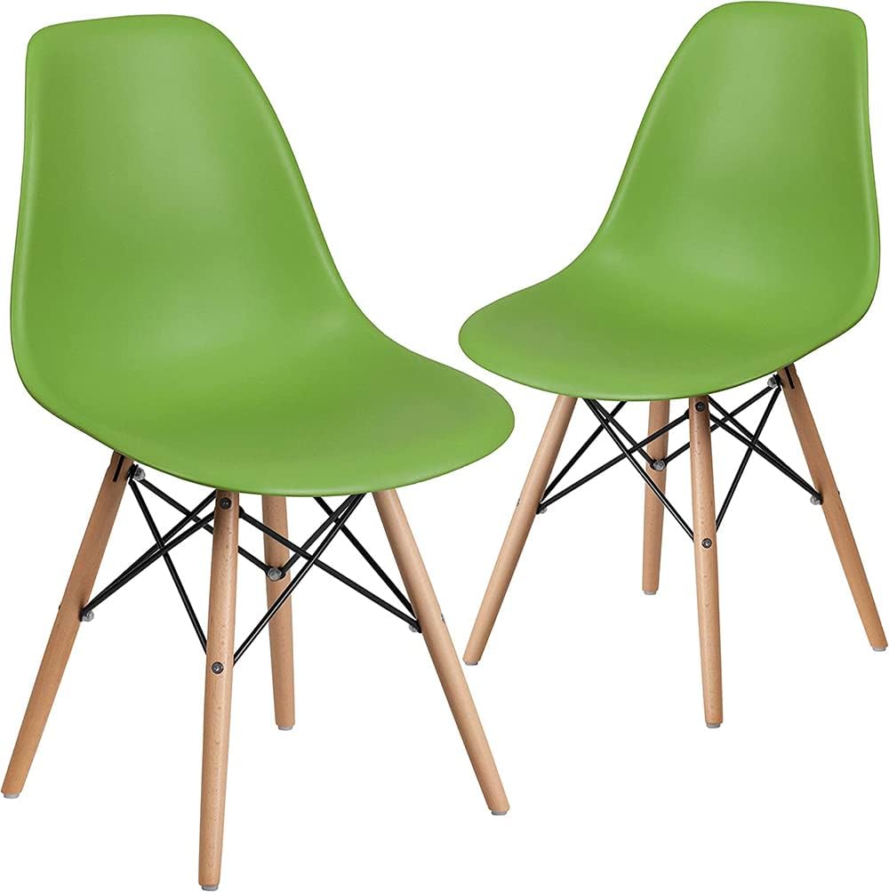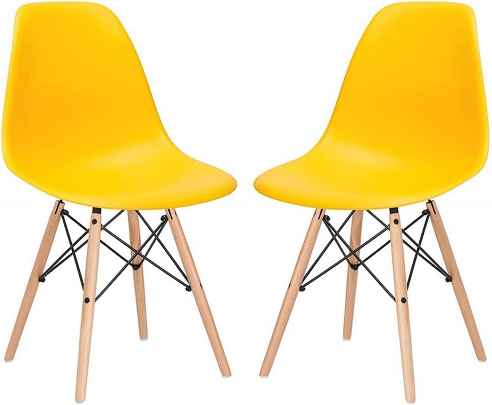 Dining Chair, Home Solid Wood Chair,European Creative Plastic Chair with Natural Solid Wood Leg,Hollow Back Design Armless Side Chair,for Kitchen, Dining, Living (White, Set of 2)