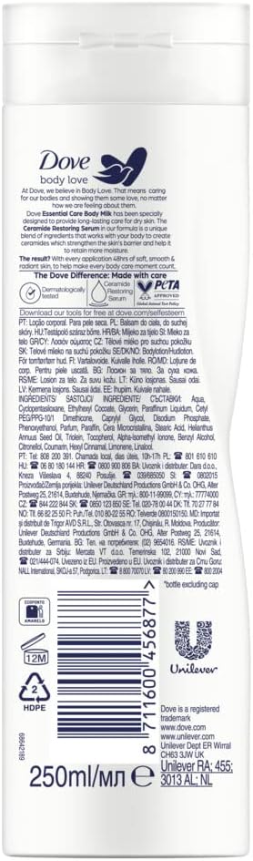 Dove Body Love Essential Care Body Milk Lotion gives your body the love and care it deserves