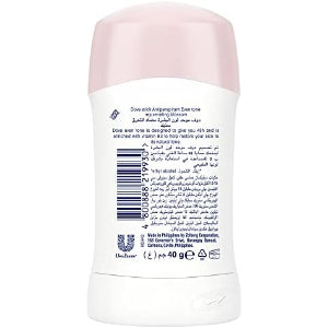 Dove Even Tone Antiperspirant Deodorant Stick contains our unique ¼ moisturisers and leaves you with soft, smooth underarm skin