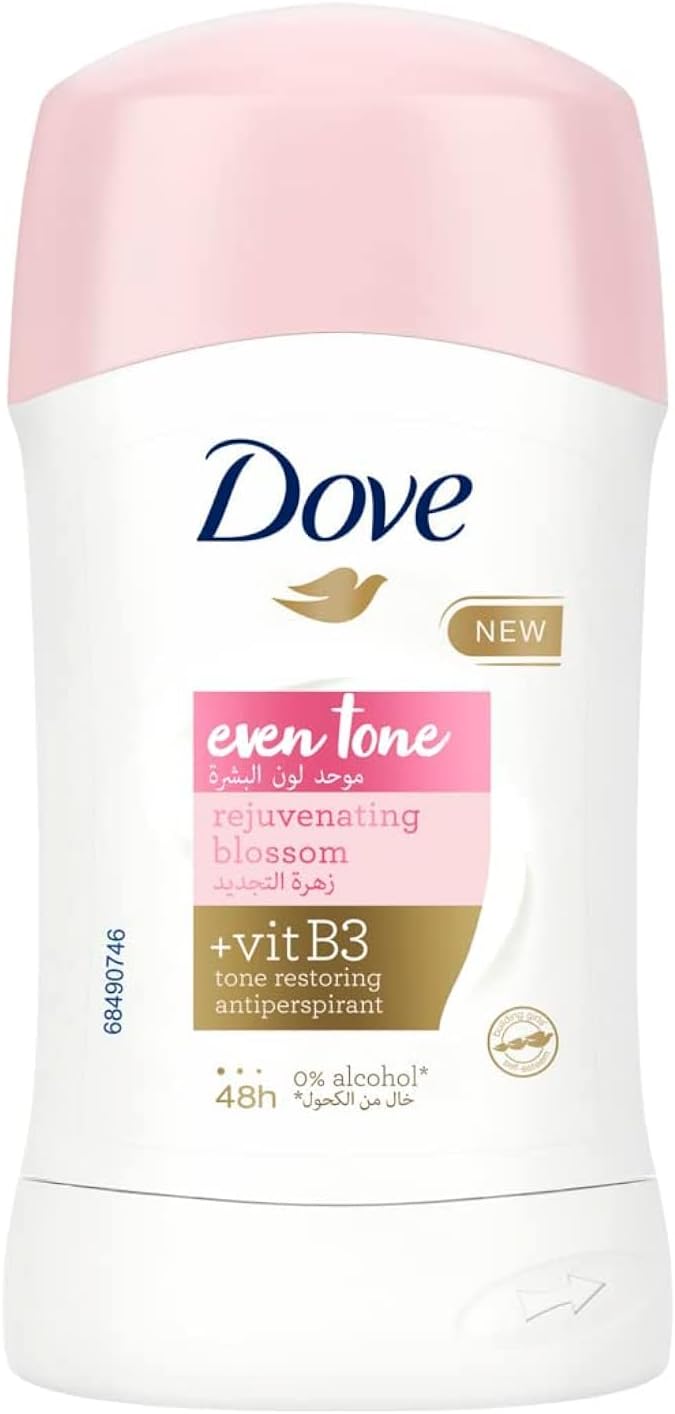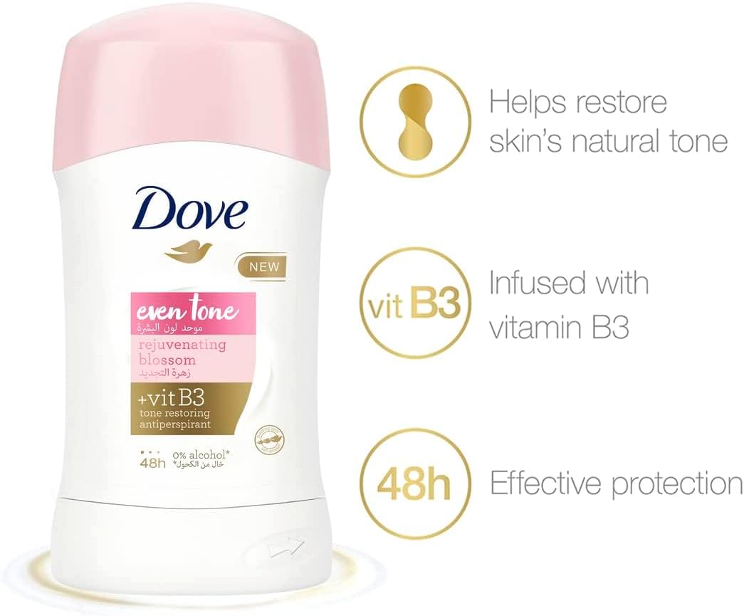 Dove Even Tone Antiperspirant Deodorant Stick, Restores Underarm Skin To Its Natural Tone, Rejuvenating Blossom, For 48H Sweat & Odor Protection, 40G