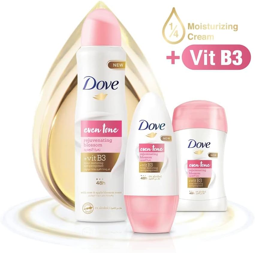 Dove Even Tone Antiperspirant Deodorant Stick Rejuvenating Blossom helps restore your skin to its natural tone, while offering 48 hours of sweat and odor protection