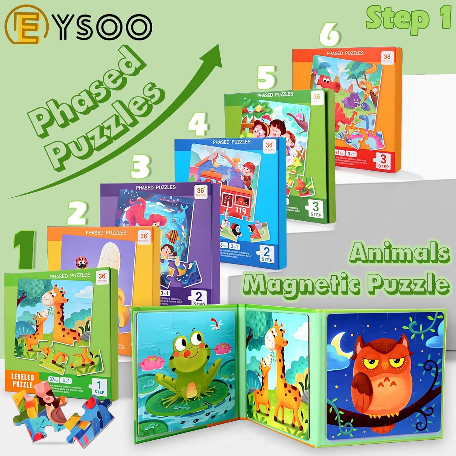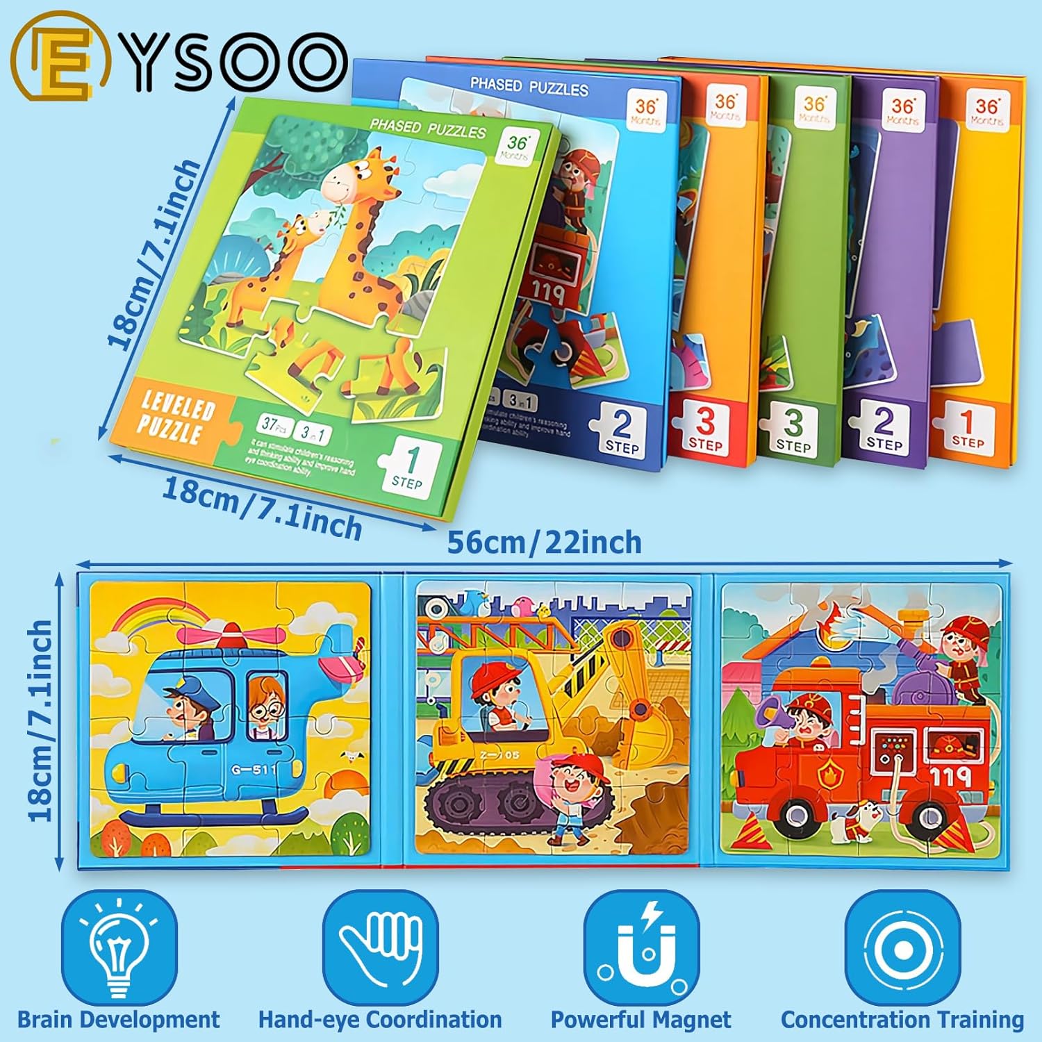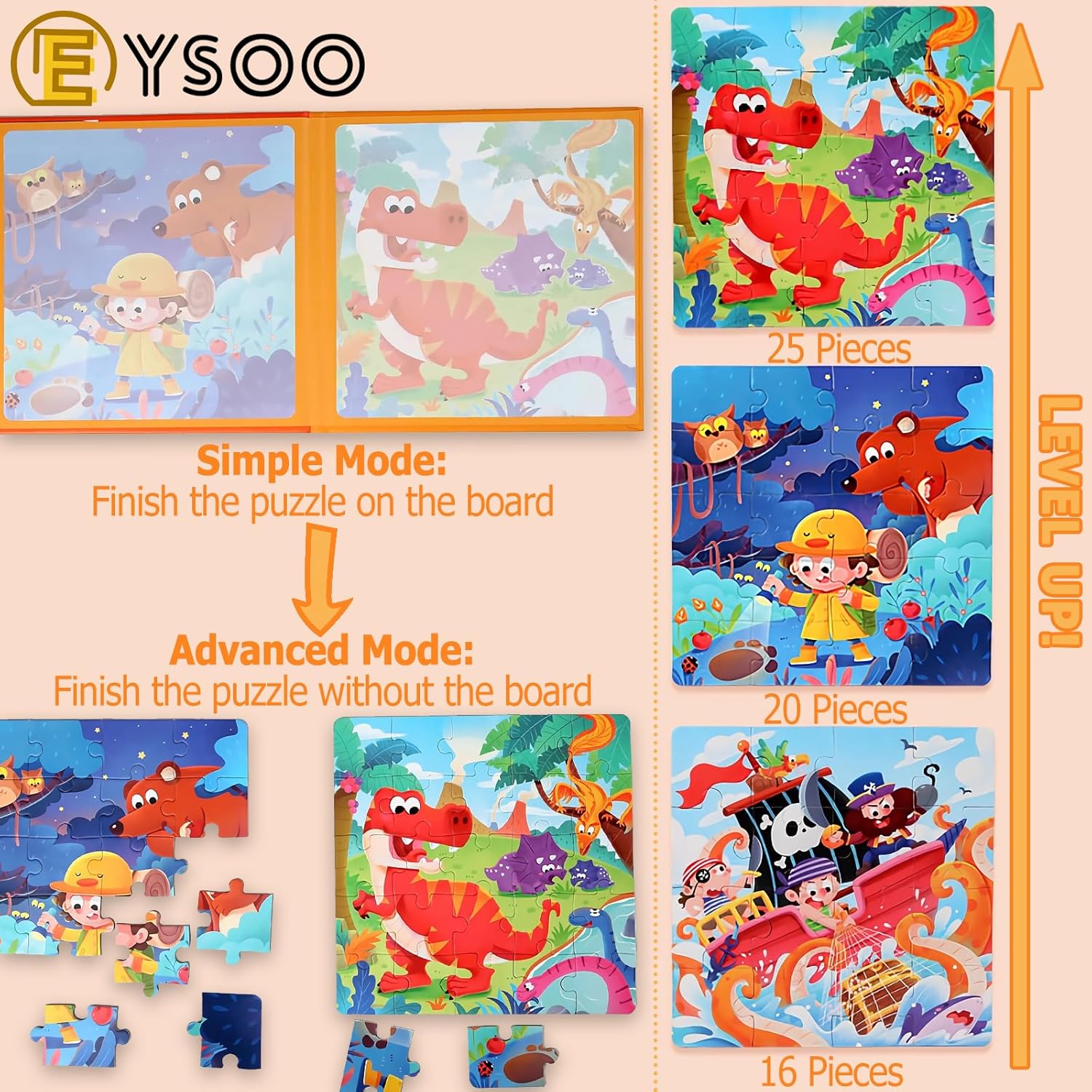 - 😀[Magnetic Design]: EYSOO magnetic jigsaw puzzles include 3 puzzle books featuring the story theme. The puzzle pieces have a magnetic design so pieces will not fall off easily and kids can play the jigsaw puzzle happily and worry-freely!