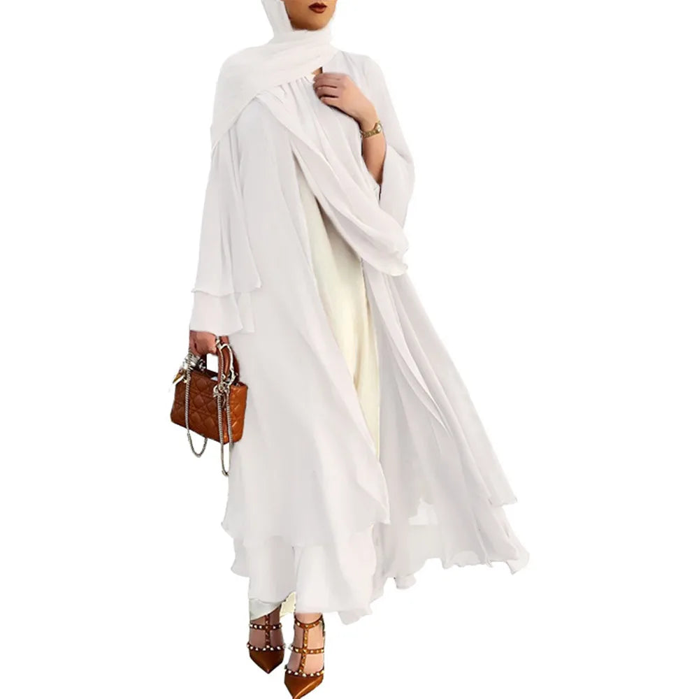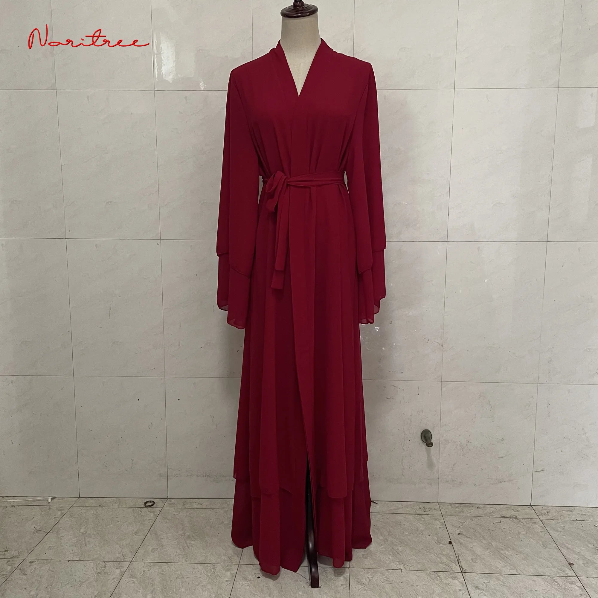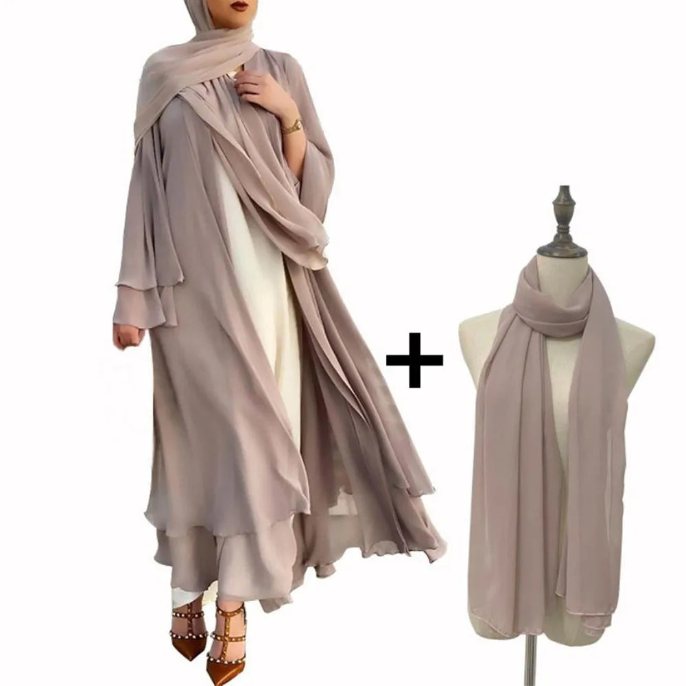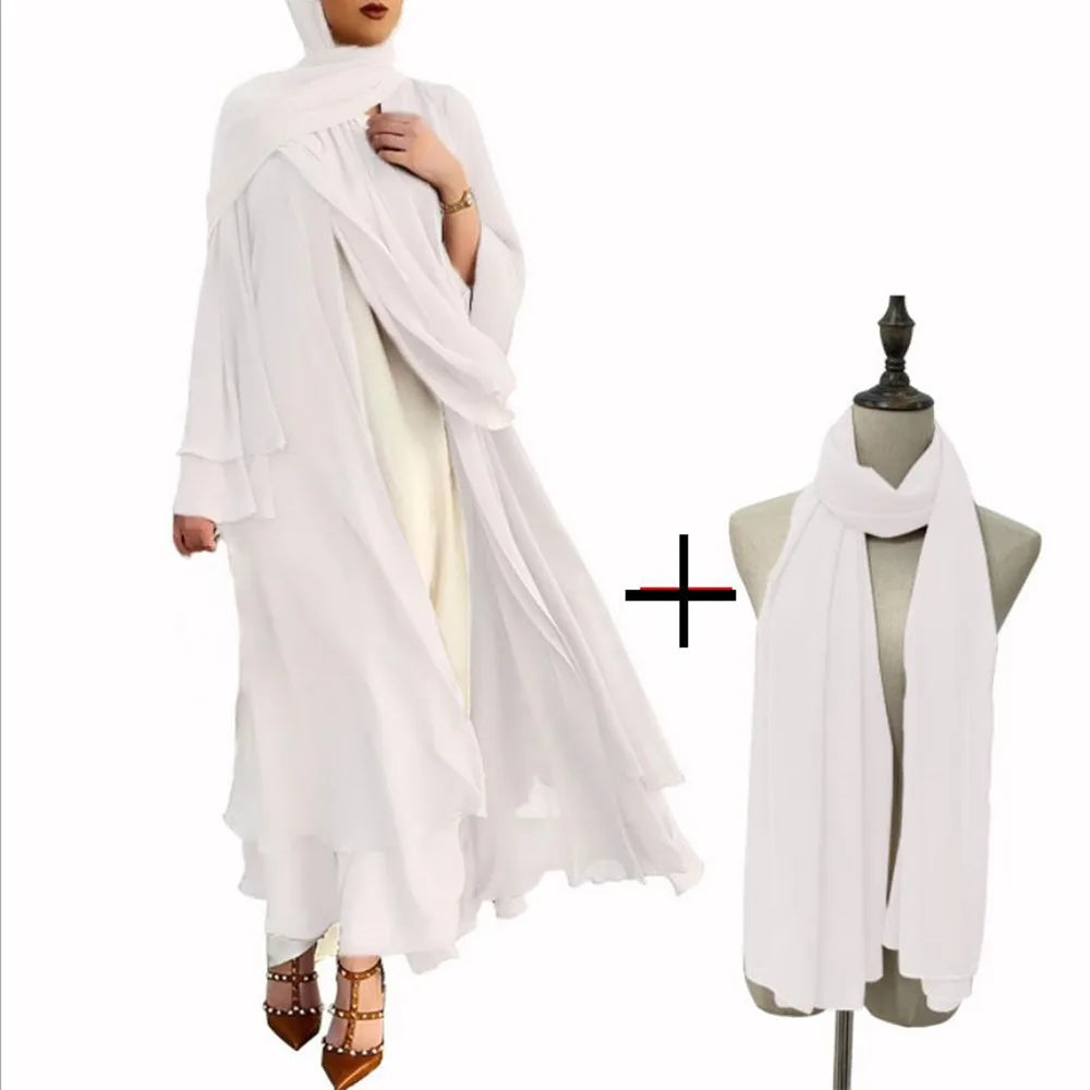Fashion Chiffon Abaya Kimono Dubai Muslim Cardigan Abayas Women Casual Robe female Islam Clothes With Belt F2664