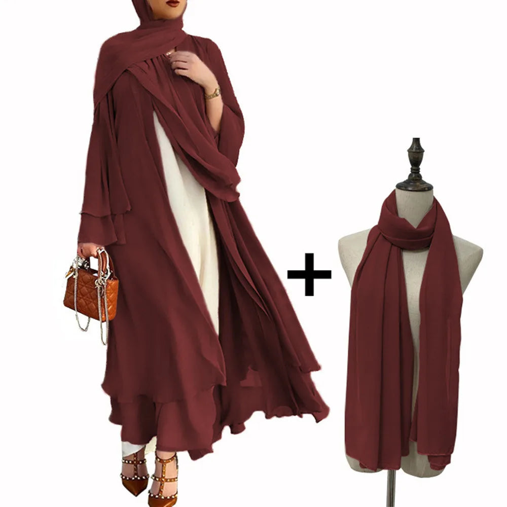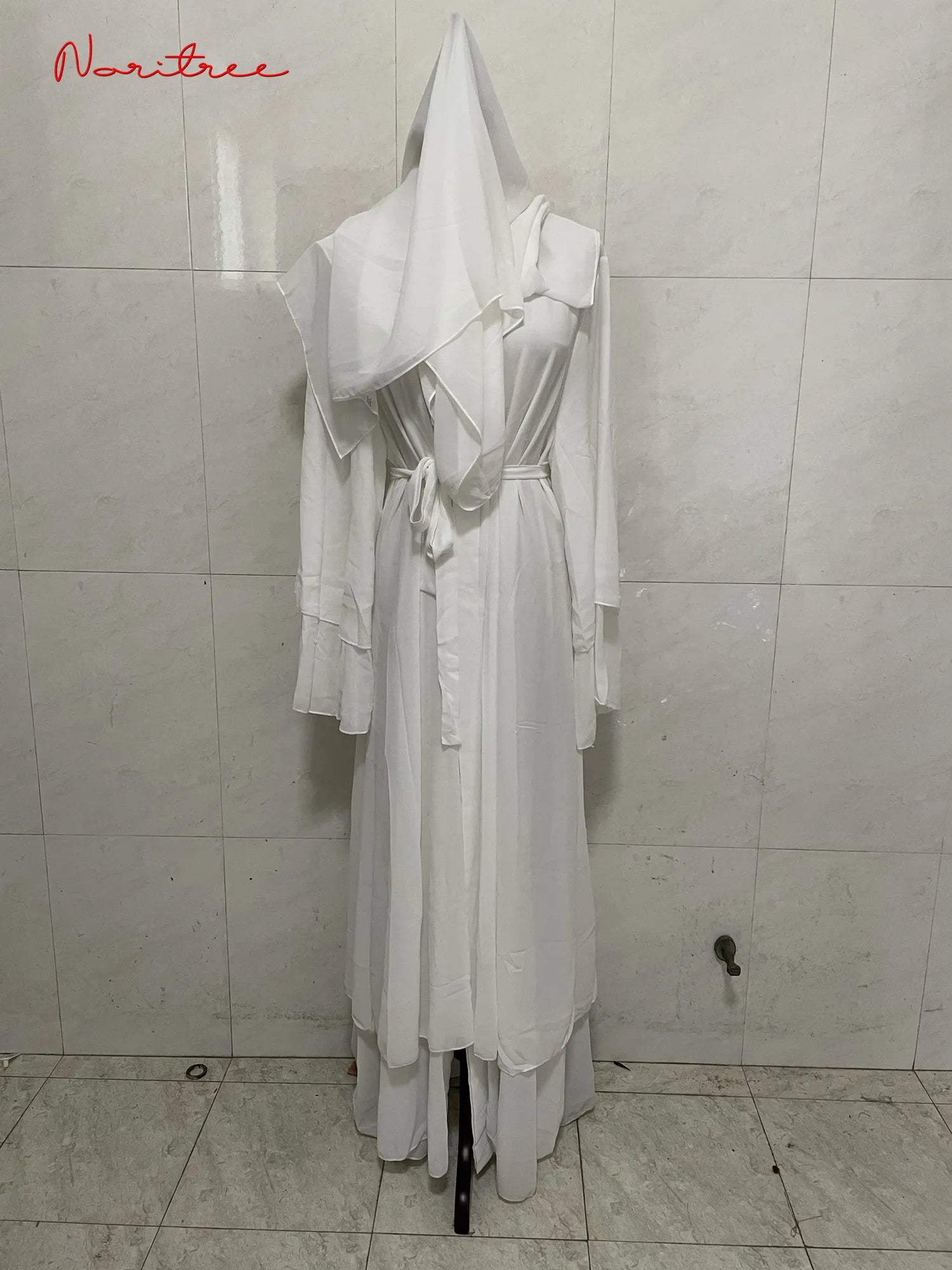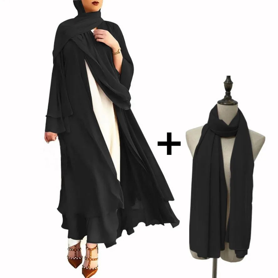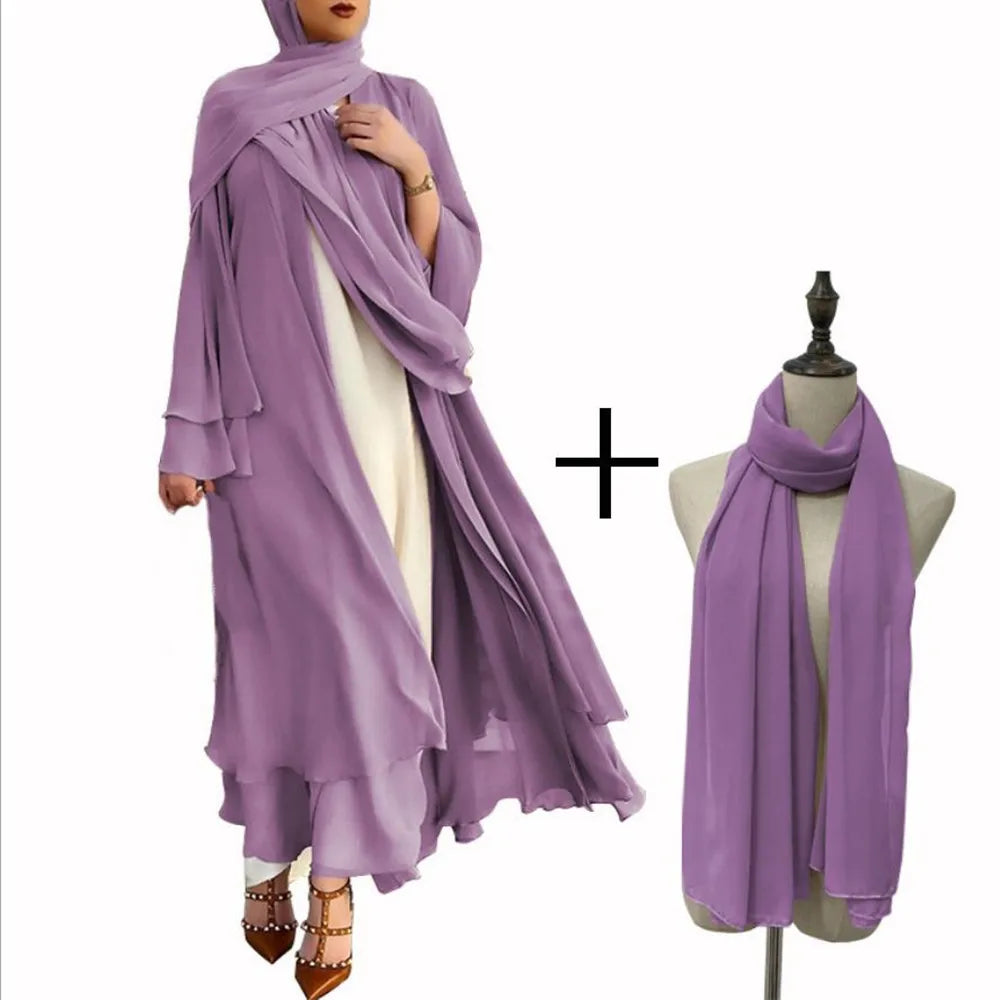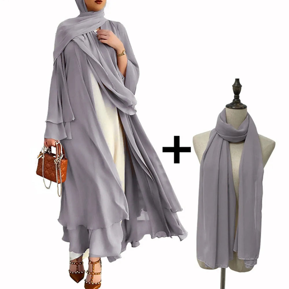 Fashion Chiffon Abaya Kimono Dubai Muslim Cardigan Abayas Women Casual Robe female Islam Clothes With Belt F2664