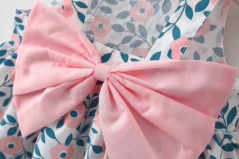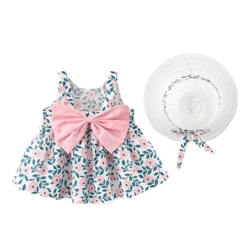 Floral Dress for Baby Girl Dress set for Summer with Matching Hat and Big pink bow cute summer outfit baby clothing set