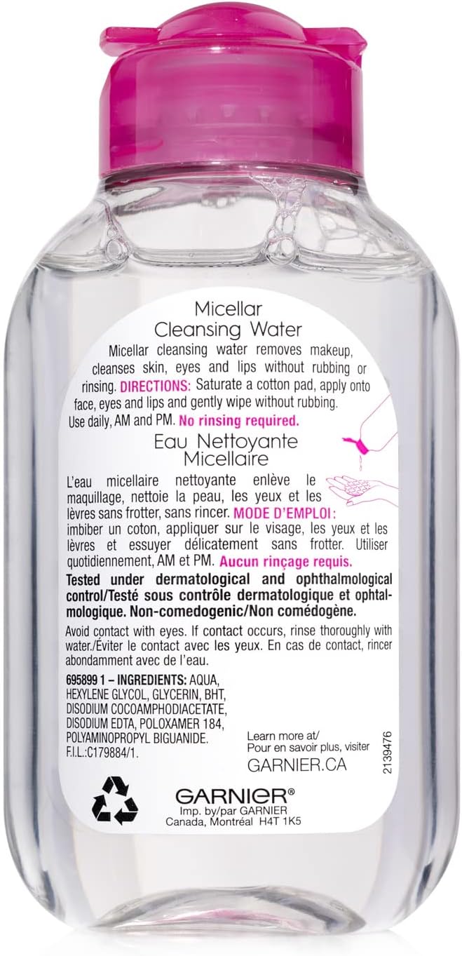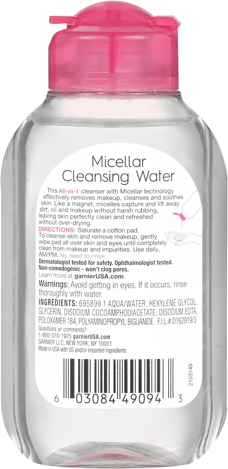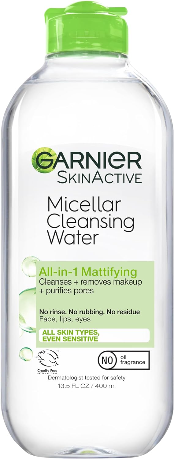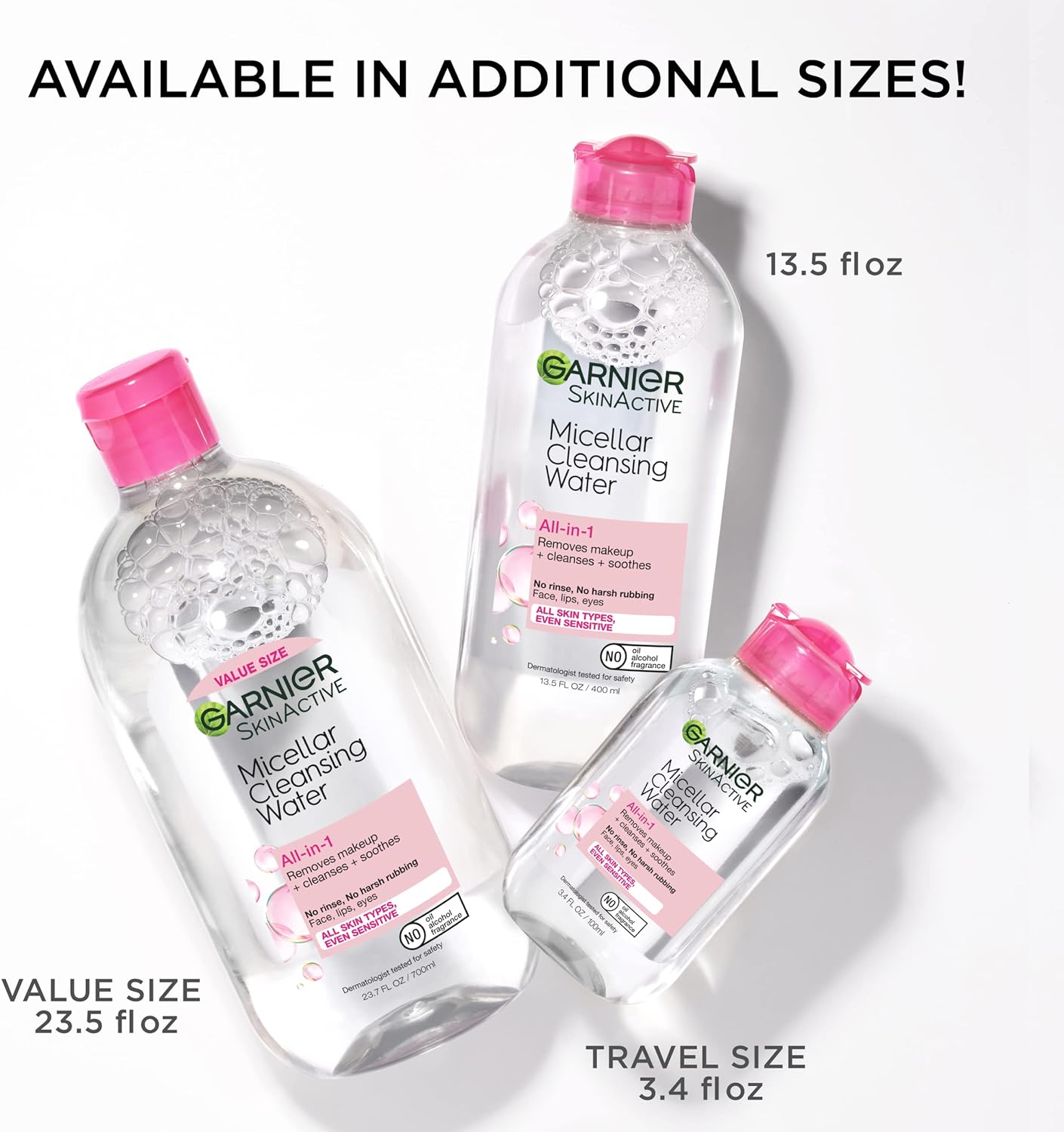 Garnier SkinActive Micellar Cleansing Water, All-in-1 Makeup Remover and Facial Cleanser, For All Skin Types, 3.4 fl oz