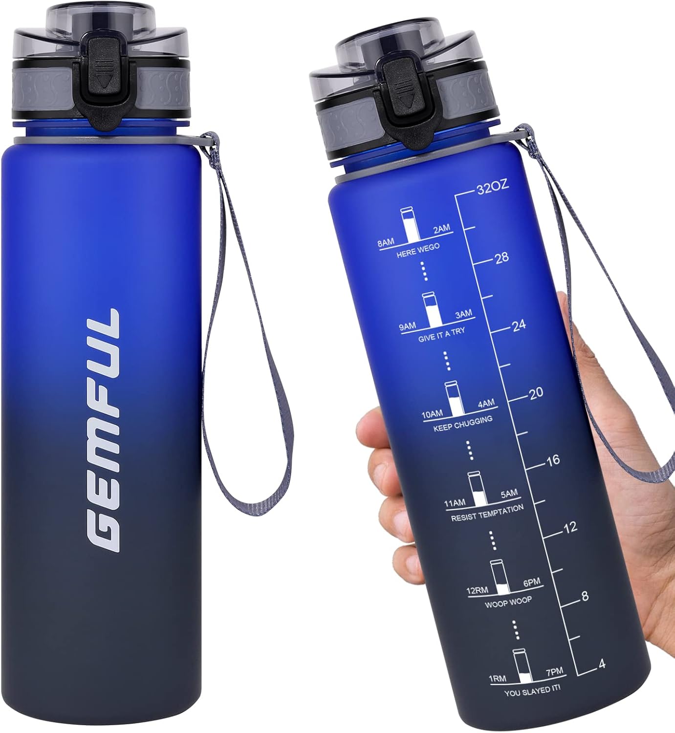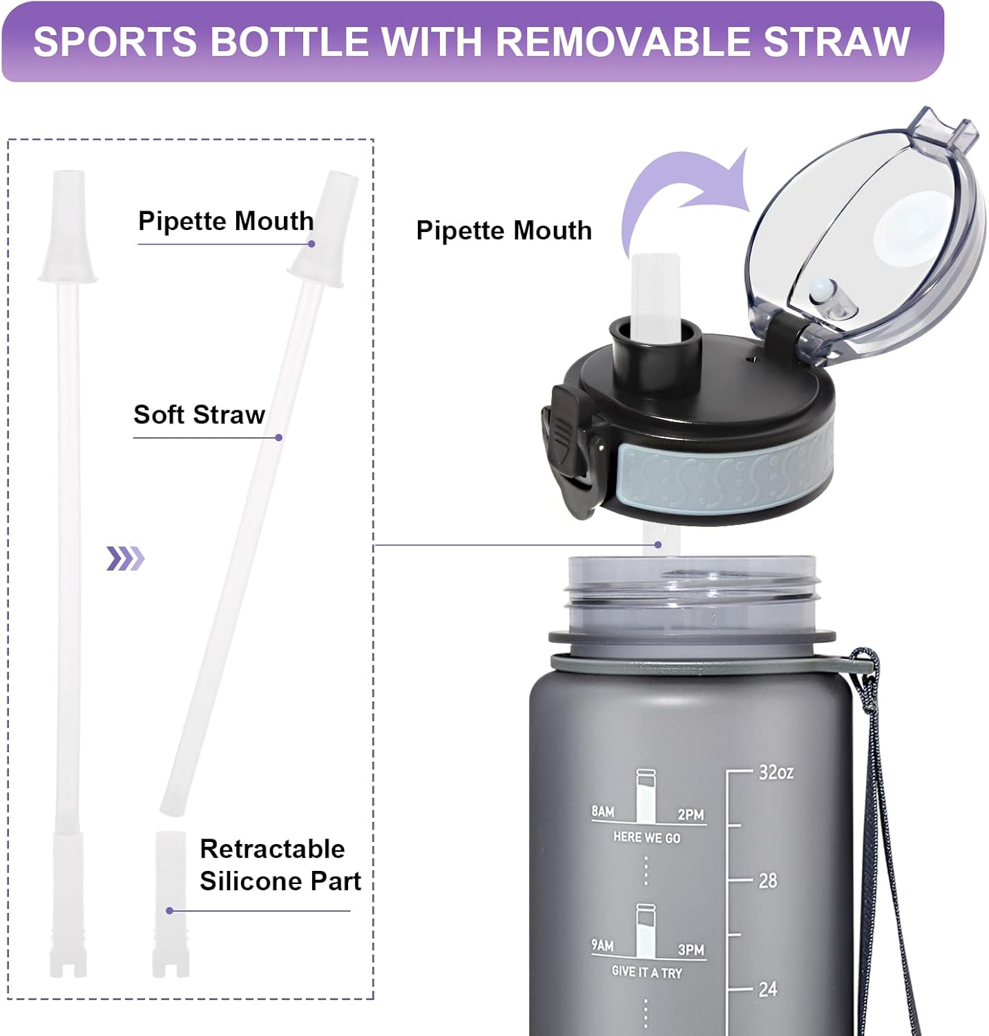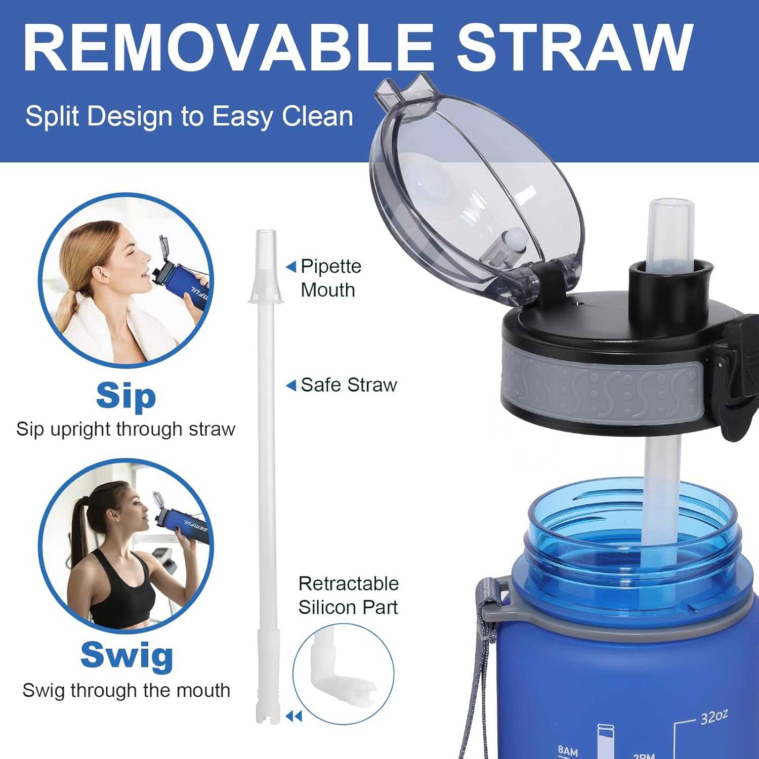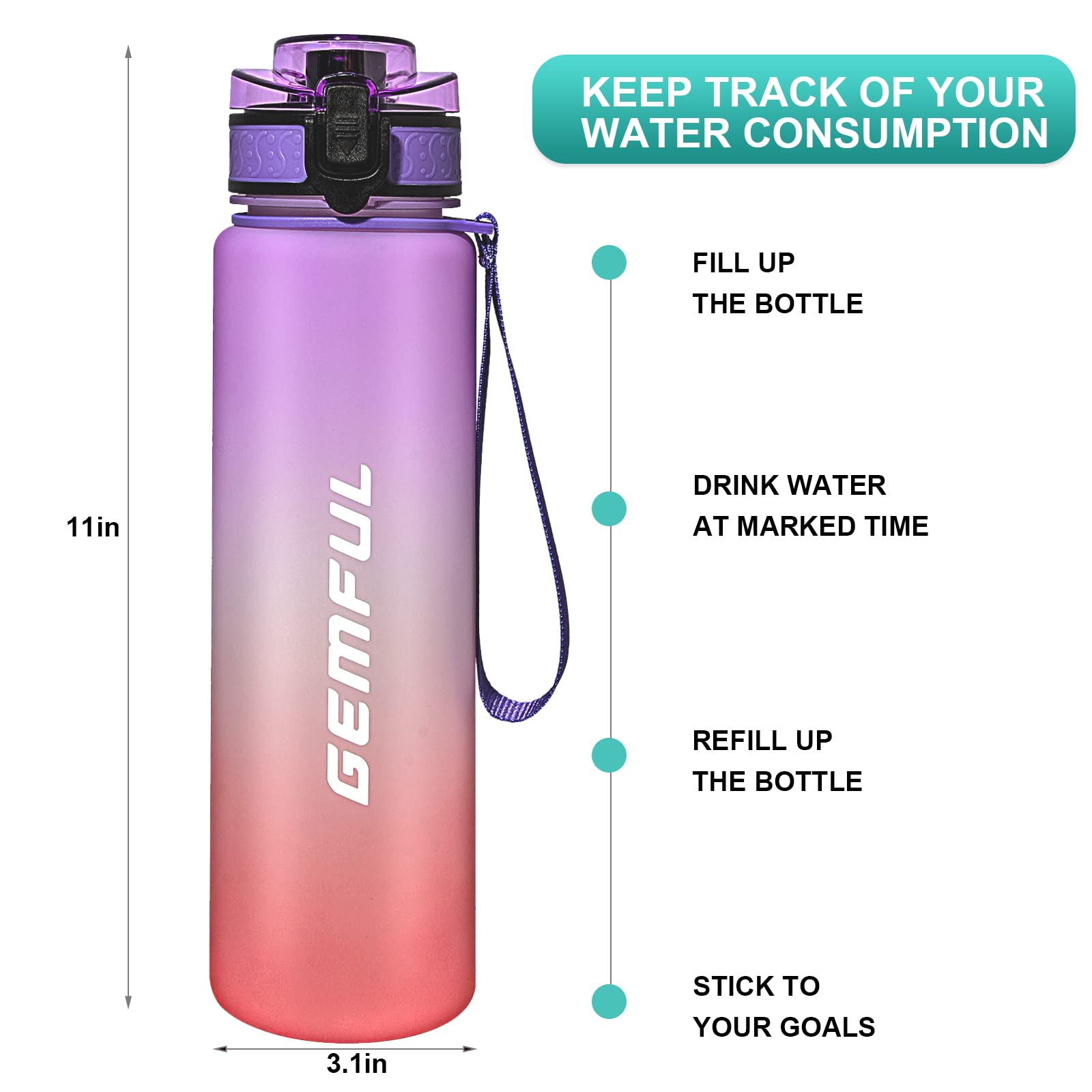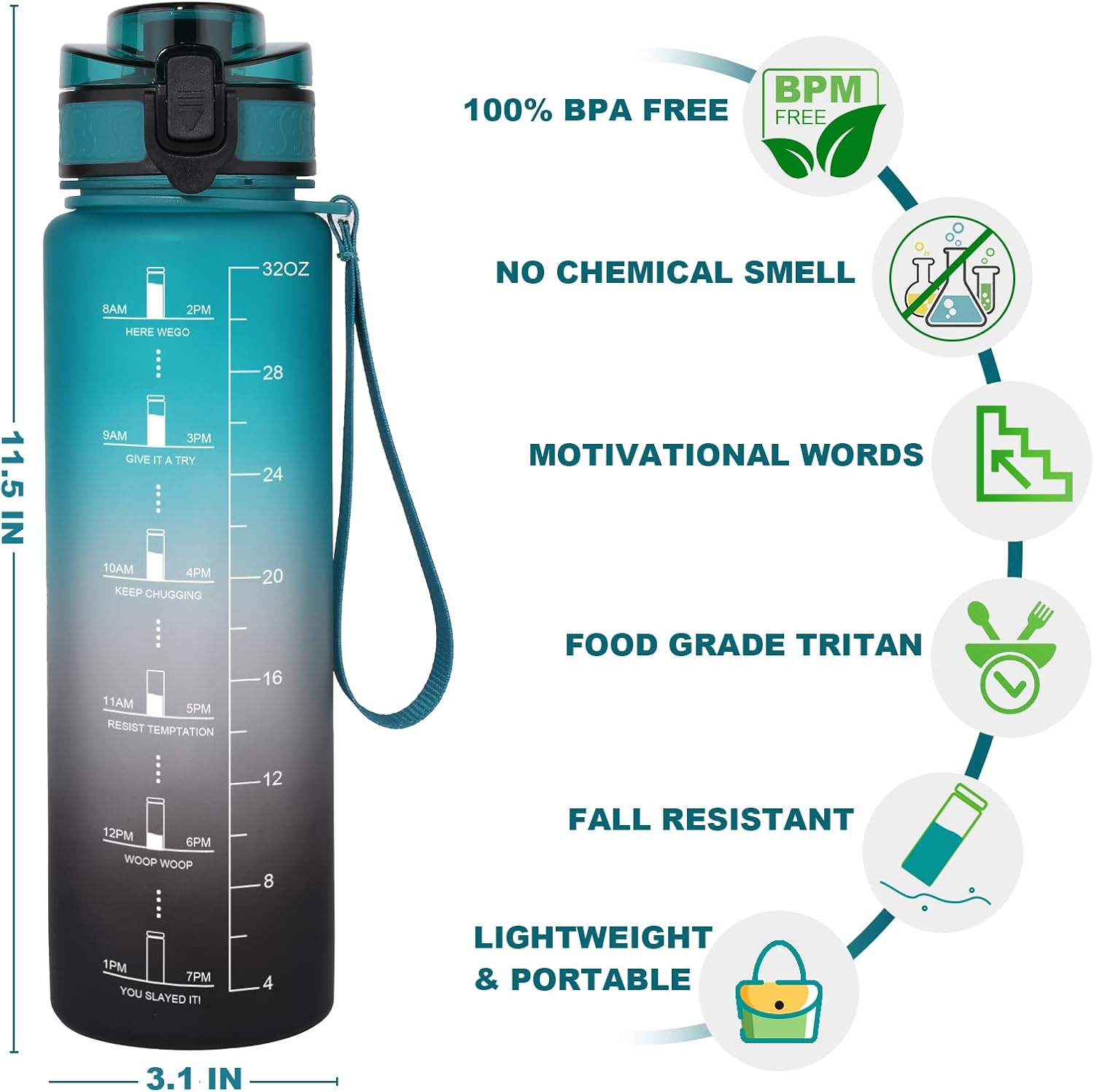 - INNOVATIVE WATER BOTTLES WITH TIMES TO DRINK - With unique inspirational quote and time markers on it,this water bottle is great for measuring your daily intake of water,reminding you stay hydrated and drink enough water throughout the day.A must have for any fitness goals including weight loss appetite control and overall health
