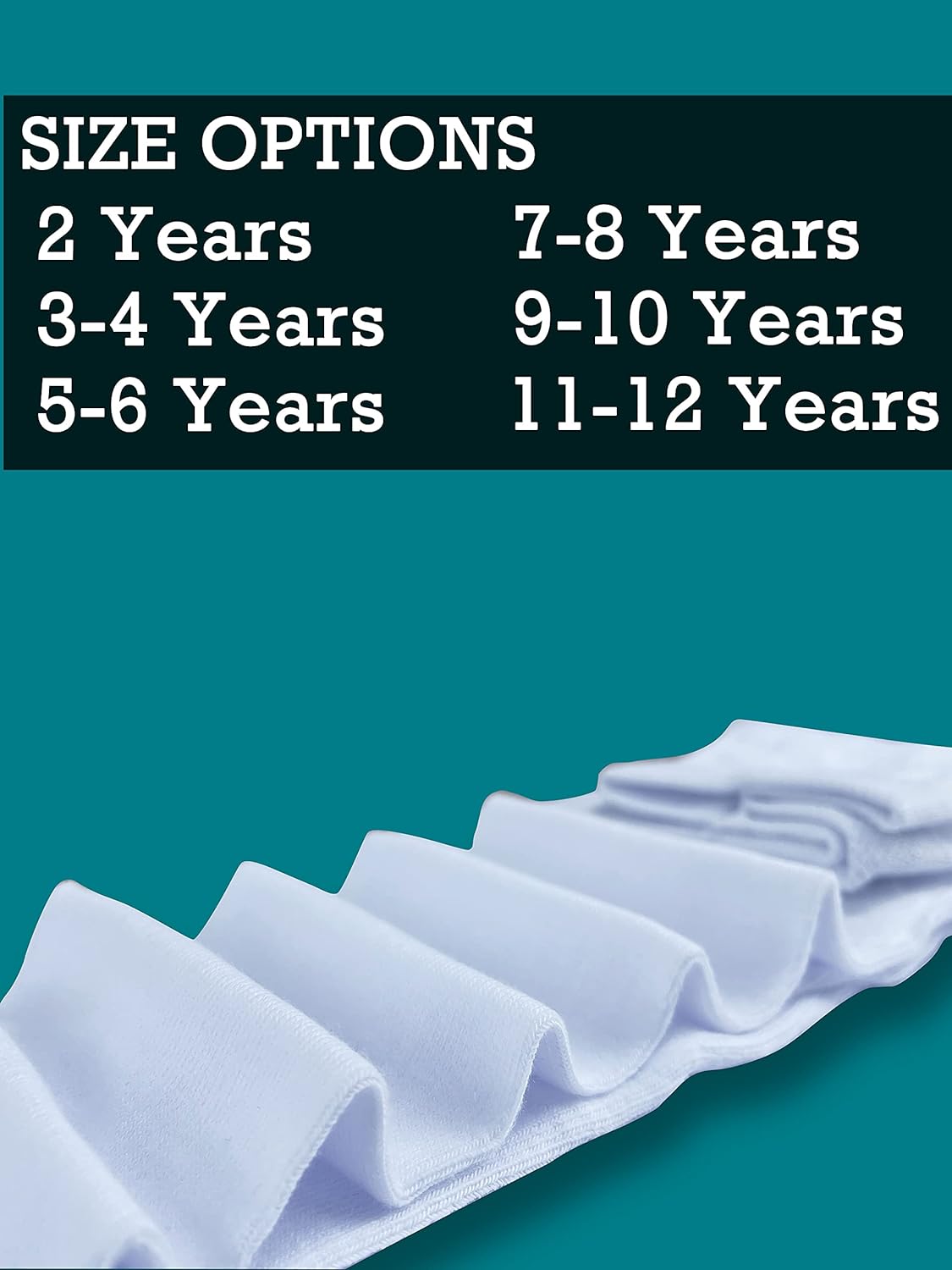 - SIZE OPTIONS: 2 Years, 3-4 Years, 5-6 Years, 7-8 Years, 9-10 Years, 11-12 Years.