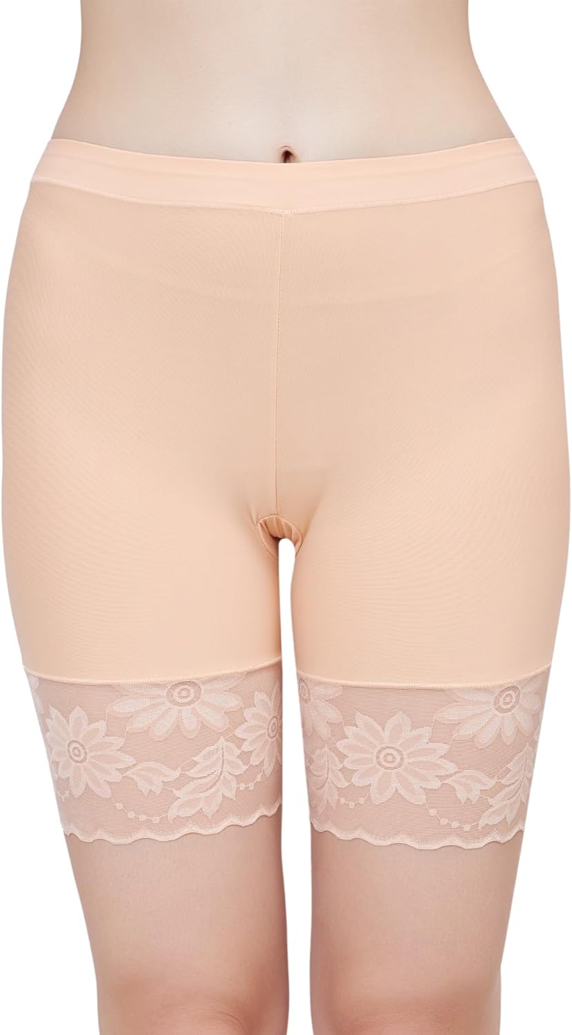 - Anti-Chafing & Thigh-Slimming: Our lace-trimmed slip shorts extend to mid-thigh, offering a slimming effect while preventing thigh chafing. Ideal for wearing under dresses and skirts, these shorts ensure you stay comfortable and confident in slim-fitting outfits.