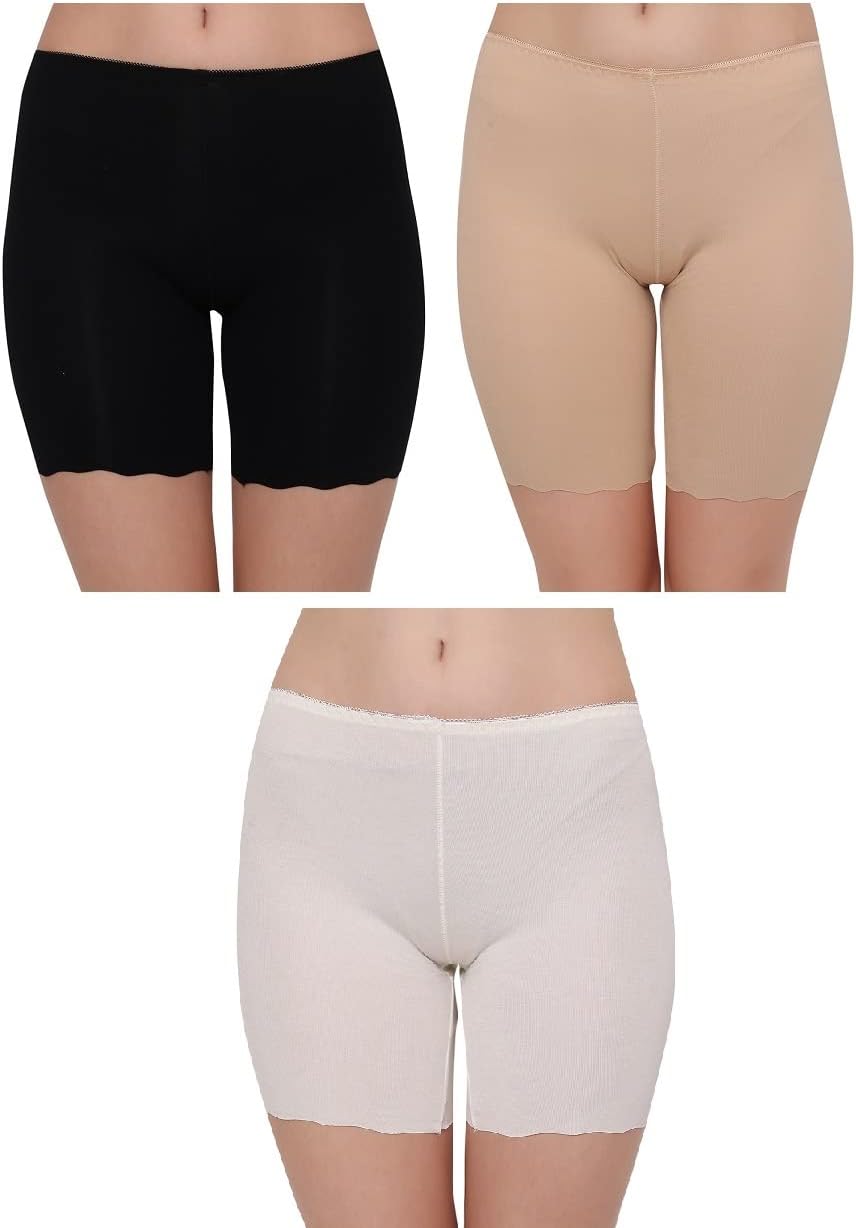 GLAMROOT Women's Cotton Seamless Cycling Shorts/Under Skirt Shorts, (Pack Of 3) Size M to XL