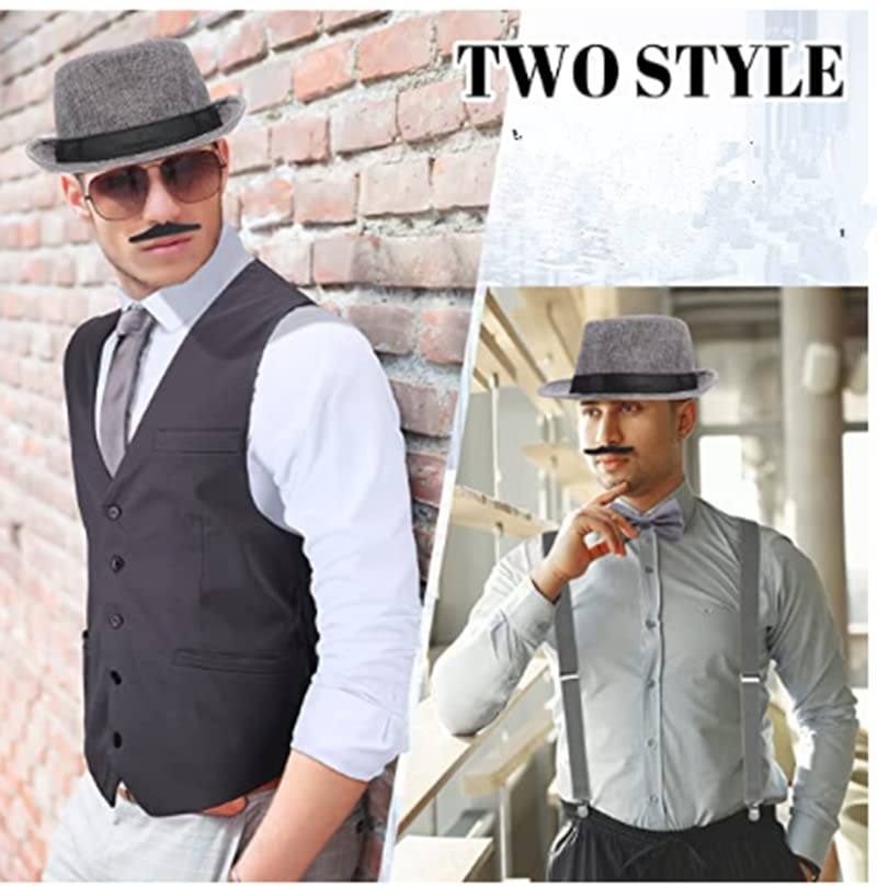 - Each 1920s mens accessories set includes: 1*Mens Panama Hat, 1*Y-Back Elastic Suspenders, 1*Pre Tied Bowtie, 6*false beards, 1*Vintage Pocket Watch. What you see is what you get.