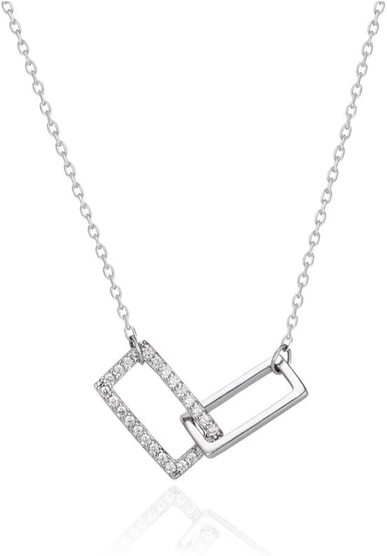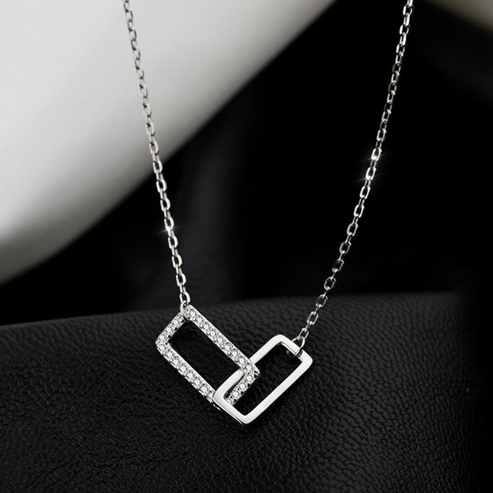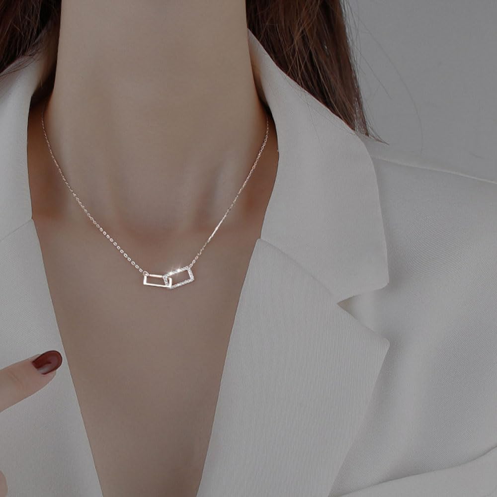Goodern Personalized Necklaces for Women,Creative Square Pendant Necklace Fashion Geometric Rectangle Necklace Vintage Hollow Double Buckle Square Choker Necklace Jewelry Gifts for Girl-Silver