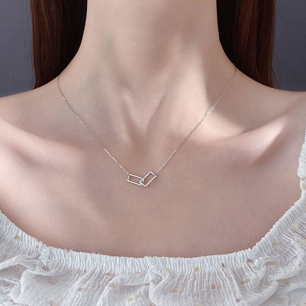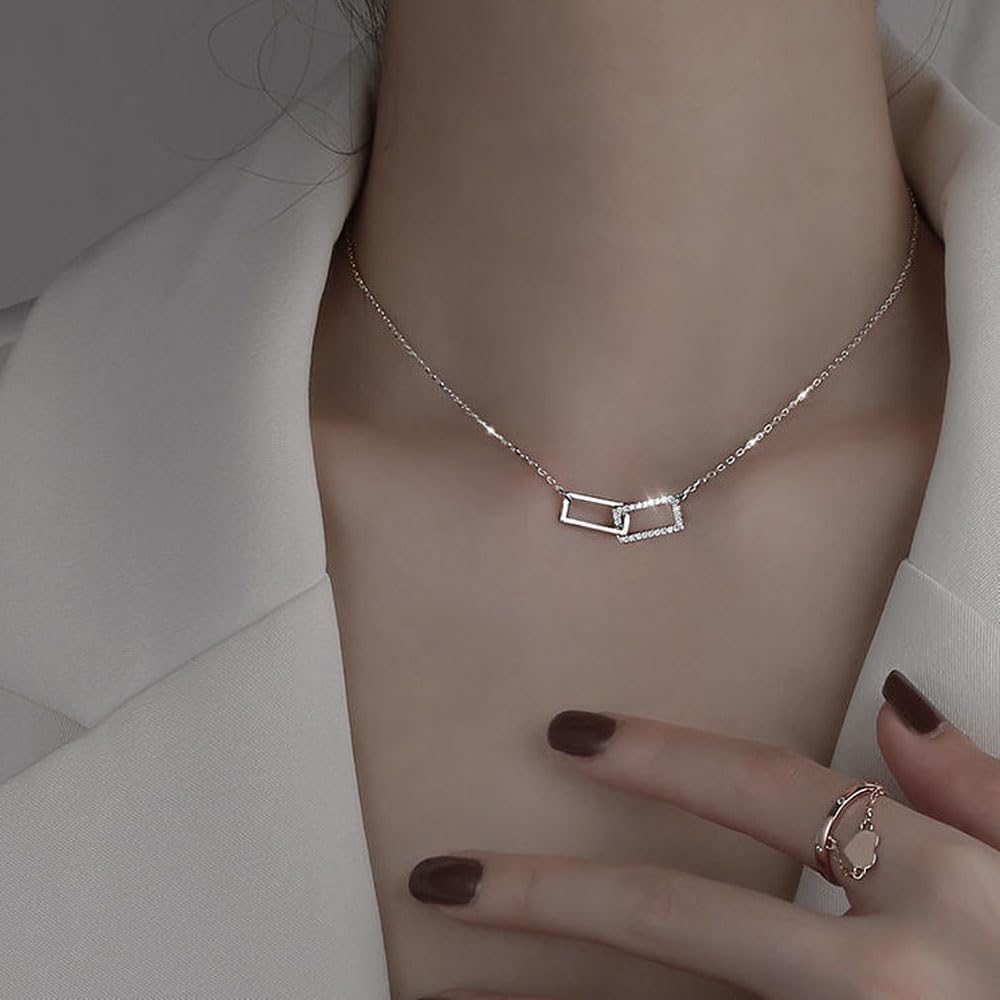 - Perfect Size: The Necklace Is Easy To Put On And Off, Fits Most Neck Sizes,The Necklace For A Stylish And Generous Look.This Double buckle Square necklace is lightweight and comfortable to wear.
