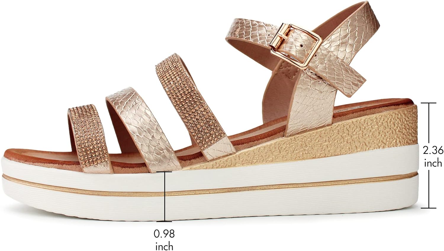 • Lightweight and Lifted:Heel height: 2.36", platform height: 0.98".We love platforms to give us a boost in height and these are wearable all day long