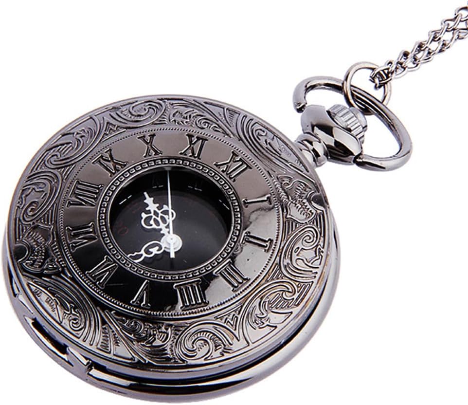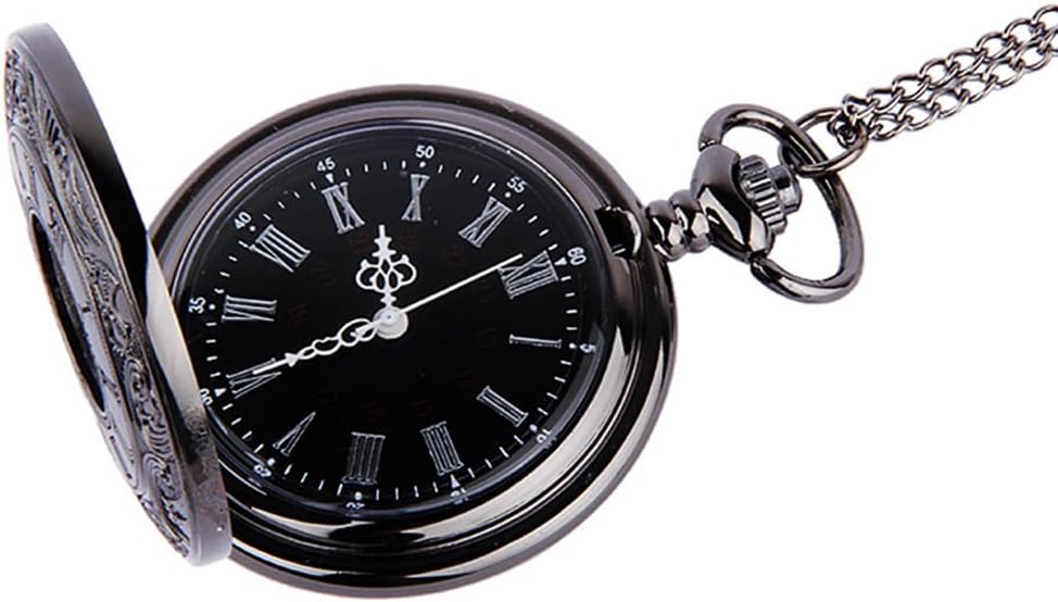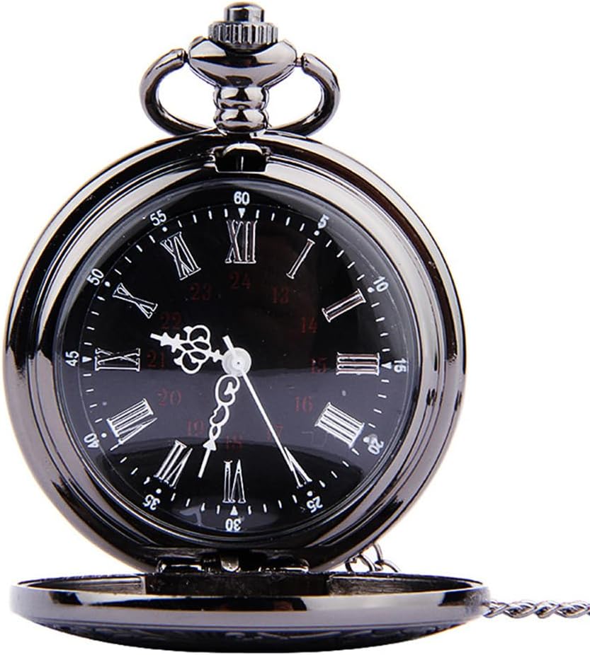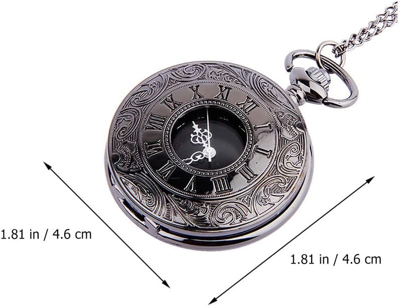 DescriptionRound Pocket Watch Retro Classic Dual Display Roman Arabic Numerals Dial Watch Flip Pocket Watch SteampunkFeature- Material: Metal.- Color: Black.- Size: Abpprox. 44.6 x 4.6 x 4.6 cm 17.6 x 1.8 x 1.8 inch.Package Including1 x pocket watch