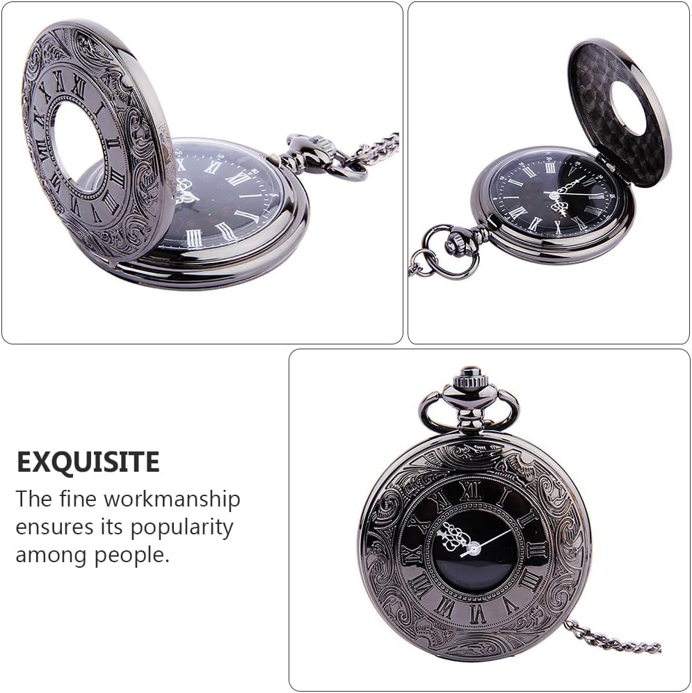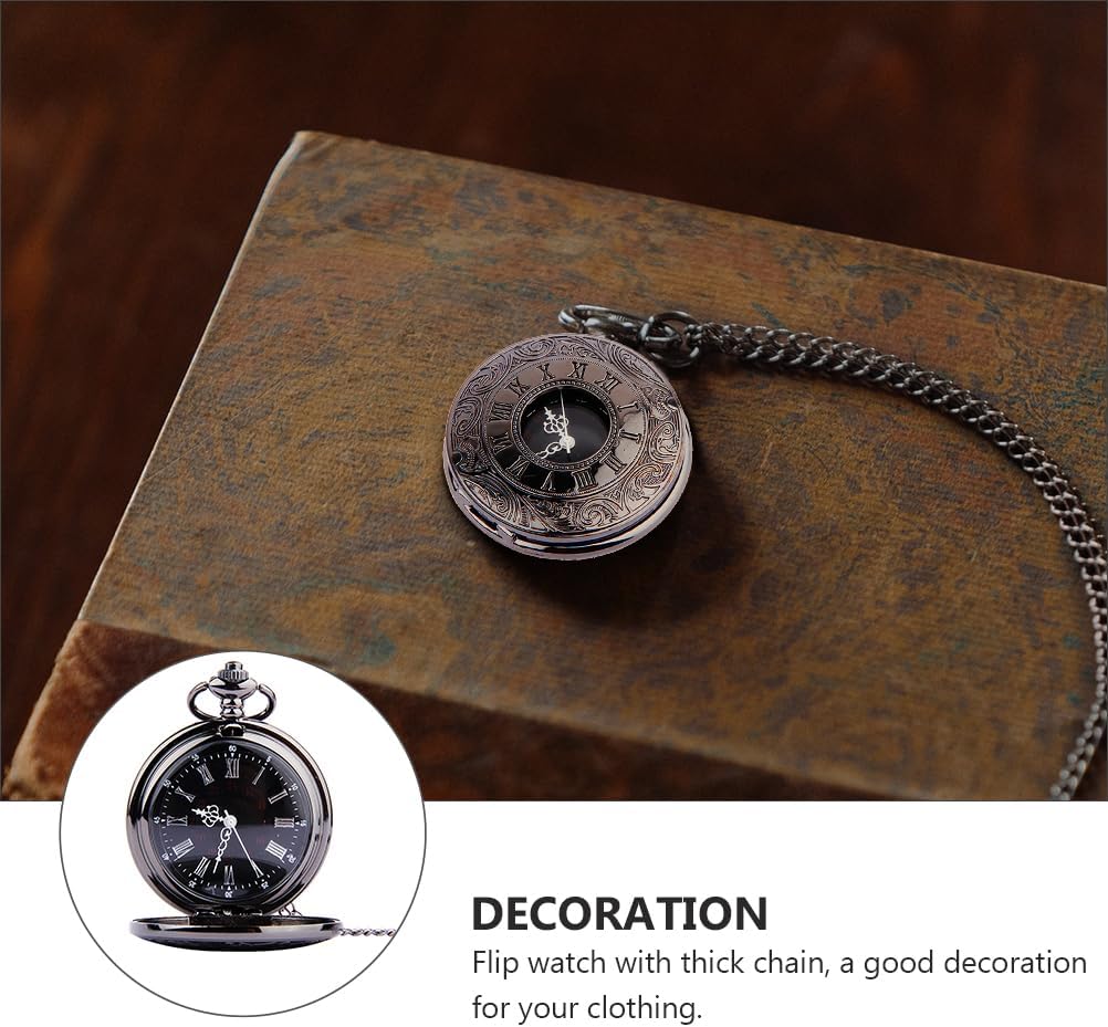 Hemobllo Flip Pocket Watch Vintage Roman Pocket Watch Classic Arabic Numerals Watch Pendant for Father Day Birthday Gift (Thin Chain)