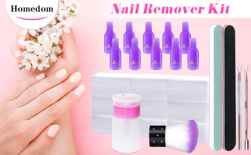 Homedom Nail Polish Remover Tools Set, 17Pcs Gel Nail Polish Remover Kit with 450 Wipe Cotton Pads, 10 Nail Clips, 2 Nail File, Cuticle Pusher and Scraper, Nail Brush, 160ml Nail Polish Remover Bottle