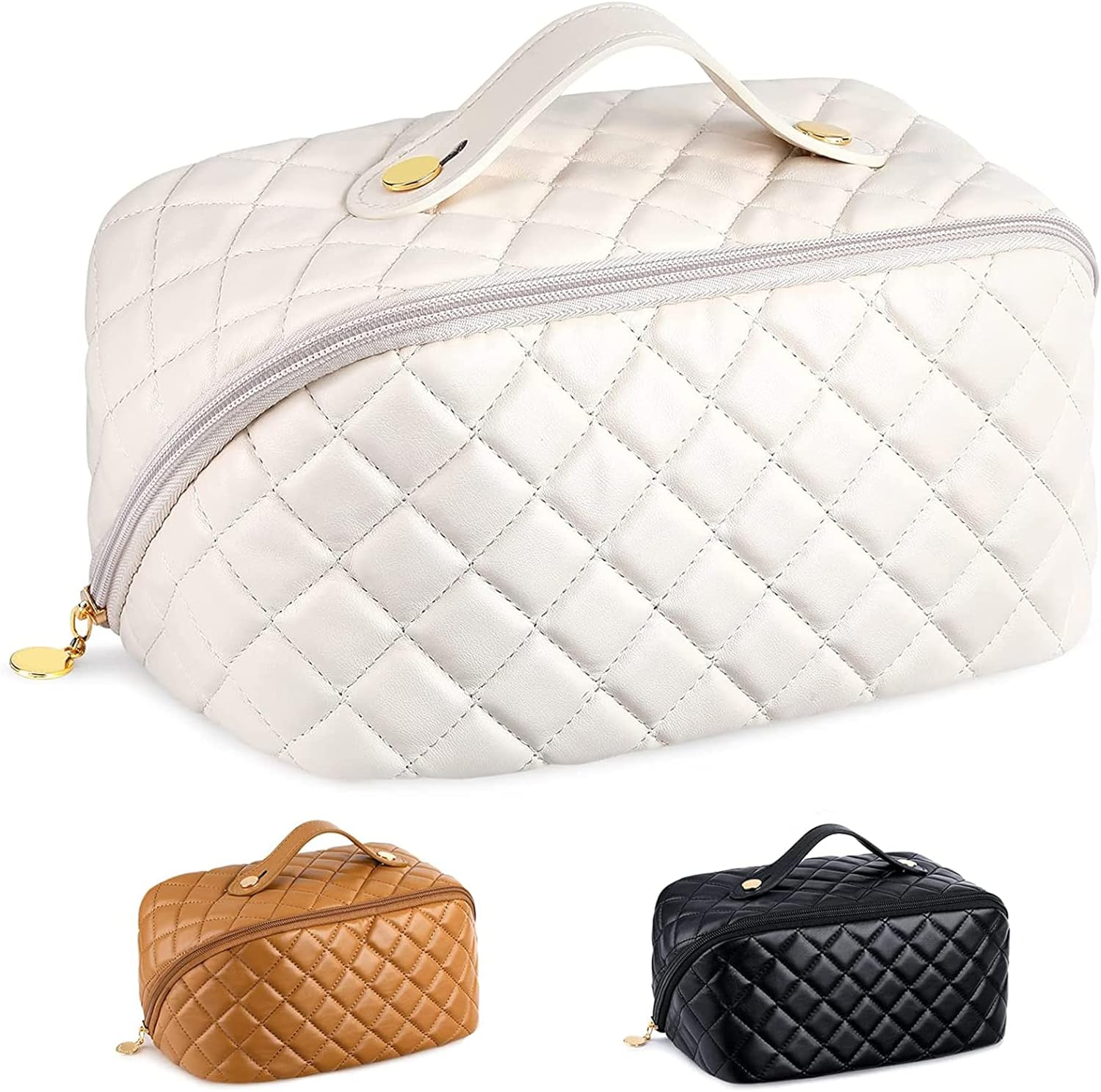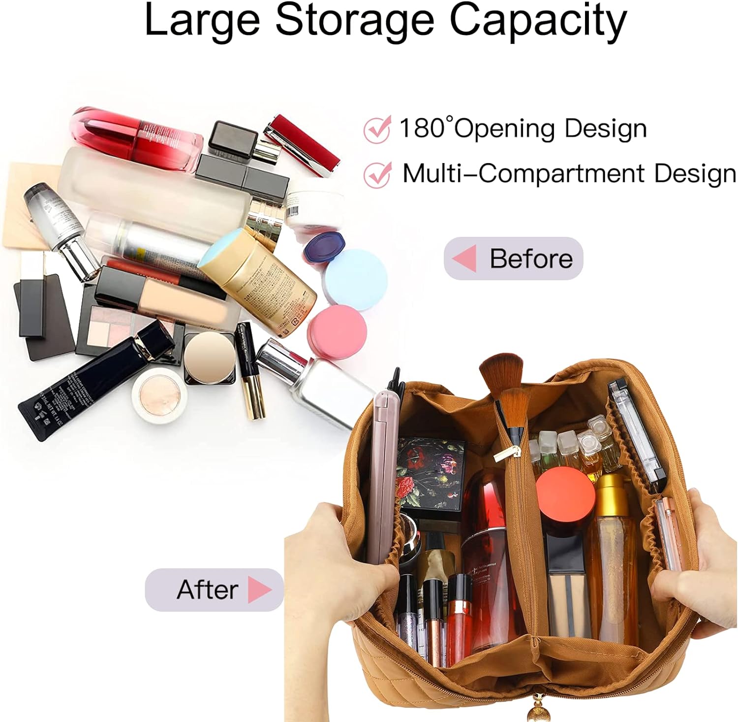 • [High Quality & Perfect Gift]: The traveling makeup bag Holds shape without collapsing. With better material and construction, we make the top and sides hold shapes, keeping items from slide out when it is open,every detail is delicately made. Also a perfect gift for relatives and friends.