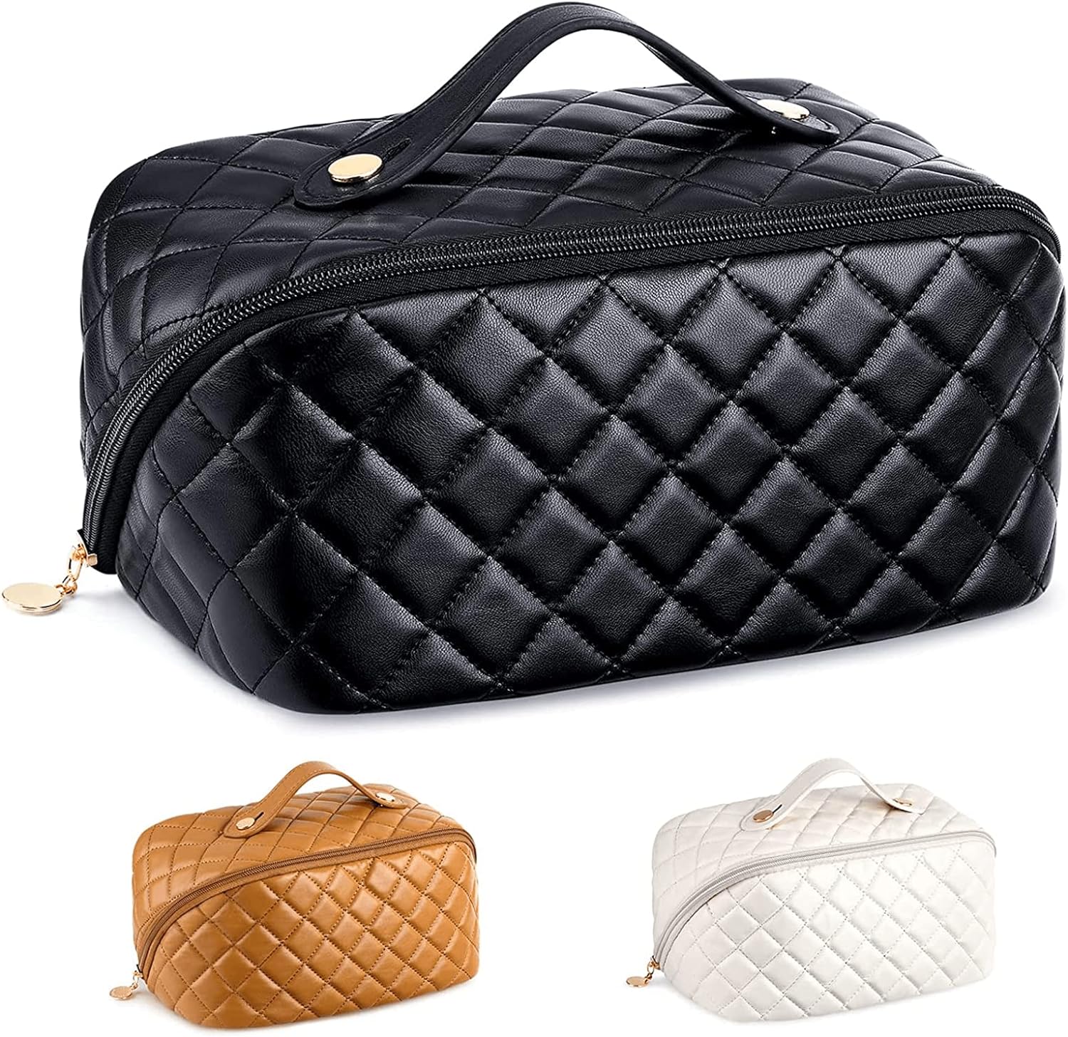 • [Large Open Mouth & Lay-flat Design]: ikeoat makeup Bag allows you to quickly find the items you want. Easy large zipper open and close access to your essentials,bringing a better makeup experience and staying away from the mess.Smooth metal zippers, new upgraded handles, premium fabrics, and heavy-duty design give this cosmetic bag a premium, elegant look and feel.