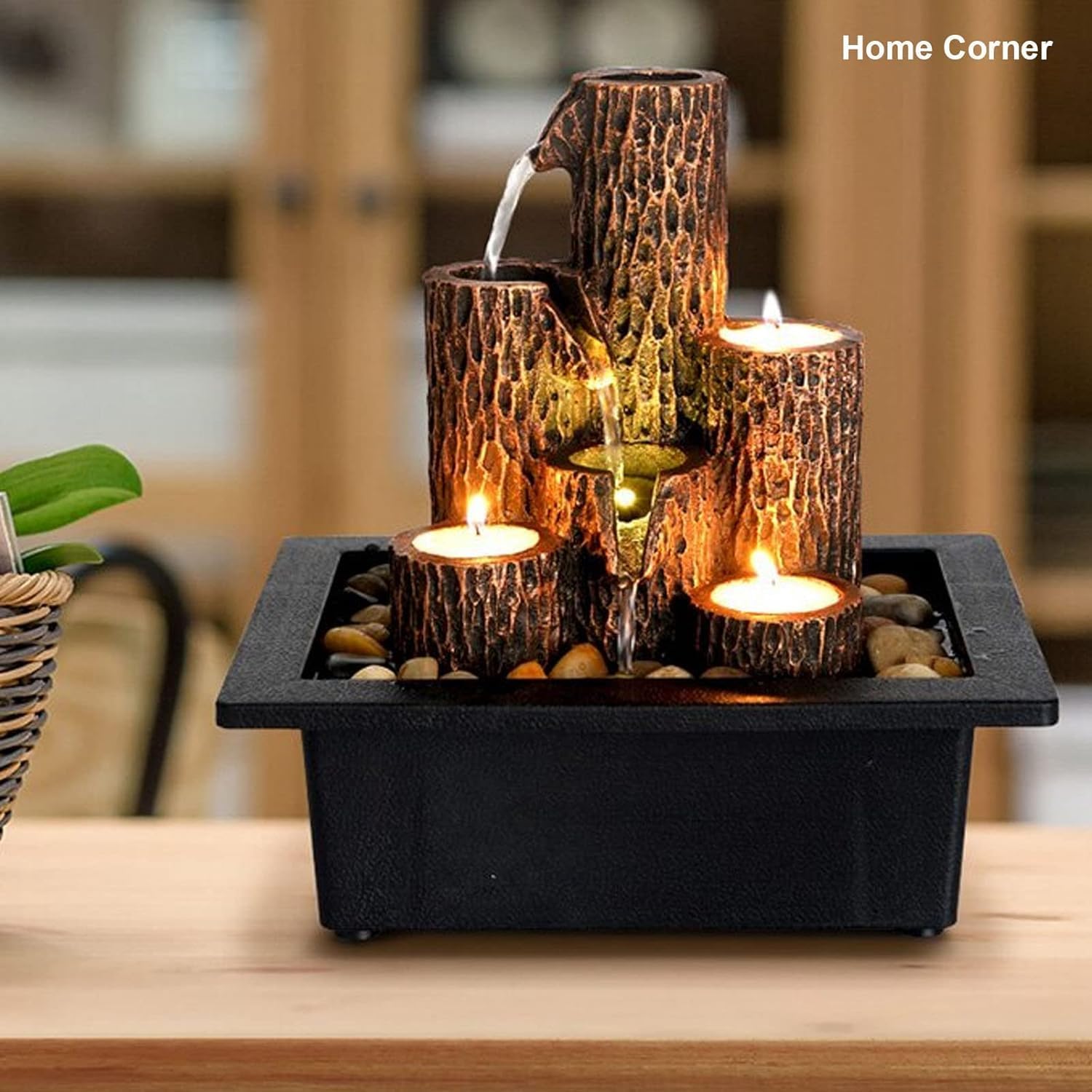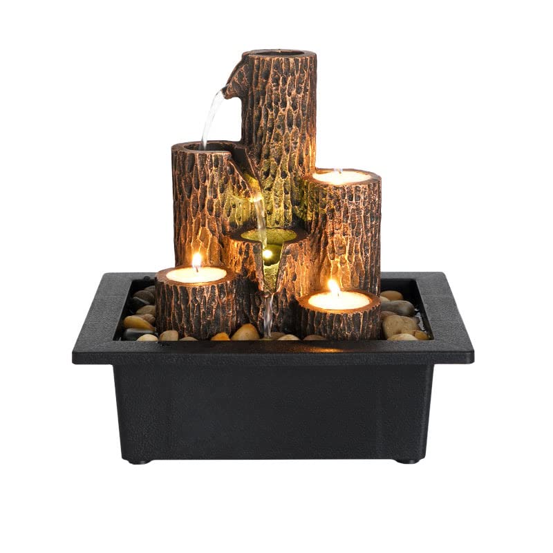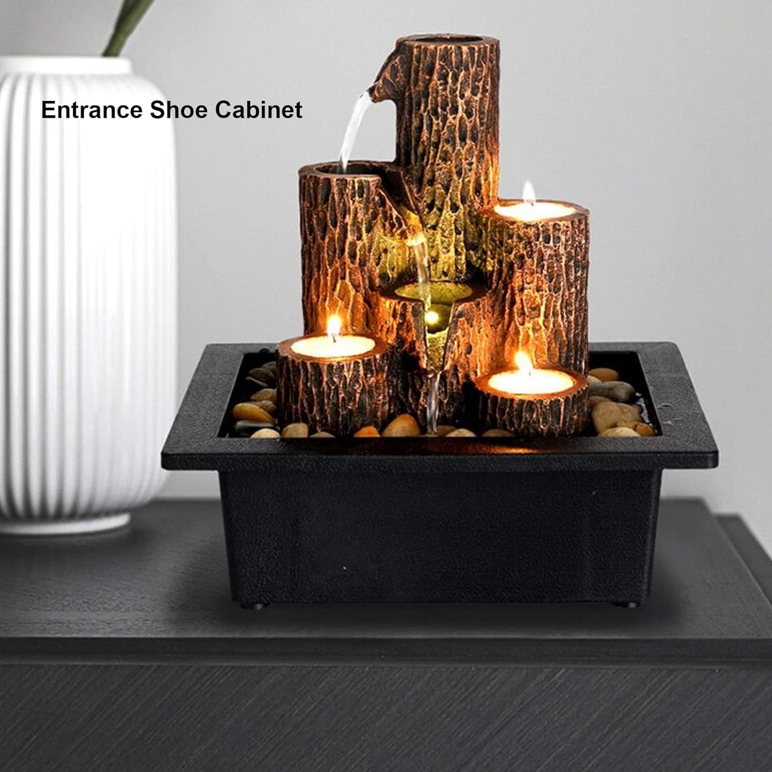 Indoor Tabletop Fountain Waterfall Feature with Candle Holder for Home and Office Decor - Relaxing Water Feature for Feng Shui, Zen Meditation, Desktop Relaxation