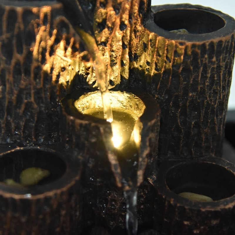 【Integrated LED Light】Enhancing the peaceful atmosphere, the fountain is illuminated by soft LED lighting, casting a calming glow and further adding to the soothing ambiance. The water cascades down layers resembling natural stones, creating a tranquil environment. Elevate the style and serenity of your home or office with this elegant indoor water feature.