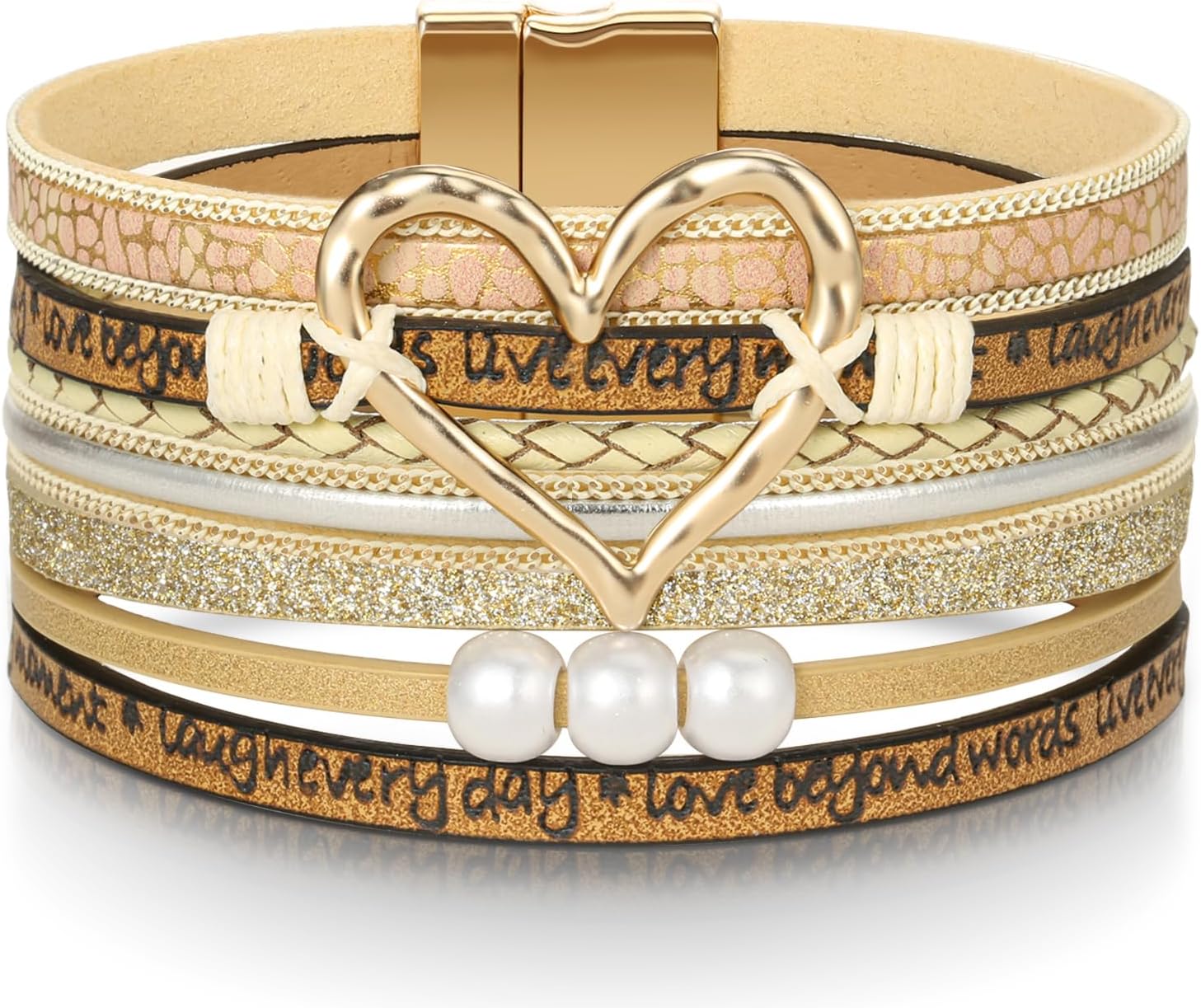 • 💥Perfect Quality❤️ DESIMTION 's Family Inspirational Motivational Wrap layered Boho Bracelet,Great quality to last a lifetime, will not turn your skin green or red or itchy, It will not break on you.Everything is a Work of art, Shines Noble.Boho Wrap Around Wide hippie bohemian Multilayer Wrist Wide Buckle Bracelets jewelry for women Teenager Girls Gifts Mothers Day