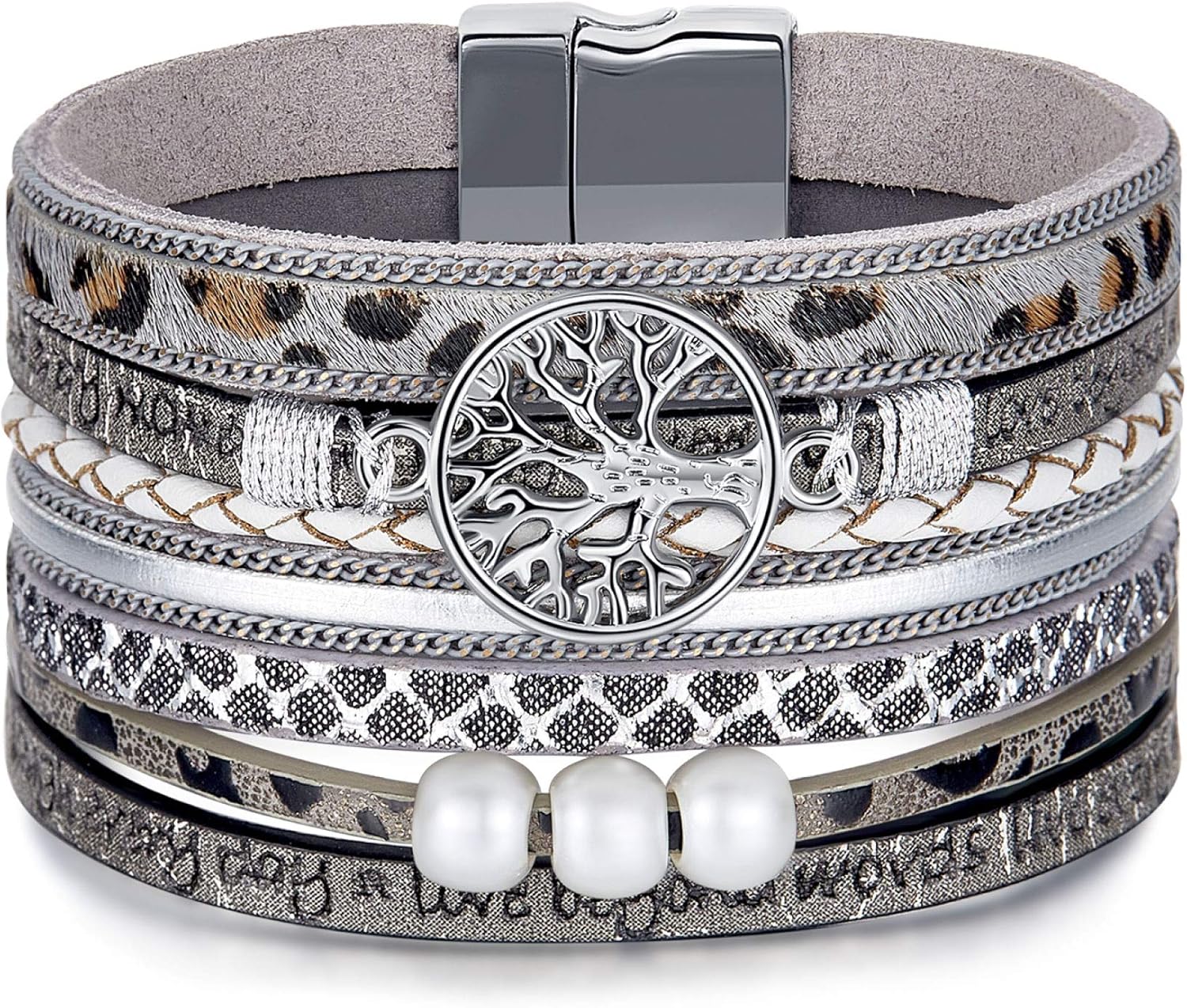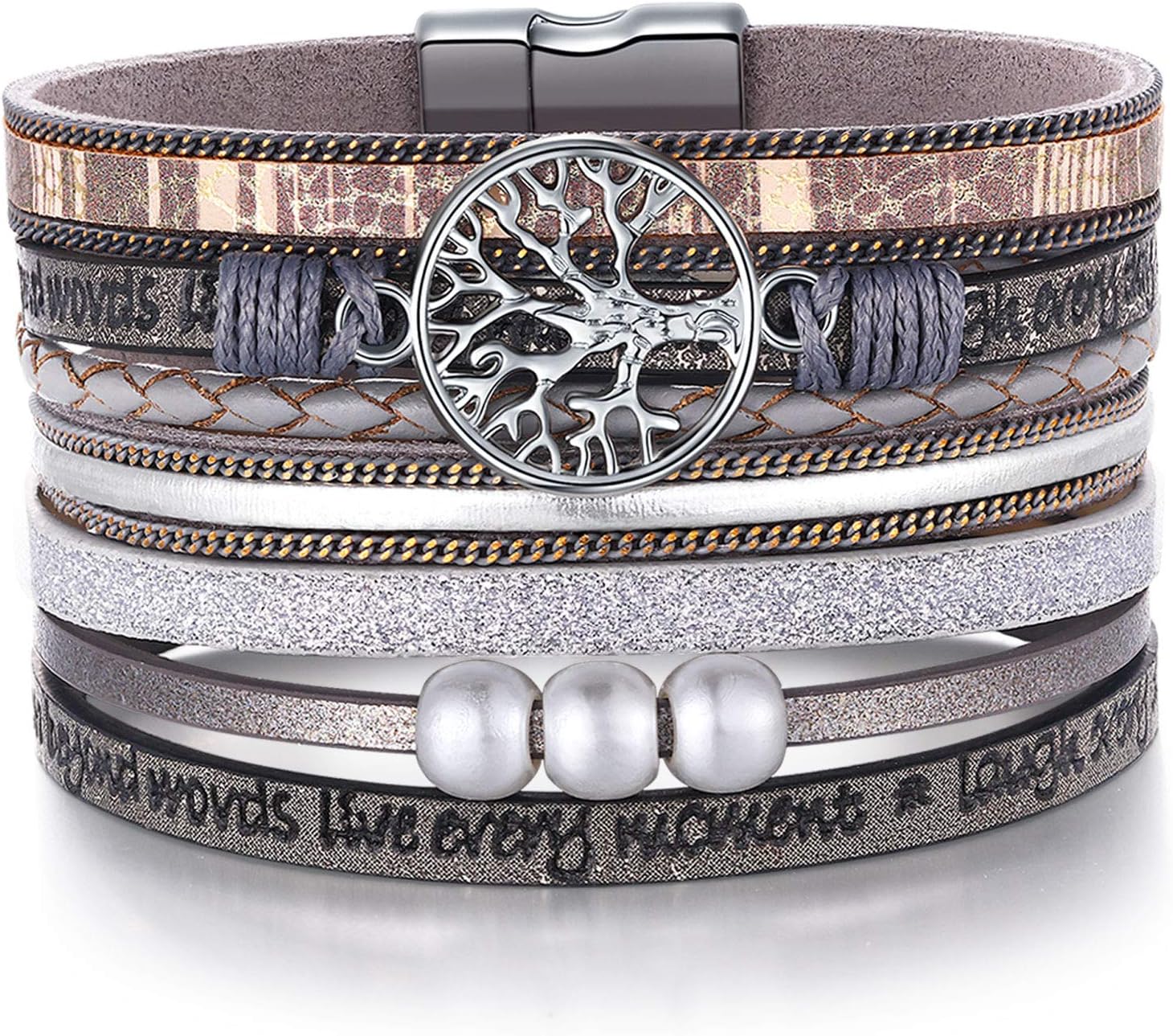 Inspirational Tree of Life Leather Bracelets for Women,Mothers Day Bir – BUYO
