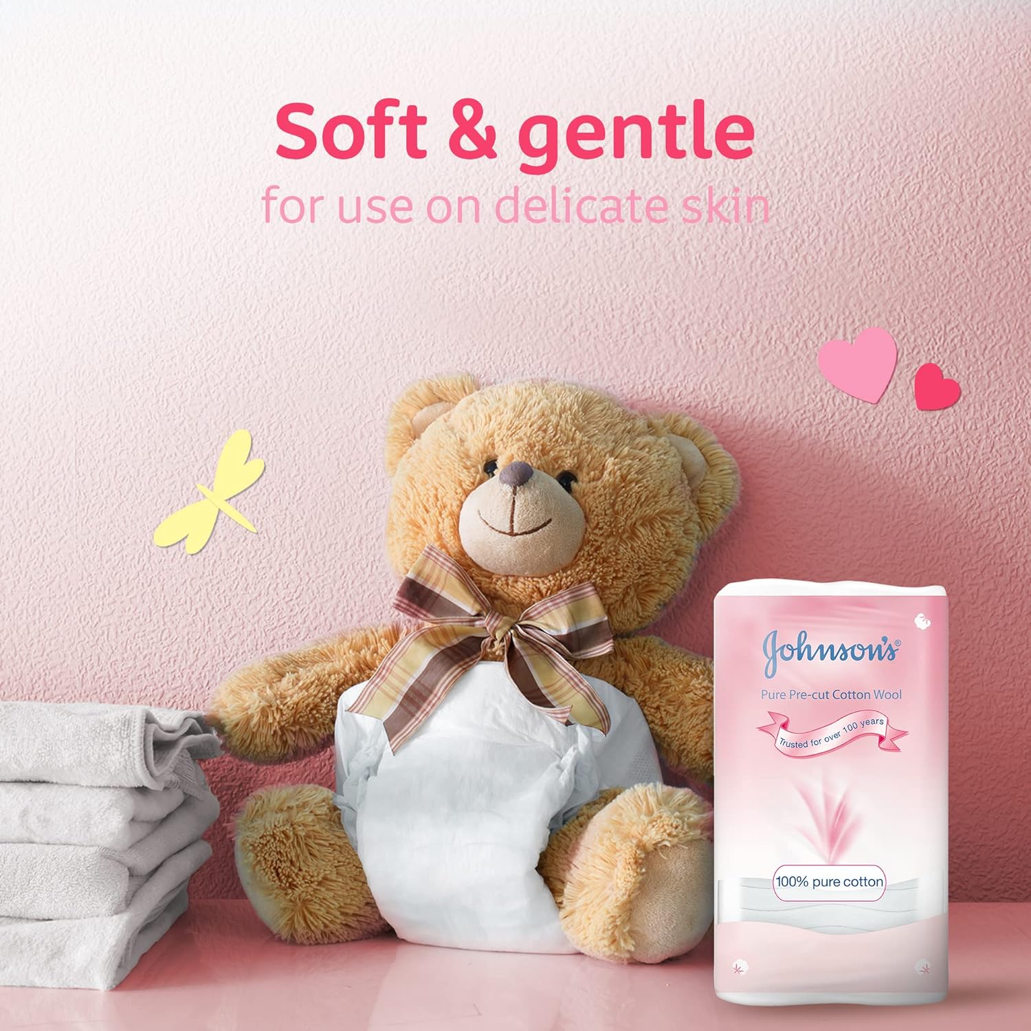 Product Description When a baby is born, their skin is at its most delicate. That’s why we perfected our formulas over 125 years so they’re now even more gentle for all. JOHNSON’S Baby Cotton Wool are soft & gentle cotton wool pads specially designed for cleaning those delicate areas of the skin. Naturally absorbent with 100% pure cotton, JOHNSON’S Baby Cotton Wool make baby care and safer and easier. These cotton pads maintain their shape and do not leave unwanted cotton fibres on your baby’s skin. They are great for kids and adults too. JOHNSON’S baby care products. Trusted by moms for over 125 years! Features & Benefits: • Naturally absorbent with 100% pure cotton tips • Soft & gentle for use on delicate skin • Maintain shape without leaving unwanted fibres on skin • Perfect for baby. Perfect for you. About the brand: At JOHNSON’s we never stop raising the bar when it comes to what’s best for your baby, we’ve conducted 90% of all-industry-led research focused on understanding healthy baby skin. That’s why we listened to parents from around the world and reformulated our products, inside and out, to set a new standard for gentle. All in all, we listened to 26,000 consumer voices to help shape and refine our products, proposition, and packaging design. JOHNSON’S products are naturally-derived, free from parabens, sulphates, dyes & phthalates, PH balanced and hypoallergenic. The results reflect our fundamental mission: creating a world where every baby thrives. Our newly-reformulated baby products don’t just cleanse and moisturize, they turn caring moments at every age and stage into opportunities to strengthen a baby’s bond with their parents. JOHNSON’s choose gentle! How to use: Use with water or gentle baby cleanser to help cleanse baby’s skin. Safety warnings: Flammable. To avoid danger of suffocation, keep plastic bags away from children and pets. Keep out of reach of children. For external use only. This product is manufactured using natural fibres & may contain small pieces of cotton seed, husk or stalk. Ingredients: 100% pure cotton brand_description At JOHNSON’s we never stop raising the bar when it comes to what’s best for your baby, we’ve conducted 90% of all-industry-led research focused on understanding healthy baby skin. That’s why we listened to parents from around the world and reformulated our products, inside and out, to set a new standard for gentle. All in all, we listened to 26,000 consumer voices to help shape and refine our products, proposition, and packaging design. JOHNSON’S products are naturally-derived, free from parabens, sulphates, dyes & phthalates, PH balanced and hypoallergenic. The results reflect our fundamental mission: creating a world where every baby thrives. Our newly-reformulated baby products don’t just cleanse and moisturize, they turn caring moments at every age and stage into opportunities to strengthen a baby’s bond with their parents. JOHNSON’s choose gentle!
