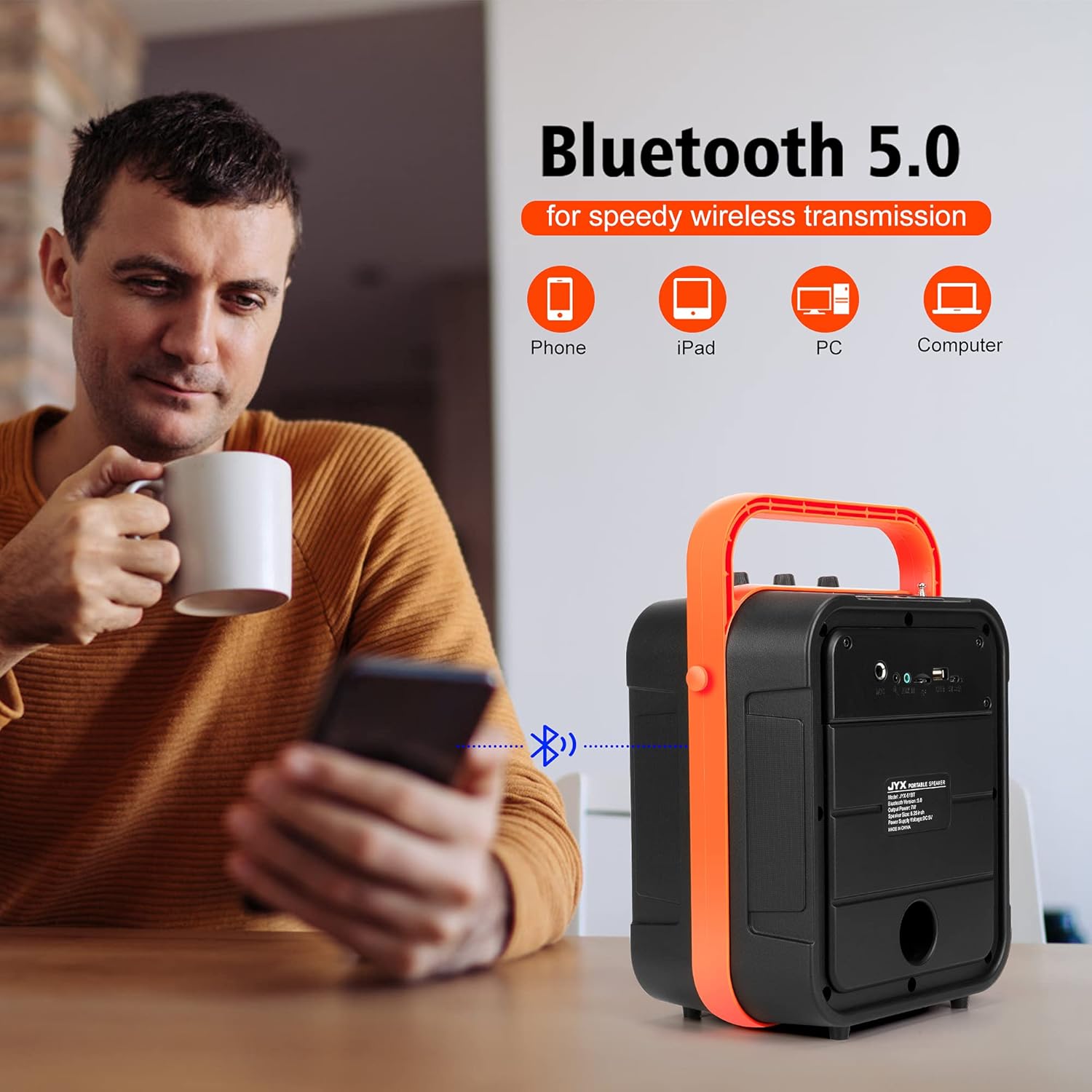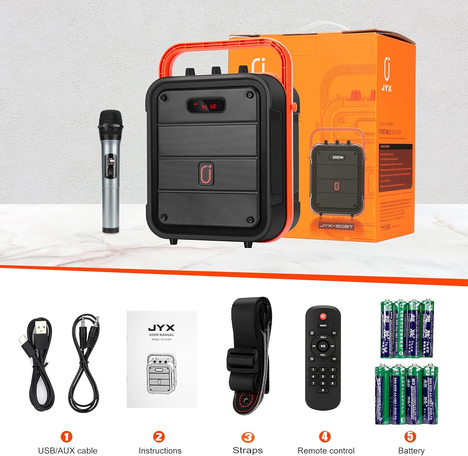 JYX Portable Karaoke Machine with Wireless Microphone, Bluetooth PA System with TWS, FM, REC, Remote Control, Supports TF Card/AUX/USB input, Ideal for Home Karaoke, Party, Meeting