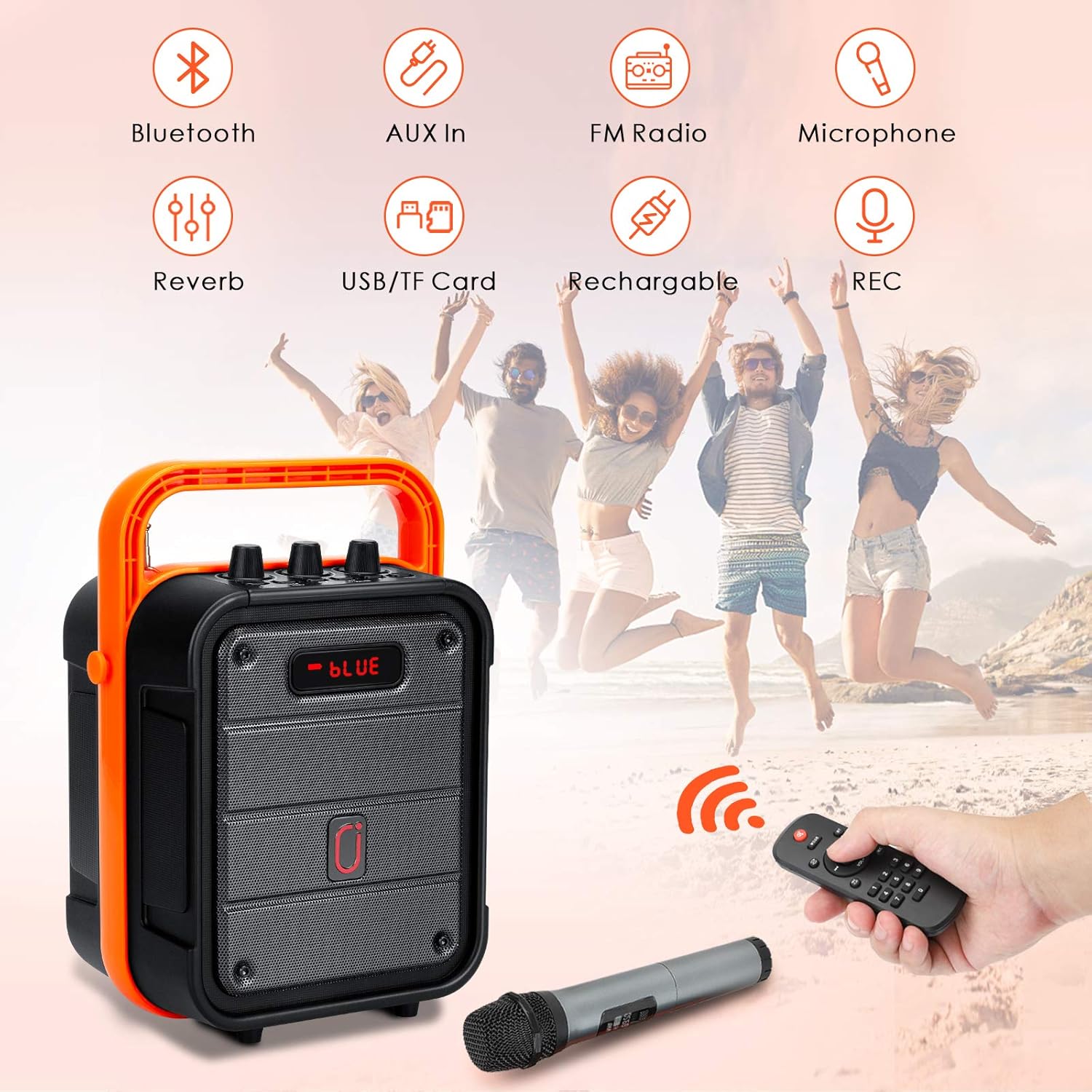 Multi-function Karaoke Machine : The product has a built in Bluetooth 5.0 provide the more stable transmission and longer distance, it also supports Micro TF card and Flash USB connectivity, Works with all of your favorite devices like iPhone, Android mobile phone, iPad, Tablet, PC, no cables needed , Great for churches, small parties, schools, class rooms, gyms, corporate meetings & presentaions