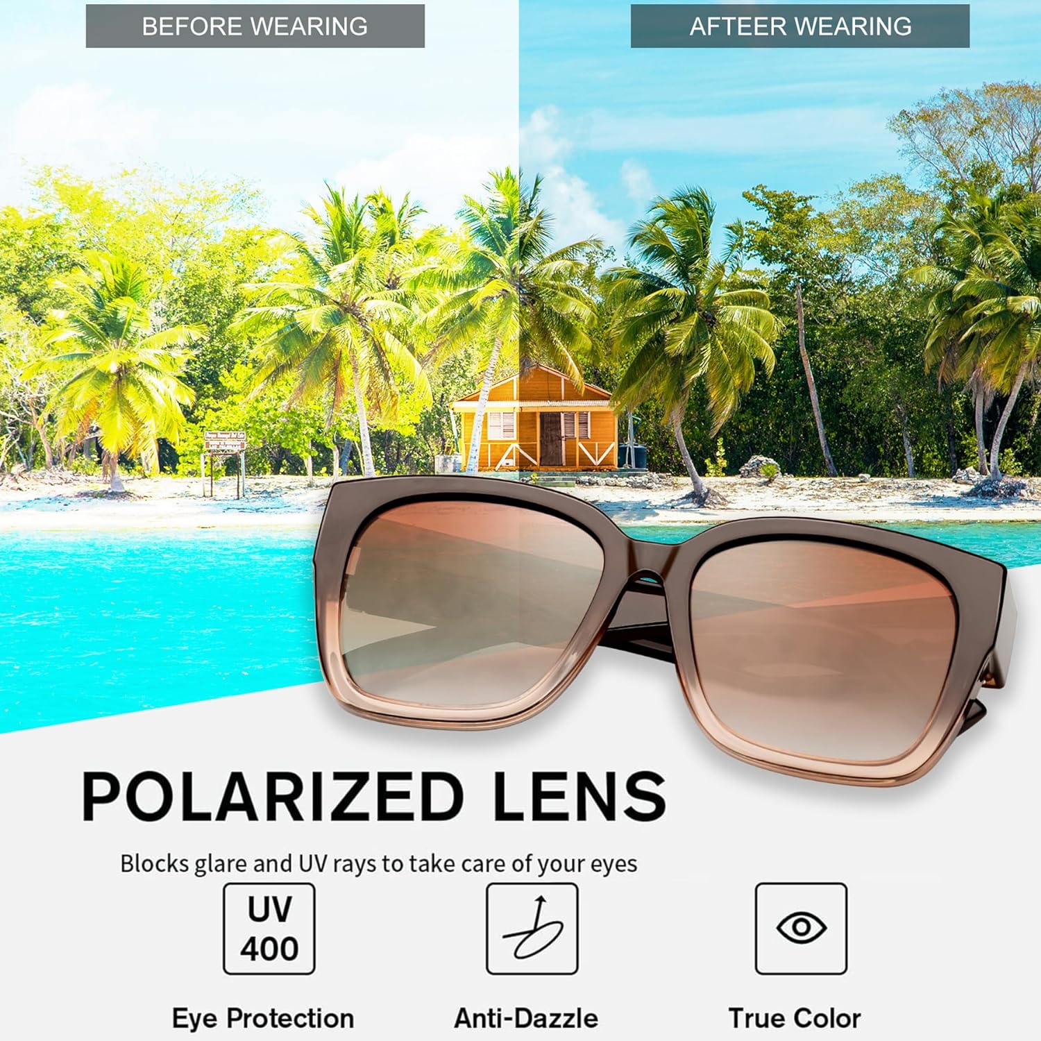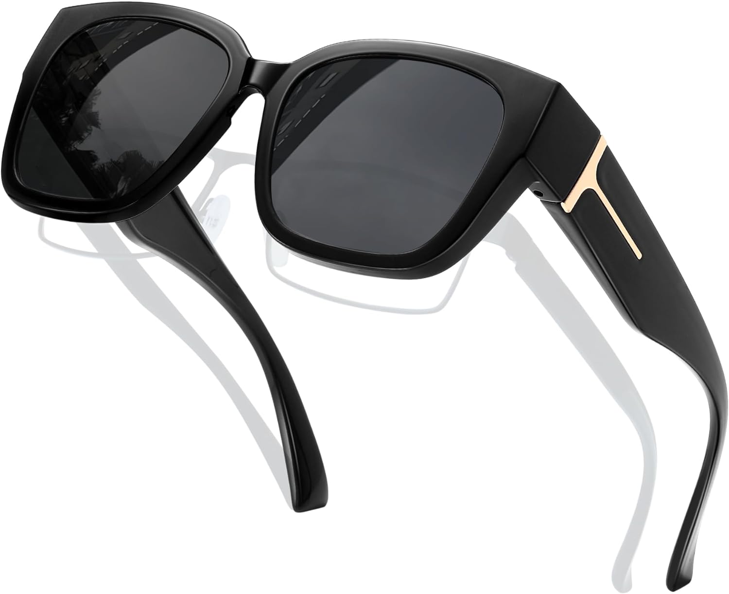 - 👓【100% UV400 PROTECTION POLARIZED LENSES】The polarized lens of sunglasses womens over glasses can 100% block ultraviolet rays such as UVA, UVB and UVC, reduce the intensity of light and filter glare. Restore true color, eliminate reflected light and scattered light, and make the scenery clear and soft. Oversized fit over sunglasses can suppress outdoor clutter light source interference, direct sunlight is not harsh, provide clearer vision, and can protect sensitive eyes.