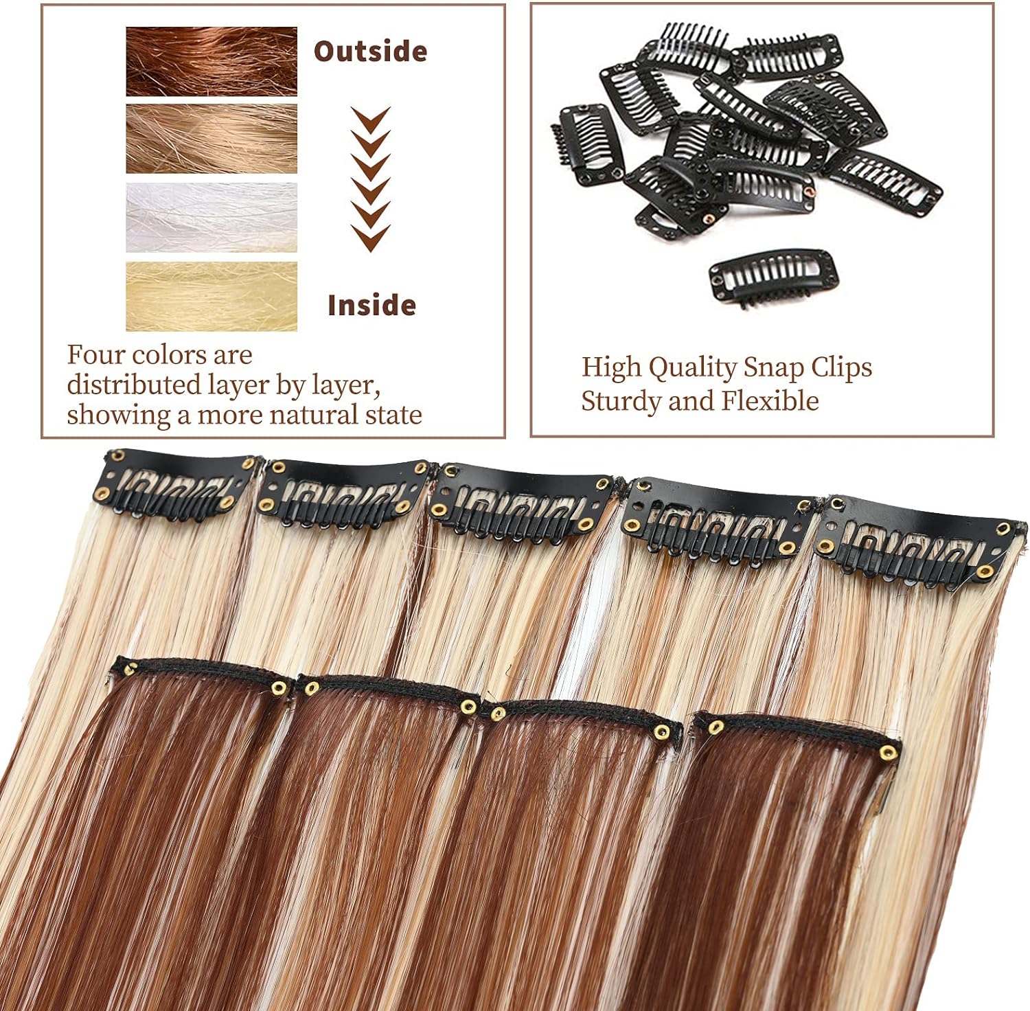 đ€ăPackage Includesă: You will get 10 pieces of colorful clip-in hair extensions, each with a snap that snaps easily into your hair, long enough to trim and fit your hair length.
