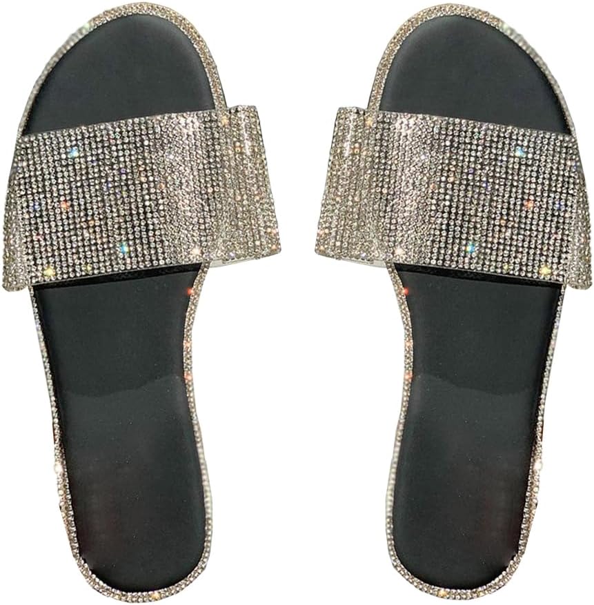 Suitable for all ages women to wear in spring, summer and fall. Outsole: rubber, Surface: artificial PU, with rhinestone glitter on the upper. Easy to put on and take off, breathable, balanced, non-slip and wear-resistant. Color sturdy and stylish, whether it is living at home, leisure, indoor and outdoor, traveling, vacations, dating, parties, shopping, daily, walks, beaches, he will be your best match. Rhinestone Glitter and flat sandals make you look more beautiful and charming, you can match them with sundress, t-shirt, hot pants, jeans, dresses, skirts and any casual wear.