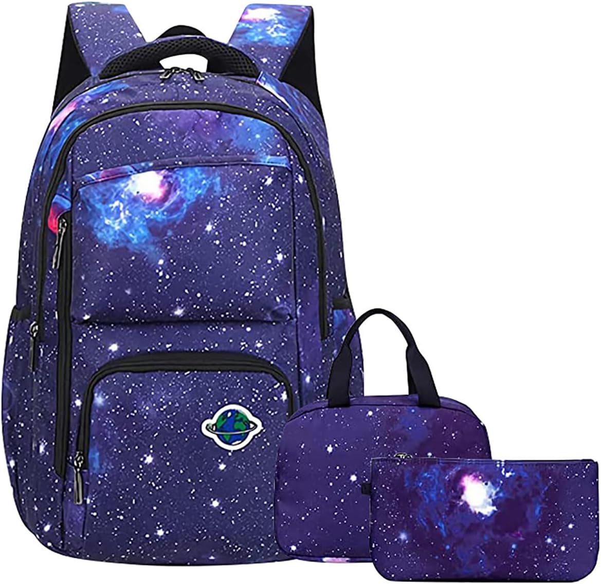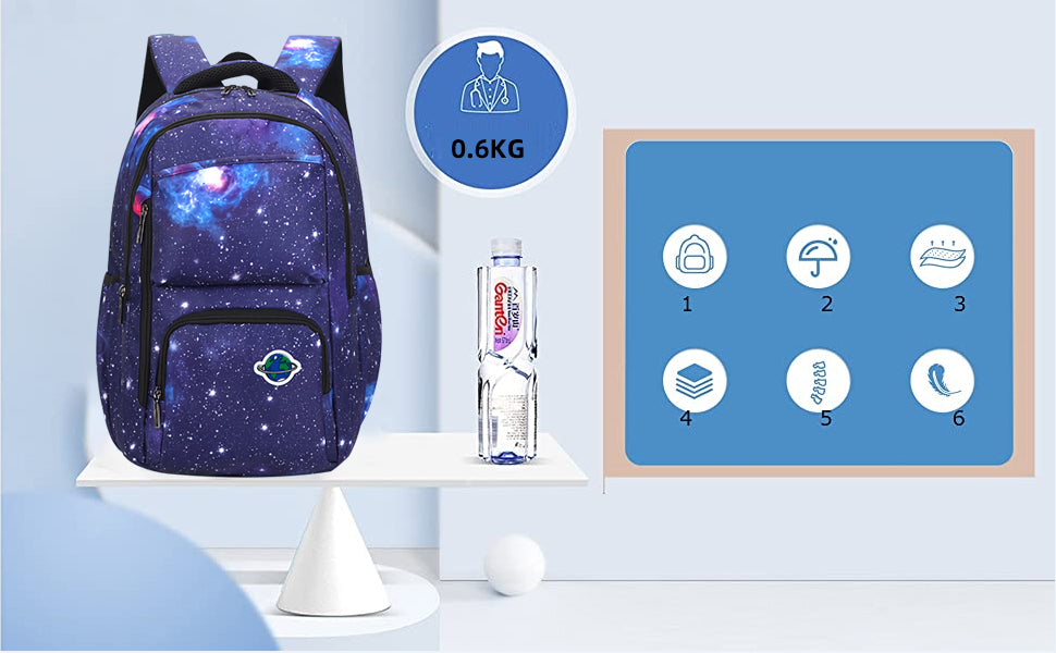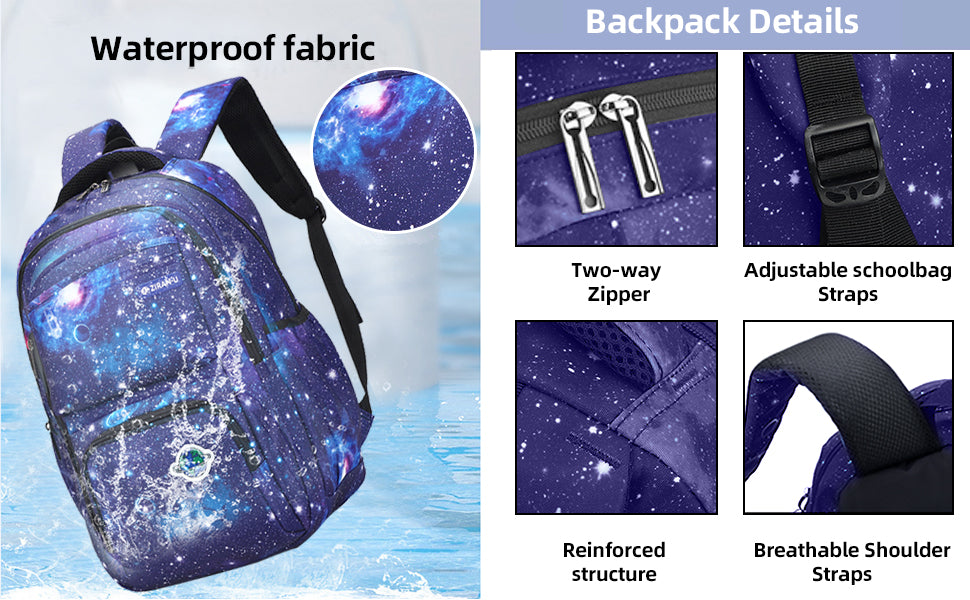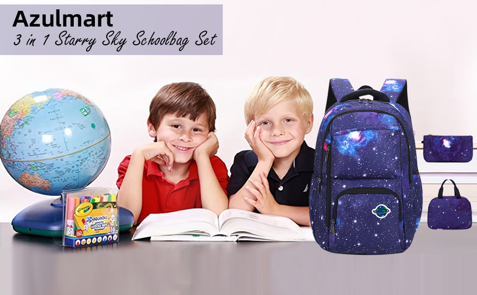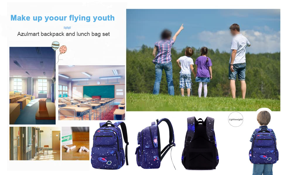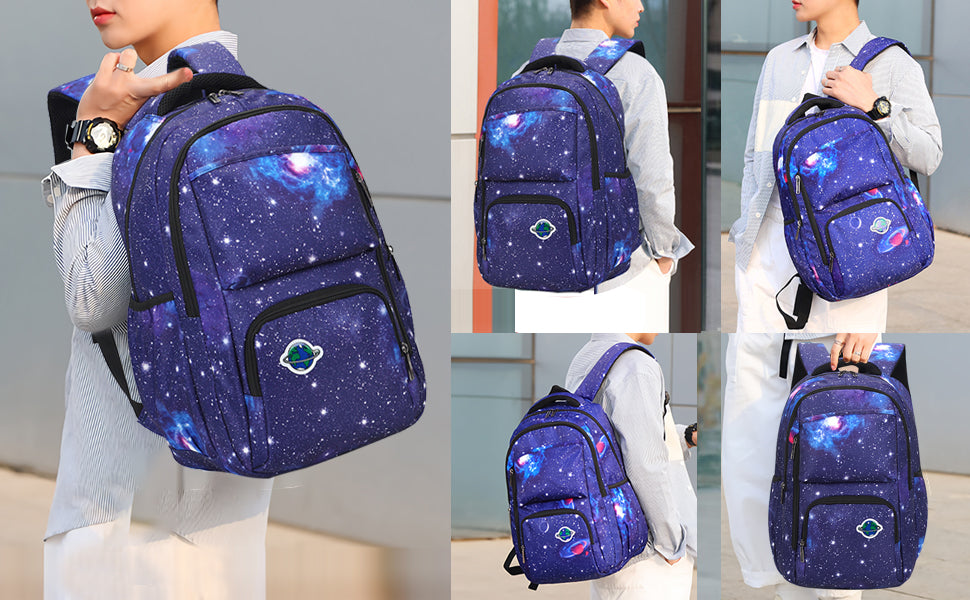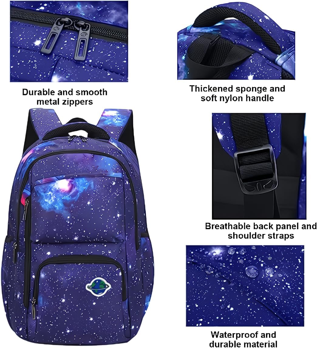 • School bookbag with Lunch Box: The kids school bag set with lunch tote, that is big enough for your lunch box, fruit, a cup of yogurt, salad or a bottle of drink. The Galaxy Printed Lightweight Knapsack has a pencil bag with special design and big enough for pencils, keys and other small school essentials. Our bookbag for school teen can be used as girls or boys school bag, kids backpack, laptop backpack and casual travel daypack.