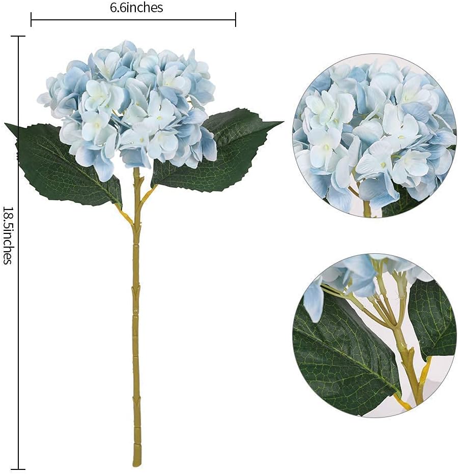 SIZE & PACKAGE: Length: 18.5"/47CM. Flower head: 6.6"/16.75cm diameter. Each packing has 6pcs of artificial hydrangea flowers.