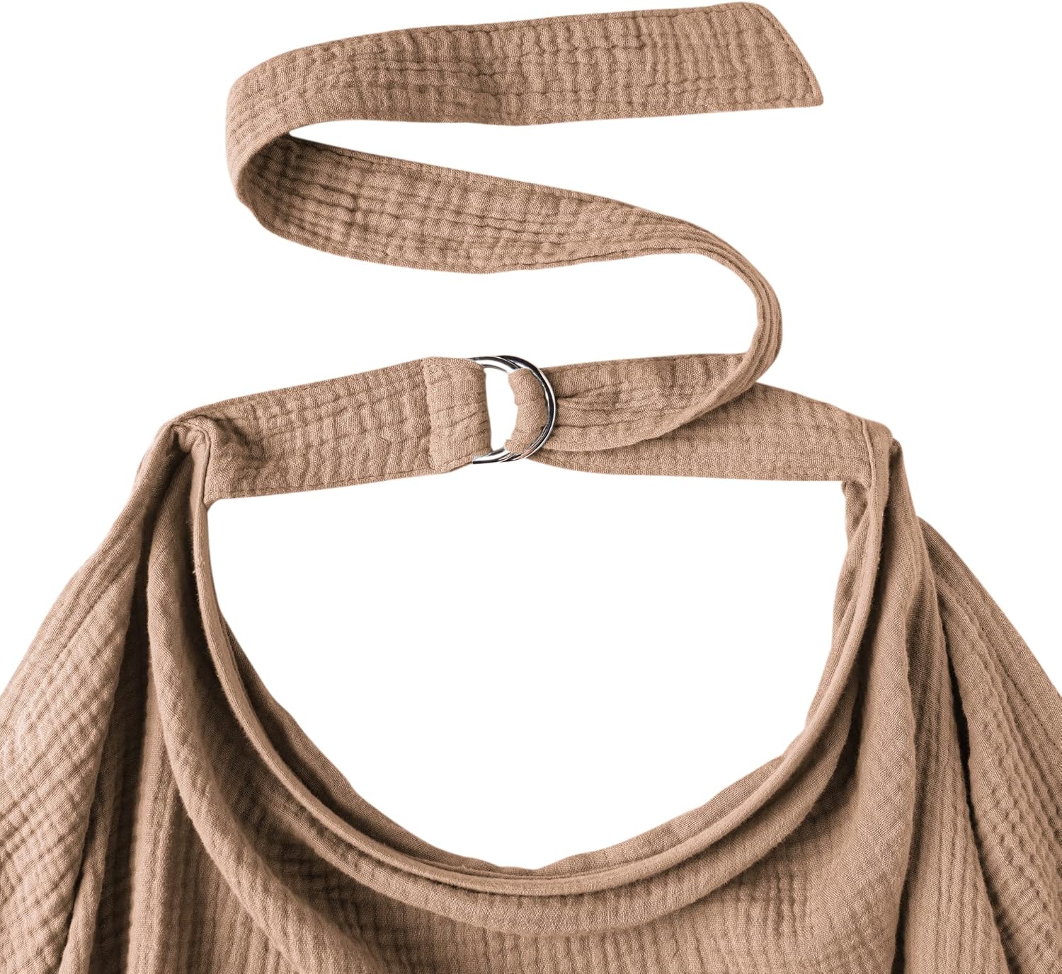 Konssy Muslin Nursing Cover for Baby Breastfeeding, Breathable 100% Cotton Breastfeeding Cover with Rigid Hoop for Mother Nursing Apron, Multi-use Carseat, Brown (BRJ05)