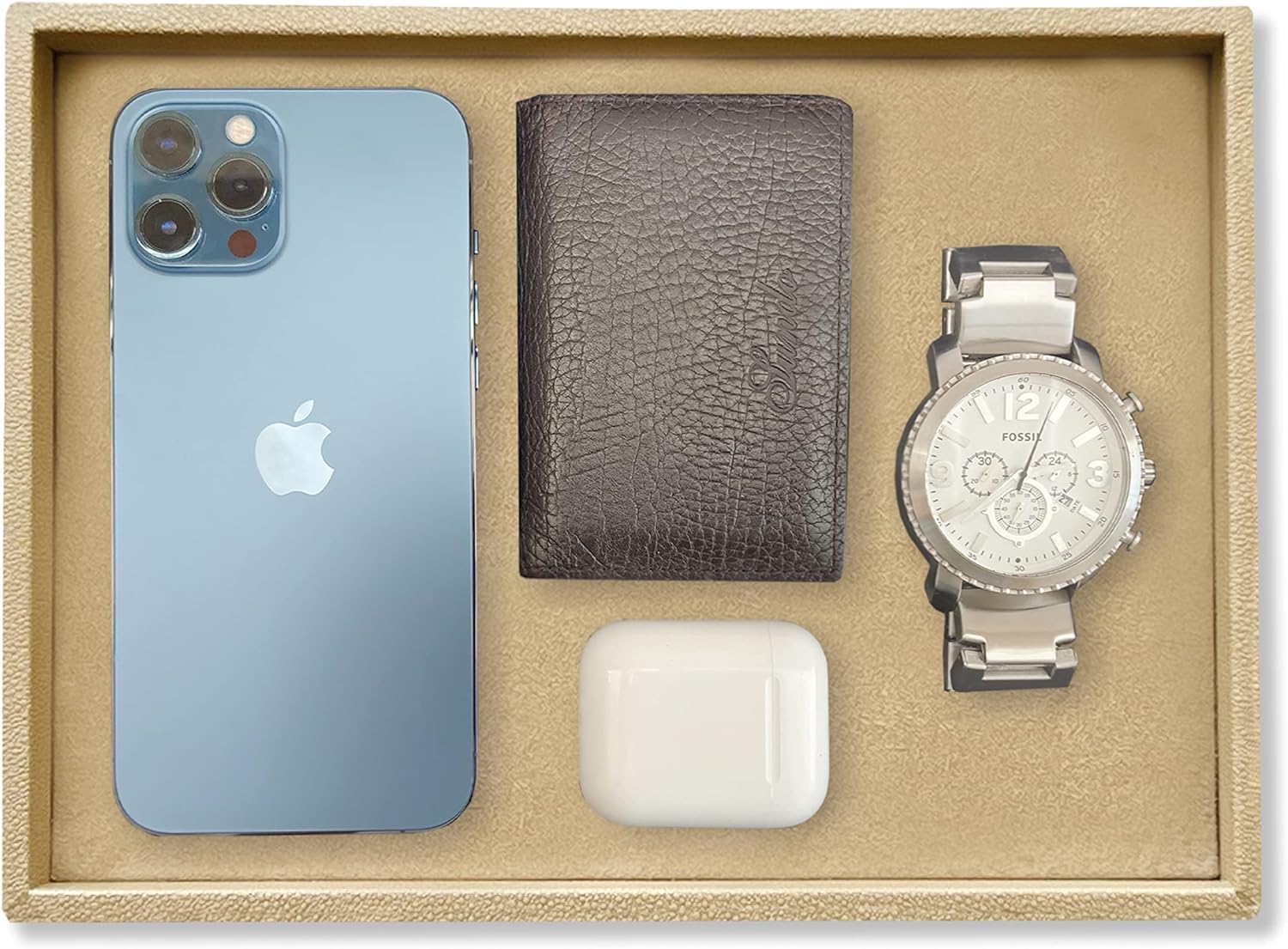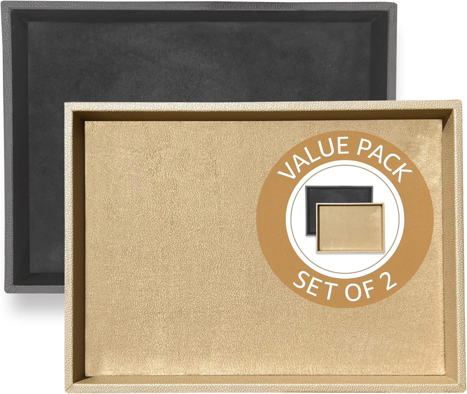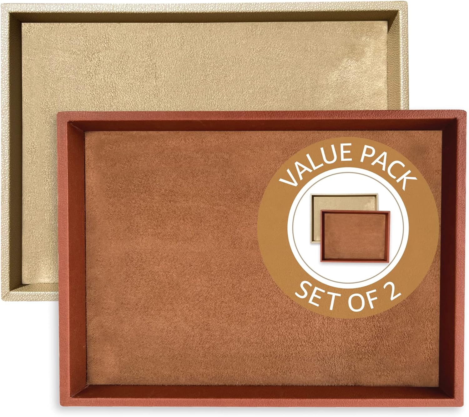 CLASSIC DESIGN – with superior faux leather on the outside and plush velvet on the inside this valet tray organizer will keep your items easily accessible while sitting neatly on your desk, bedside, dresser or nightstand.