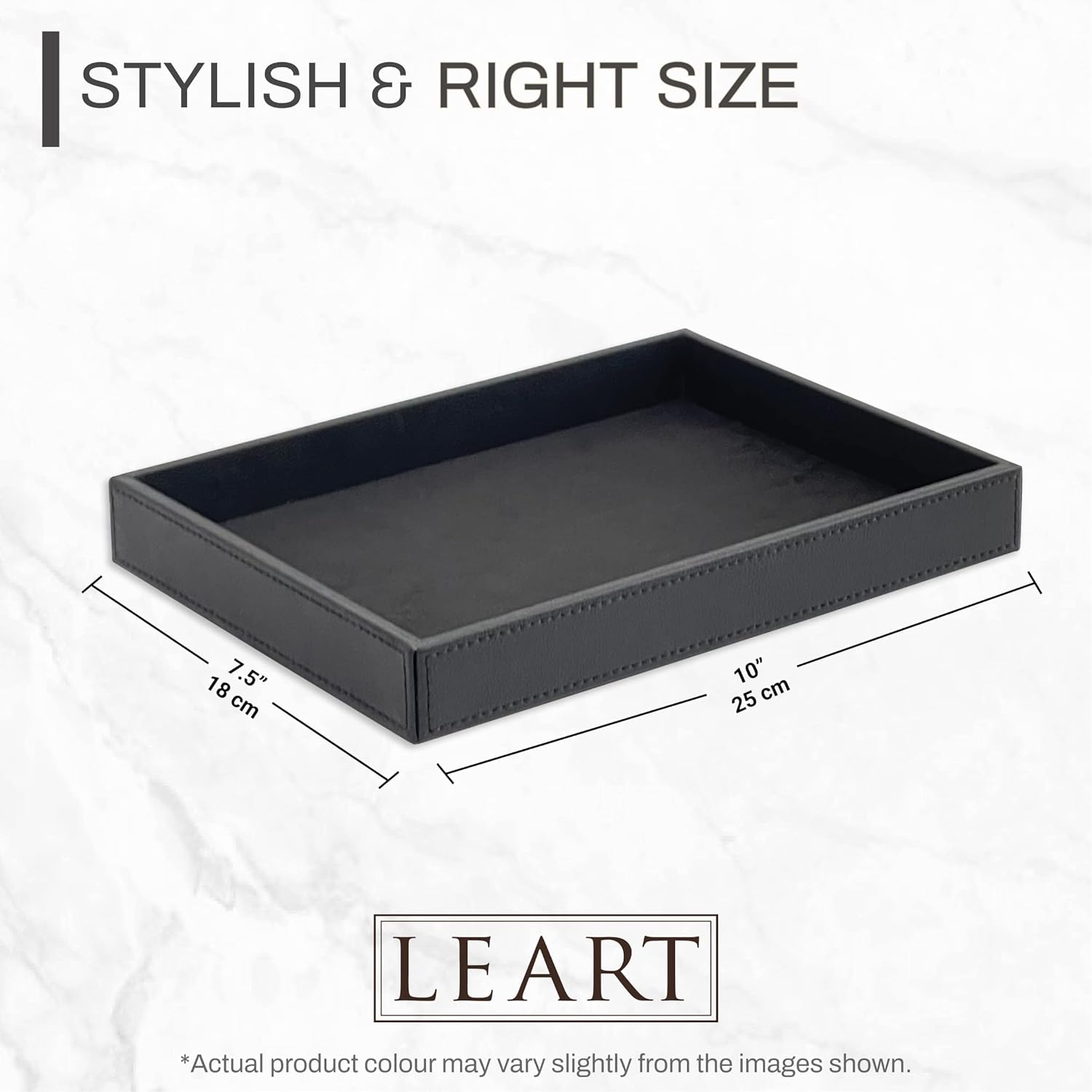 LEART Valet Tray for Men & Women – Leather Tray Organizer | Bedside, Nightstand, Office Desk Organizer Tray | Catchall Tray (Black)