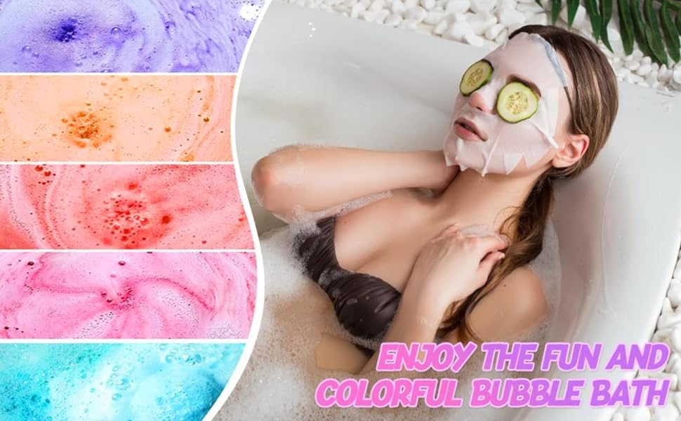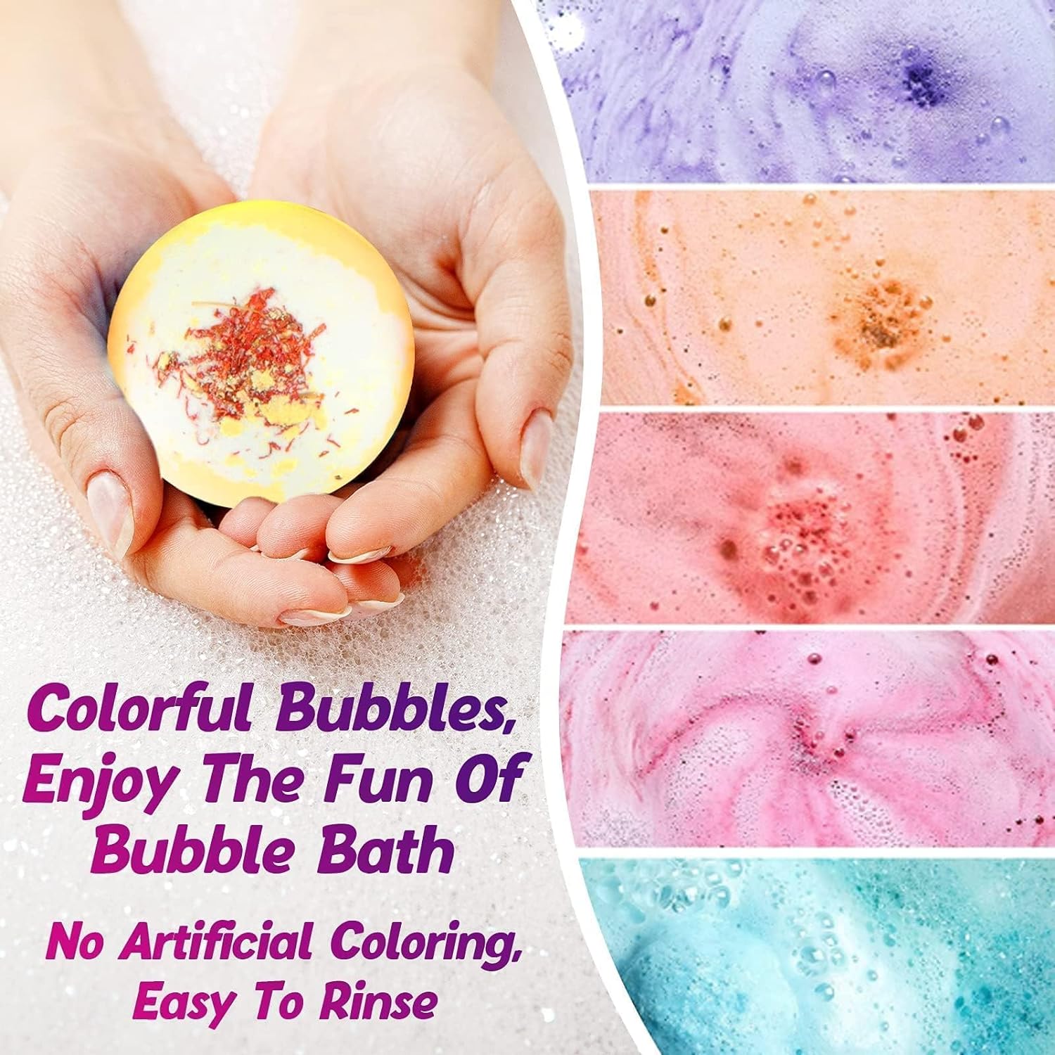 💗Enjoy the fun of bathing💗: After the bath salt bomb is thrown into the water, it creates an amazing iridescent bath bubble, under the soft lighting, presenting a colorful fairytale-like visual effect, full of fantasy fun of. They contain no artificial colors, natural plant colors and bath salts, so you don't have to worry about them sticking to your skin or the tub.