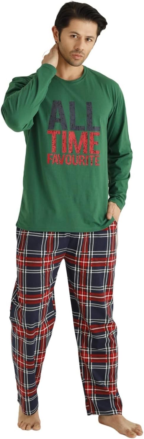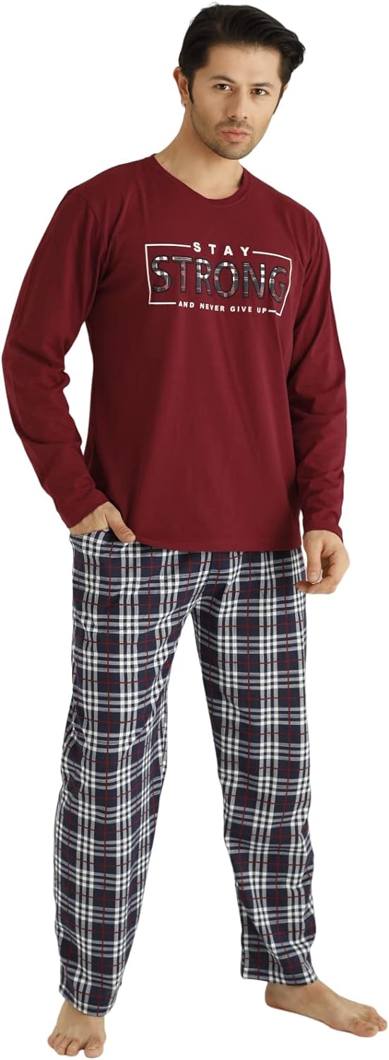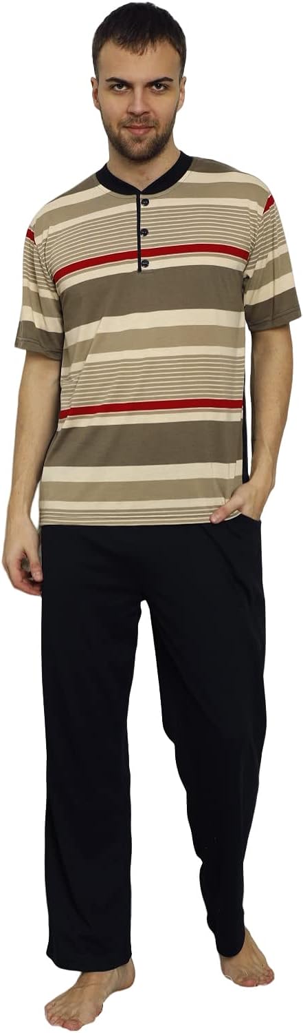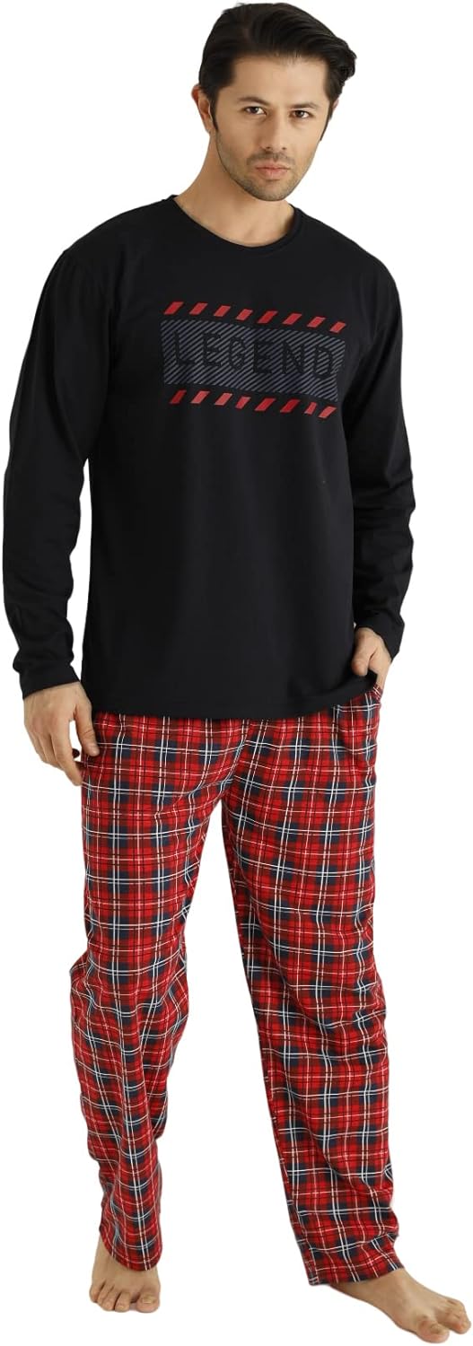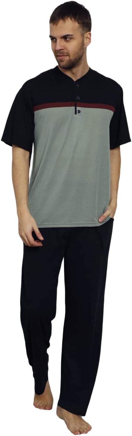 Lindros Men's Homewear T-Shirt and Pants Turkish Cotton Pajama Set Sle – BUYO